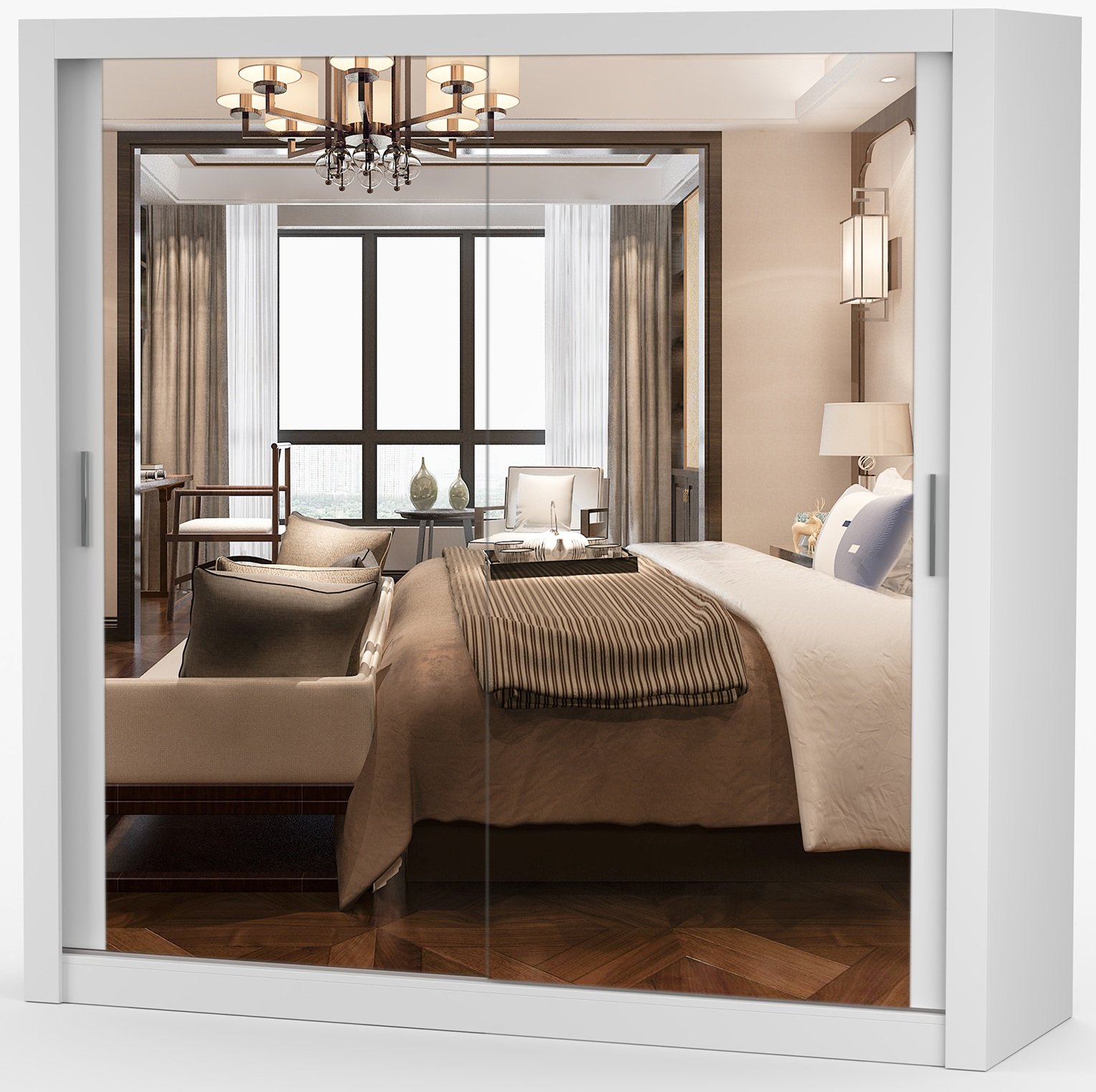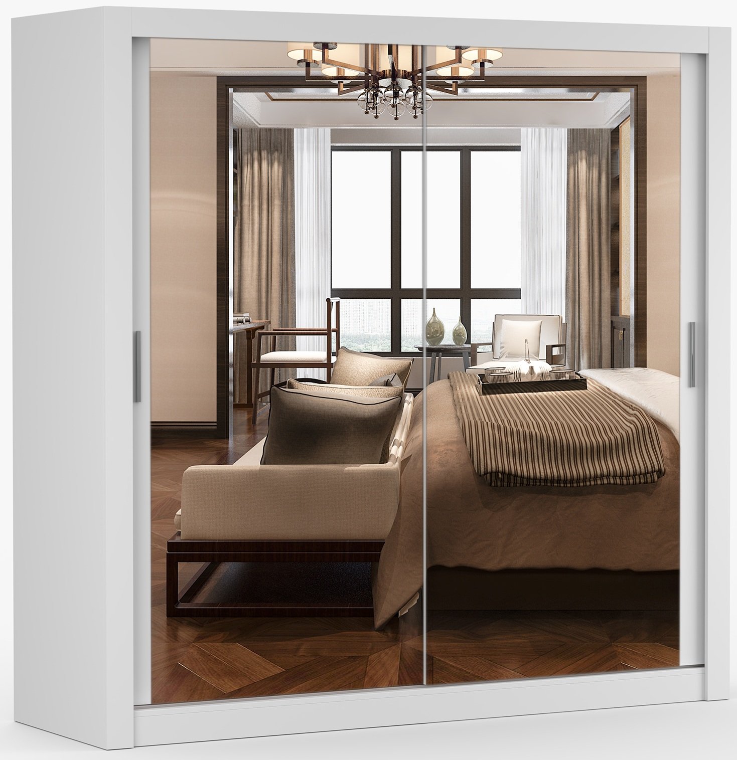 Garderobni ormar s kliznim vratima Milan u bijeloj boji predstavlja uravnoteženu kombinaciju suvremene estetike i praktične funkcionalnosti. Izrađen je od kvalitetne laminirane ploče koja osigurava čvrstoću, otpornost na svakodnevnu upotrebu i jednostavno čišćenje. Sa svojom širinom od 203 cm, dubinom od 64 cm i visinom od 215 cm savršeno se uklapa u manje ili srednje velike prostore, gdje je važna učinkovita iskorištenost svakog centimetra. Klizna vrata omogućuju jednostavno otvaranje bez dodatnog prostora za njihanje krila, što je idealno za manje spavaće sobe, hodnike ili garderobne kutke.