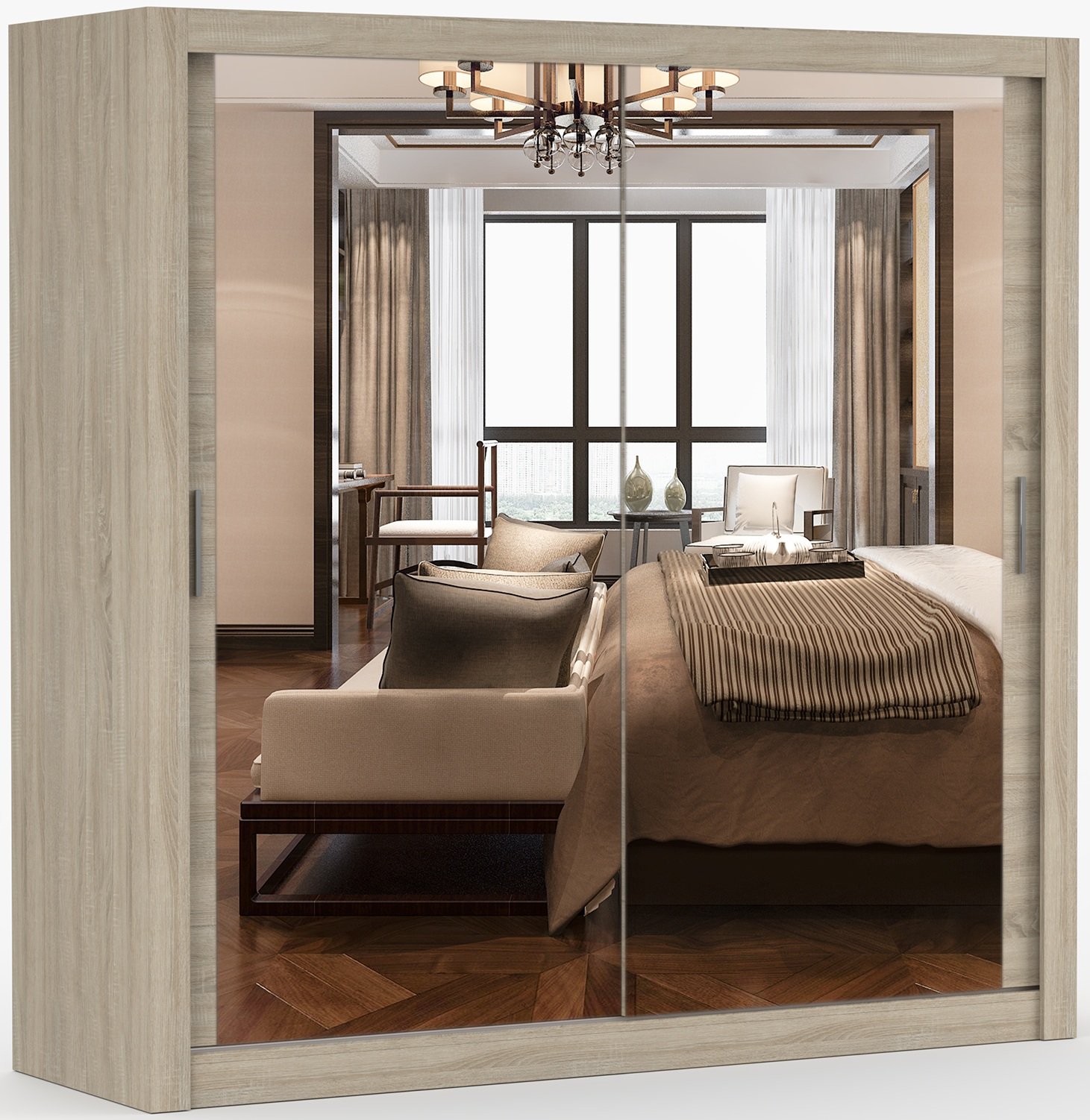 Garderobni ormar s kliznim vratima Milan u boji sonoma hrast savršen je izbor za one koji traže elegantno, prostrano i funkcionalno rješenje za pohranu odjeće. Izrađen je od kvalitetne laminirane ploče koja osigurava trajnost, jednostavno održavanje i dug vijek trajanja. Sa svojom širinom od 203 cm, dubinom od 64 cm i visinom od 215 cm savršeno se uklapa i u manje spavaće sobe ili hodnike, gdje je važno optimalno iskorištavanje prostora. Klizna vrata omogućuju nesmetano otvaranje bez dodatnog prostora ispred ormara, što je posebno praktično u manjim stanovima.