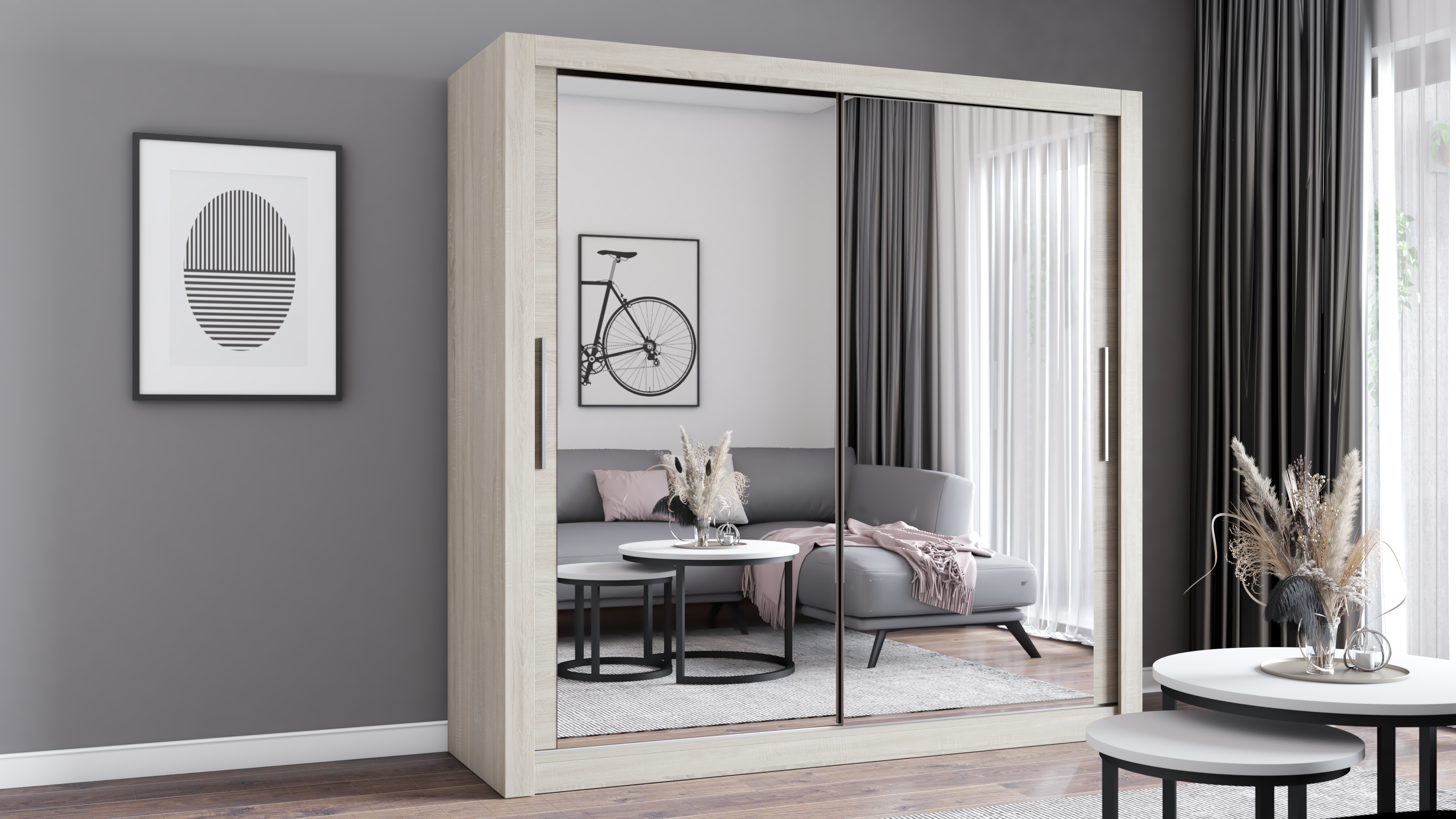 Ormar Milan izvrstan je izbor za sve koji žele funkcionalno i estetsko rješenje za pohranu odjeće, bez obzira na veličinu prostora. Zbog svog kompaktnog oblika lijepo se uklapa i u manje sobe, gdje svaki detalj ima važnost. Klizna vrata omogućuju udobnu upotrebu, a laminirana površina osigurava jednostavno čišćenje i otpornost na svakodnevno trošenje.