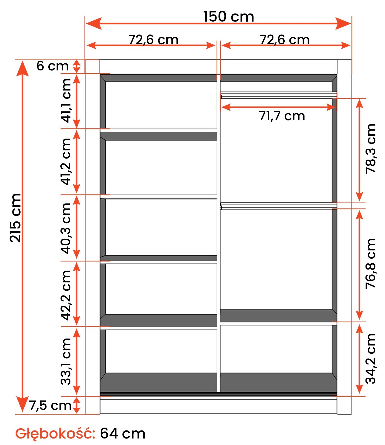 Unutarnji raspored garderobnog ormara Venice osmišljen je s mišlju na preglednost i korisnost. Klizna vrata omogućuju jednostavan pristup sadržaju bez potrebe za dodatnim otvaranjem vrata prema van – što je idealno za manje prostore. U unutrašnjosti se obično nalaze prostrani dijelovi za vješanje odjeće na šipku te police za složene komade garderobe. Takav raspored pomaže u održavanju reda i omogućuje brz odabir odjeće svakog jutra.