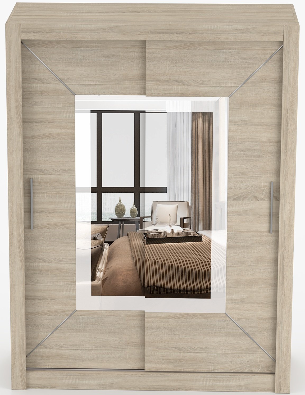 S takvim mjerama ormar je prikladan za različite prostore – od većih spavaćih soba do manjih soba ili hodnika. Ravne linije i neutralna boja omogućuju jednostavno kombiniranje s drugim komadima namještaja poput kreveta, komoda ili noćnih ormarića u sličnim tonovima drveta. Iako je boja navedena kao sonoma hrast, zbog svijetlih nijansi lijepo nadopunjuje i svijetle i tamnije interijere.