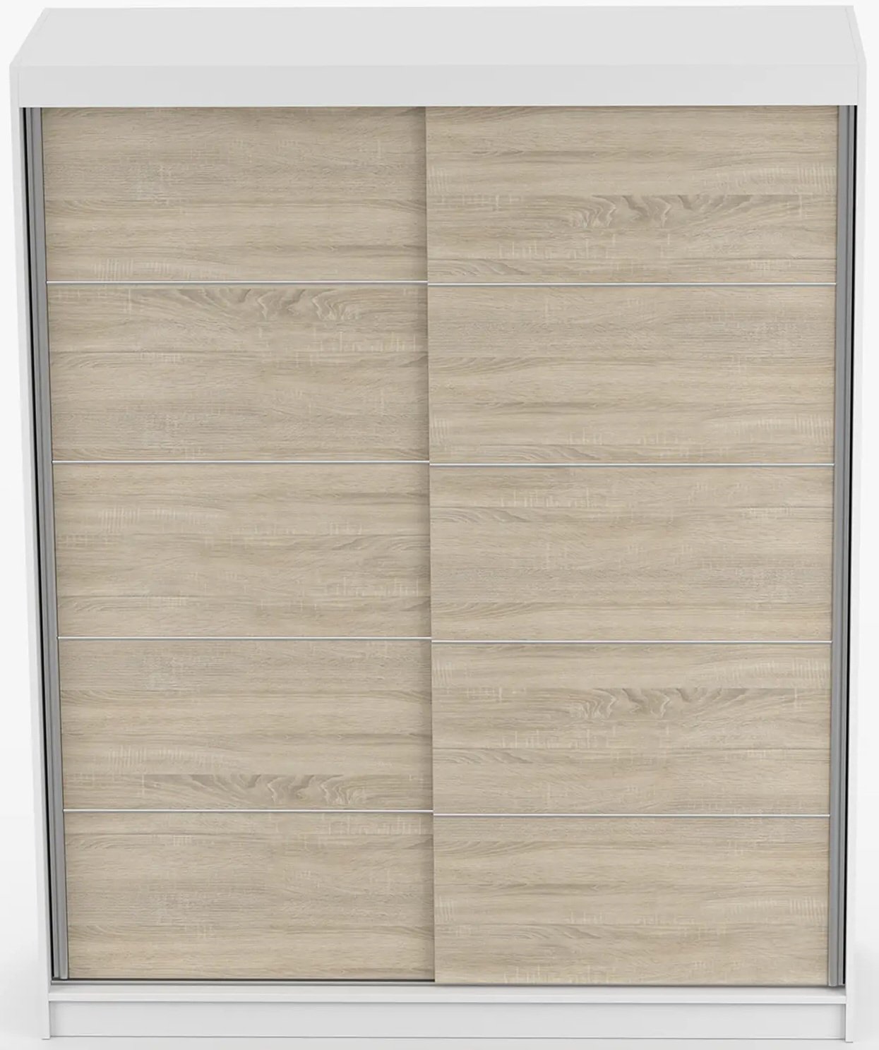 Kombinacija bijele boje i hrasta sonoma jedna je od najpopularnijih u suvremenom unutarnjem uređenju. Bijela boja vizualno povećava prostor i unosi osjećaj svjetlosti, dok toplina drvenog dekora hrasta sonoma osigurava ugodnu domaću atmosferu. Takva kombinacija omogućuje lako usklađivanje ormara s ostalim namještajem i različitim shemama boja unutarnjeg uređenja. Površina od laminirane ploče je glatka, otporna na svakodnevno trošenje i jednostavna za čišćenje, što pridonosi dugotrajnom očuvanju izgleda.