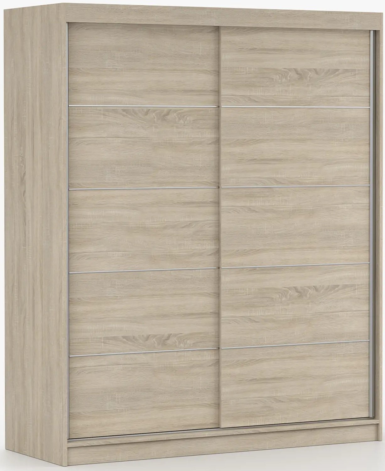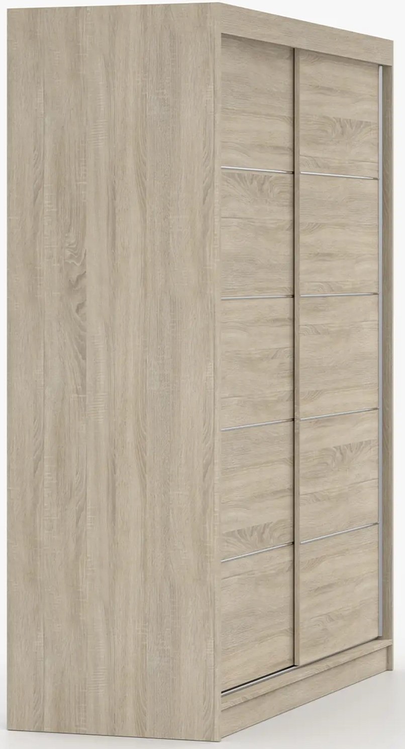 Garderobni ormar s kliznim vratima Bono 06 u boji sonoma hrast predstavlja idealnu kombinaciju suvremenog izgleda i funkcionalnosti. Izrađen je od kvalitetne laminirane ploče, koja osigurava dug vijek trajanja, jednostavno čišćenje te otpornost na mehanička oštećenja. Topla boja sonoma hrasta skladno se uklapa s različitim stilovima unutarnjeg uređenja – od klasičnog do modernog – i prostoru dodaje prirodan, ugodan karakter.