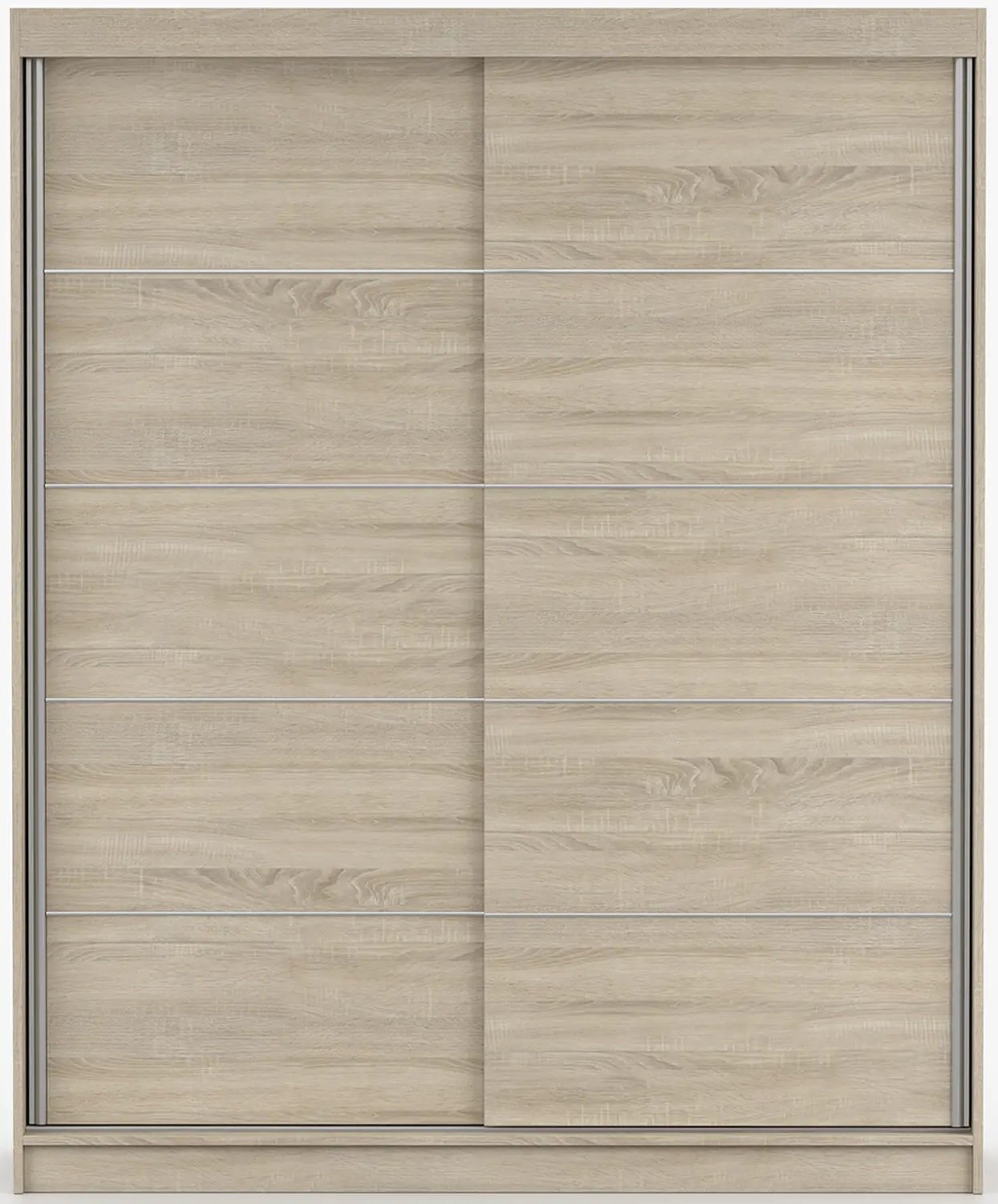 Ormar mjeri 160x61x195 cm, što znači da nudi dovoljno prostora za pohranu odjeće, obuće i dodataka, a pritom ne zauzima previše mjesta u spavaćoj sobi, predsoblju ili garderobi. Klizna vrata omogućuju jednostavno otvaranje i u manjim prostorima, jer ne zahtijevaju dodatni prostor za njihanje kao klasična krilna vrata. Ovo rješenje povećava uporabnost i olakšava pristup sadržaju ormara.