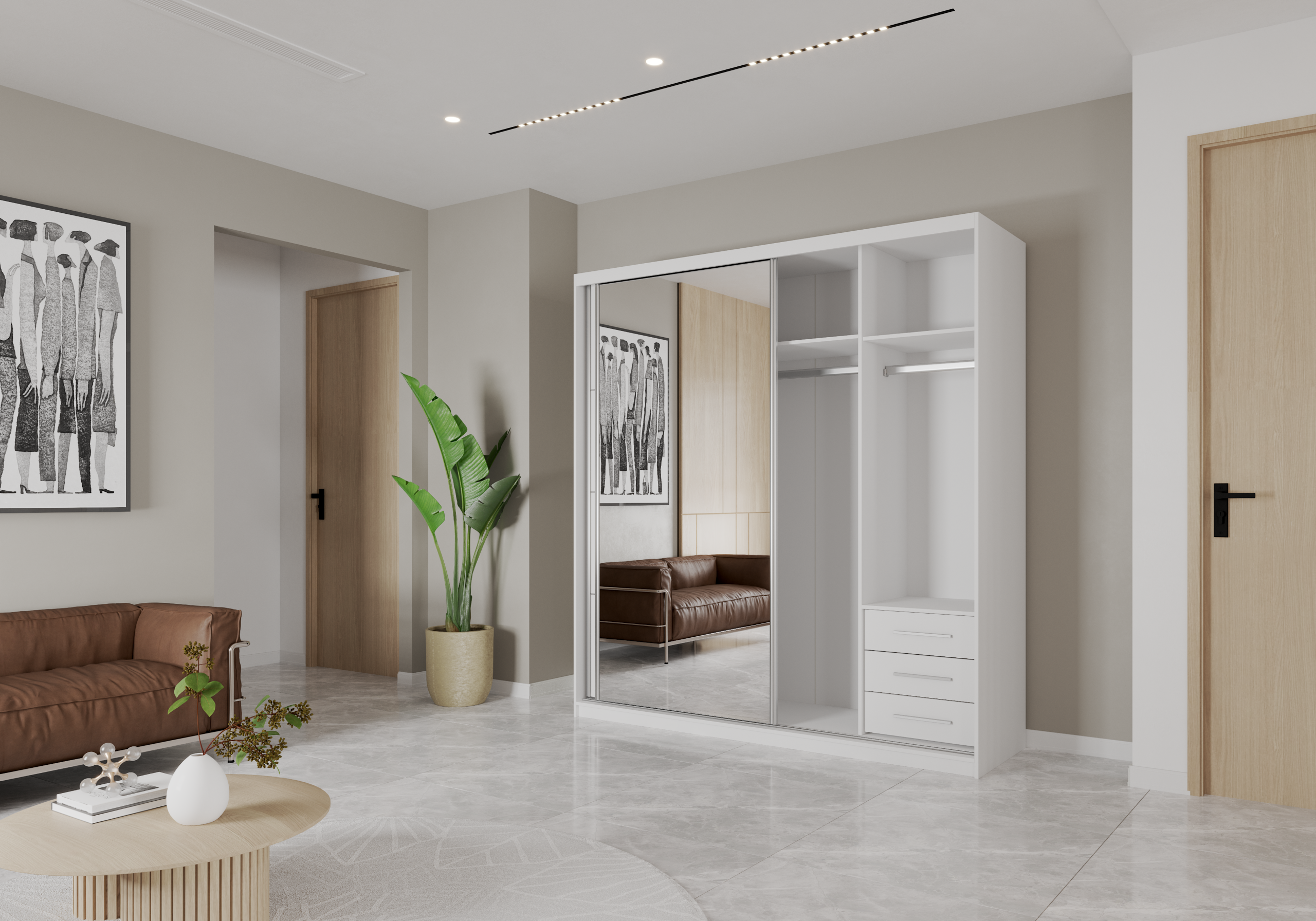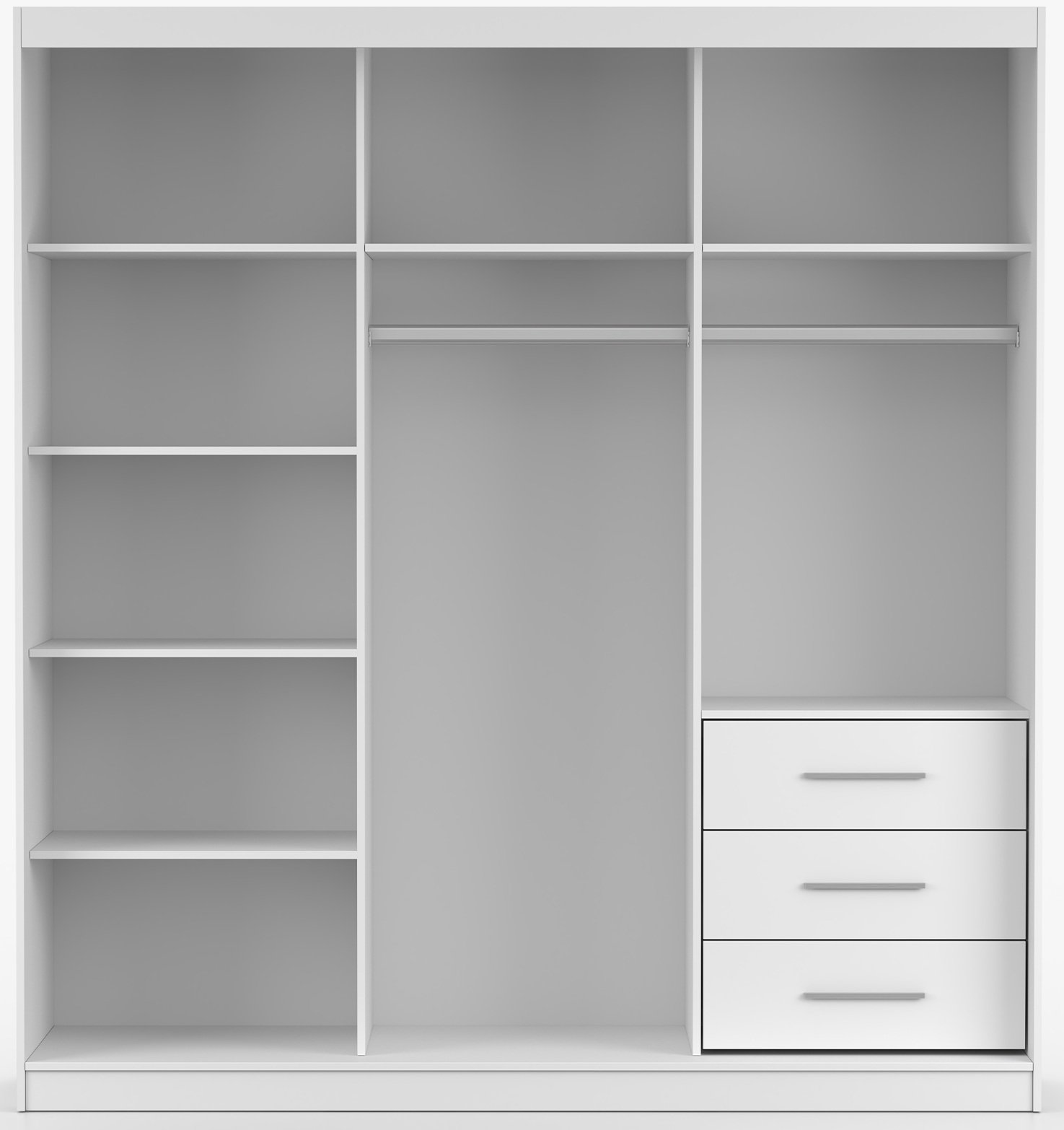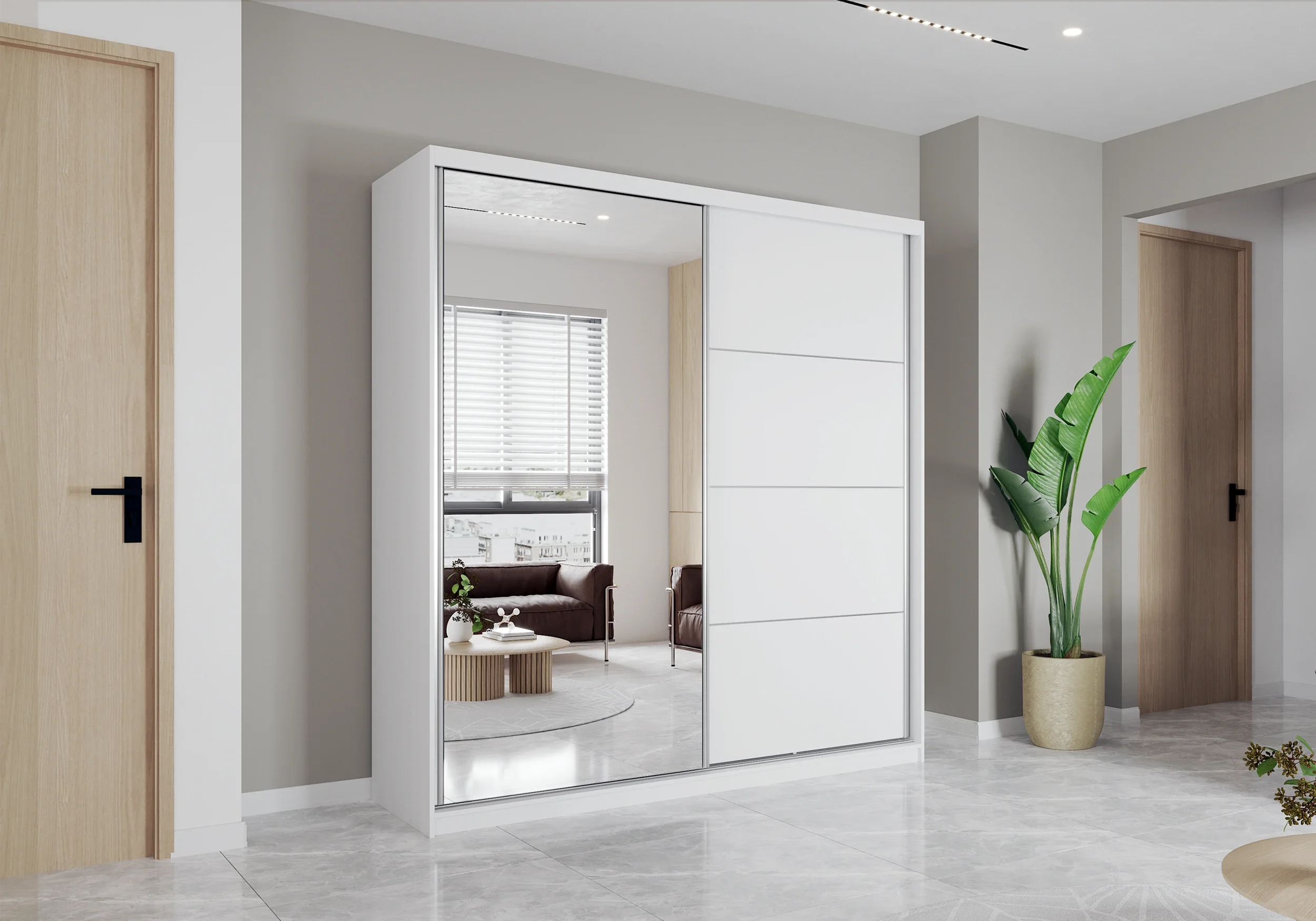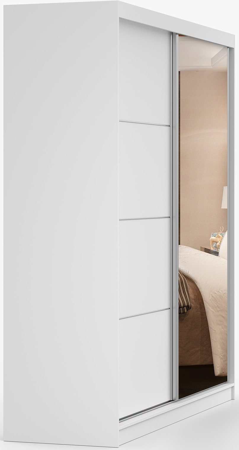 Bijela boja garderobnog ormara Pola 42 203B izuzetno je svestrana. Dobro se slaže s modernim minimalnim ambijentima, ali i s klasičnim stilovima namještaja. Glatke površine i ravne linije naglašavaju suvremenu estetiku, dok neutralan ton omogućuje stvaranje harmoničnog i svijetlog prostora.