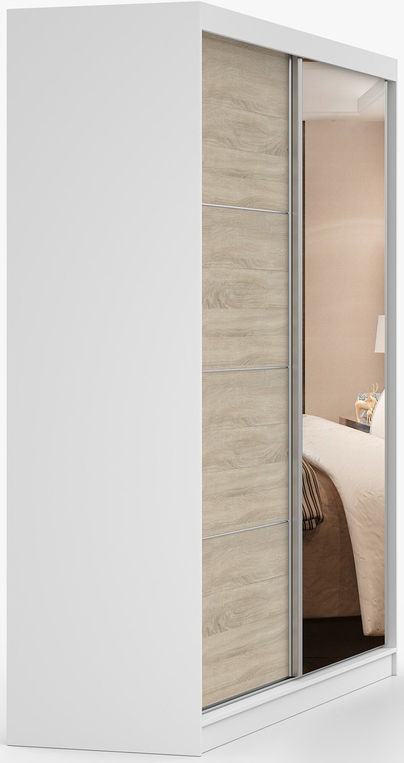 Ovaj prostrani ormar za odjeću spaja funkcionalnost, jednostavnost i moderan izgled, koji se odlično uklapa s različitim stilovima unutarnjeg uređenja. Model Pola 42 203S dizajniran je za one koji žele učinkovito organizirati svoje odjevne i tekstilne komade, a istovremeno zadržati uredan i estetski dovršen prostor. Spojem dviju popularnih boja – bijele i hrasta sonoma – stvara se ugodan kontrast te osjećaj topline i svježine u prostoru.