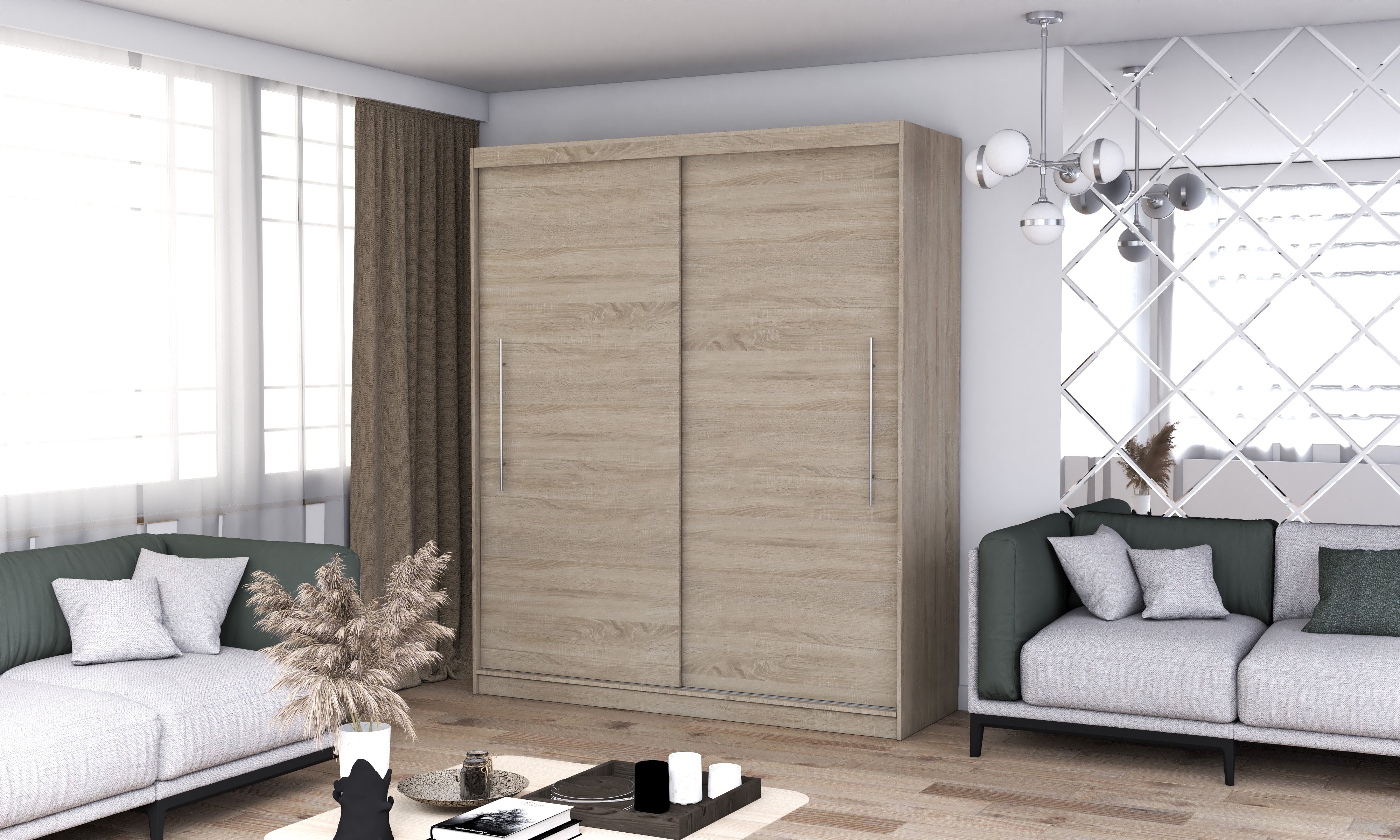 Ormar Torino dizajniran je za korisnike koji cijene red, preglednost i funkcionalan prostor. Klizna vrata omogućuju jednostavno otvaranje i u manjim sobama, jer ne zahtijevaju dodatni prostor za otvaranje krilnih vrata. Površina u dekoru sonoma hrasta daje prostoru prirodan i topao dojam, a zbog neutralnog tona lako se kombinira s drugim bojama namještaja ili zidova. Takvo rješenje boje popularan je izbor za spavaće sobe, hodnike i garderobne prostore, jer stvara osjećaj svjetlosti i prostranosti.