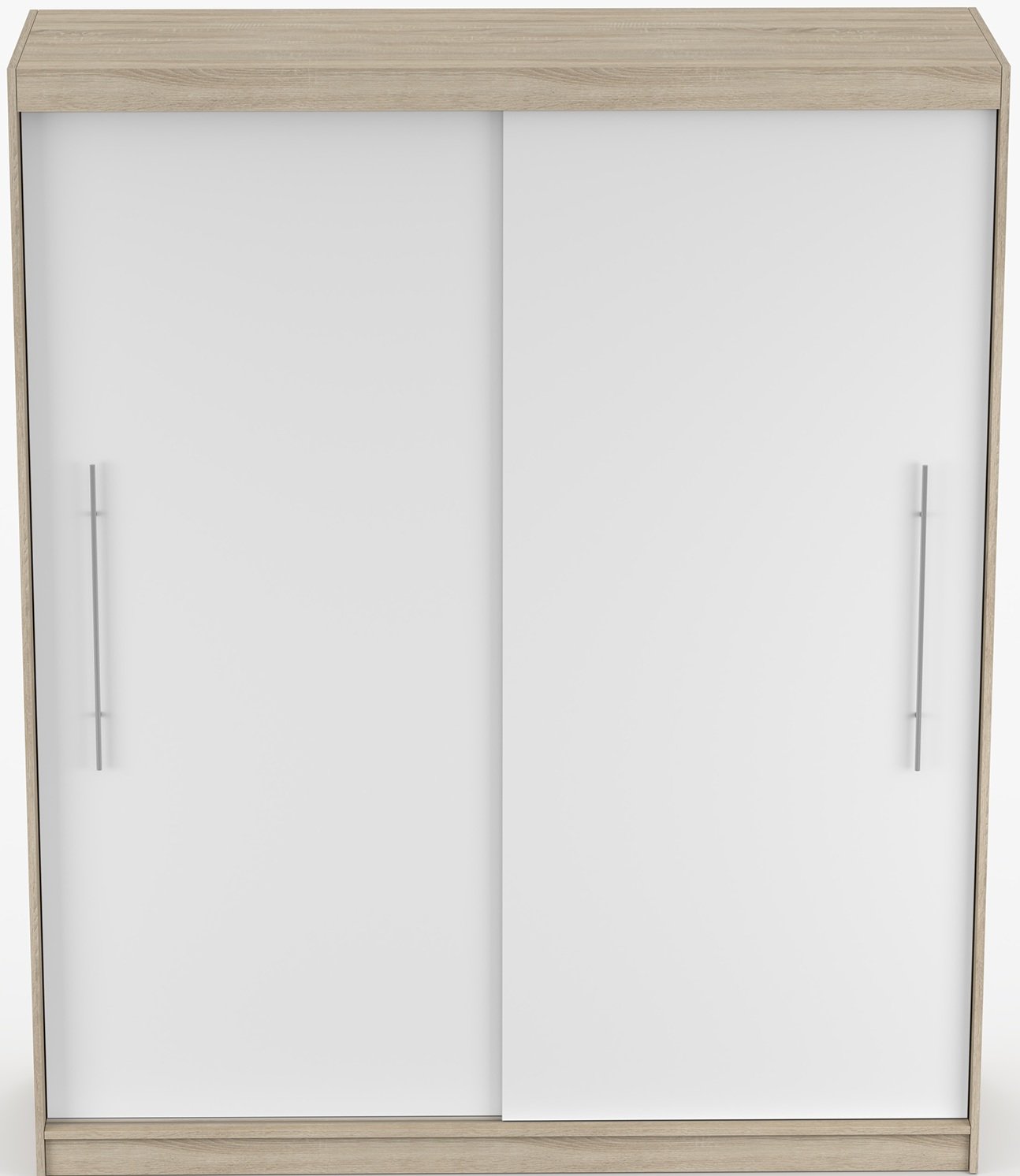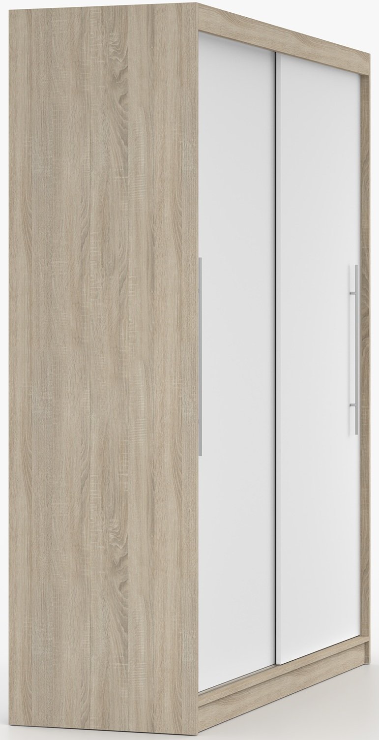 Garderobni ormar s kliznim vratima Torino kombinira moderan dizajn i praktičan raspored prostora. Izrađen je od kvalitetne laminirane ploče koja osigurava izdržljivost, jednostavno održavanje te otpornost na svakodnevnu upotrebu. Elegantna kombinacija boja sonoma hrasta i bijele površine unosi u prostor osjećaj svjetlosti, topline i urednosti. Ovaj ormar idealan je odabir za spavaću sobu, predsoblje ili garderobni prostor, gdje su organizacija i estetski izgled važni.