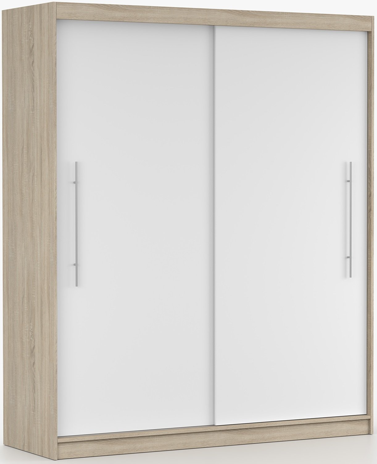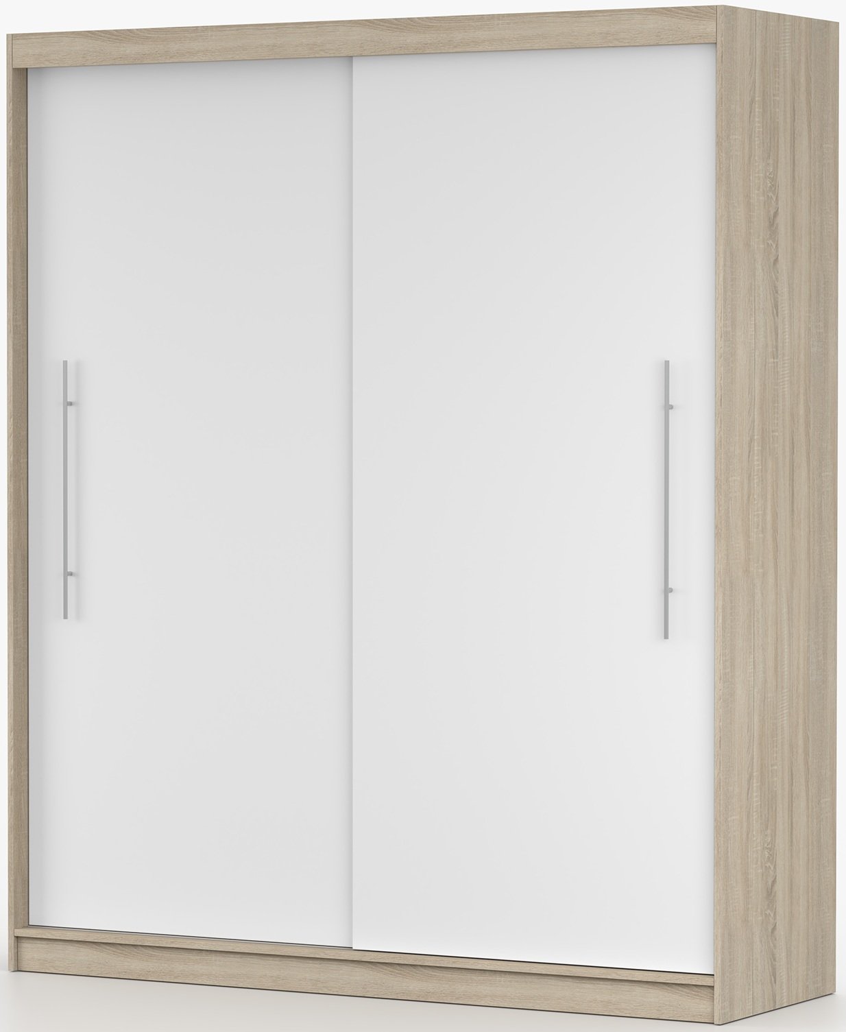 Ormar Torino dizajniran je s mišlju na maksimalno iskorištavanje prostora. Njegova visina od 218 cm i širina od 203 cm omogućuju dovoljno prostora za pohranu različite odjeće i dodataka. Klizna vrata omogućuju jednostavan pristup unutrašnjosti, a pritom ne zahtijevaju dodatni prostor za otvaranje, što je posebno praktično u manjim sobama. Površina u sonoma hrastu oponaša prirodnu teksturu drveta, dok bijela boja dodaje svježinu i moderan izgled.