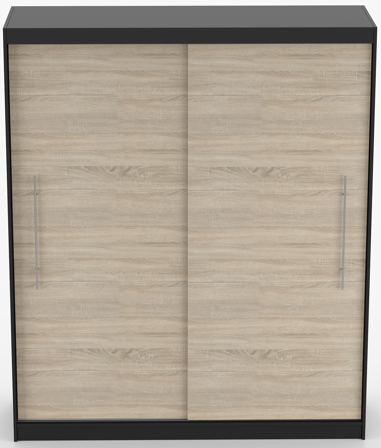 Torino je izrađen od laminirane ploče, poznate po svojoj otpornosti na ogrebotine, vlagu i svakodnevno trošenje. Površina je jednostavna za čišćenje – dovoljna je vlažna krpa i blag deterdžent kako biste održali njezin izgled svježim i urednim. Kombinacija crne i sonoma hrast boje bezvremenska je, stoga se ormar lijepo uklapa u različite stilove uređenja, od klasičnog do modernog.