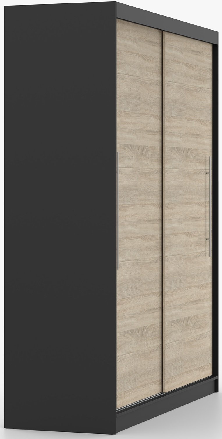Garderobni ormar Torino osmišljen je za sve koji žele unijeti u svoj dom urednost, jednostavnost i eleganciju. Svojom prepoznatljivom kombinacijom crne boje i dekora sonoma hrast stvara ugodan kontrast između topline drveta i suvremene minimalističke estetike. Izrađen je od kvalitetne laminirane ploče, što osigurava izdržljivost, stabilnost te jednostavno održavanje. Poljska robna marka Idžczak Meble poznata je po preciznoj izradi i promišljenim funkcionalnim rješenjima, stoga ormar Torino spaja estetiku i praktičnost u jednom proizvodu.