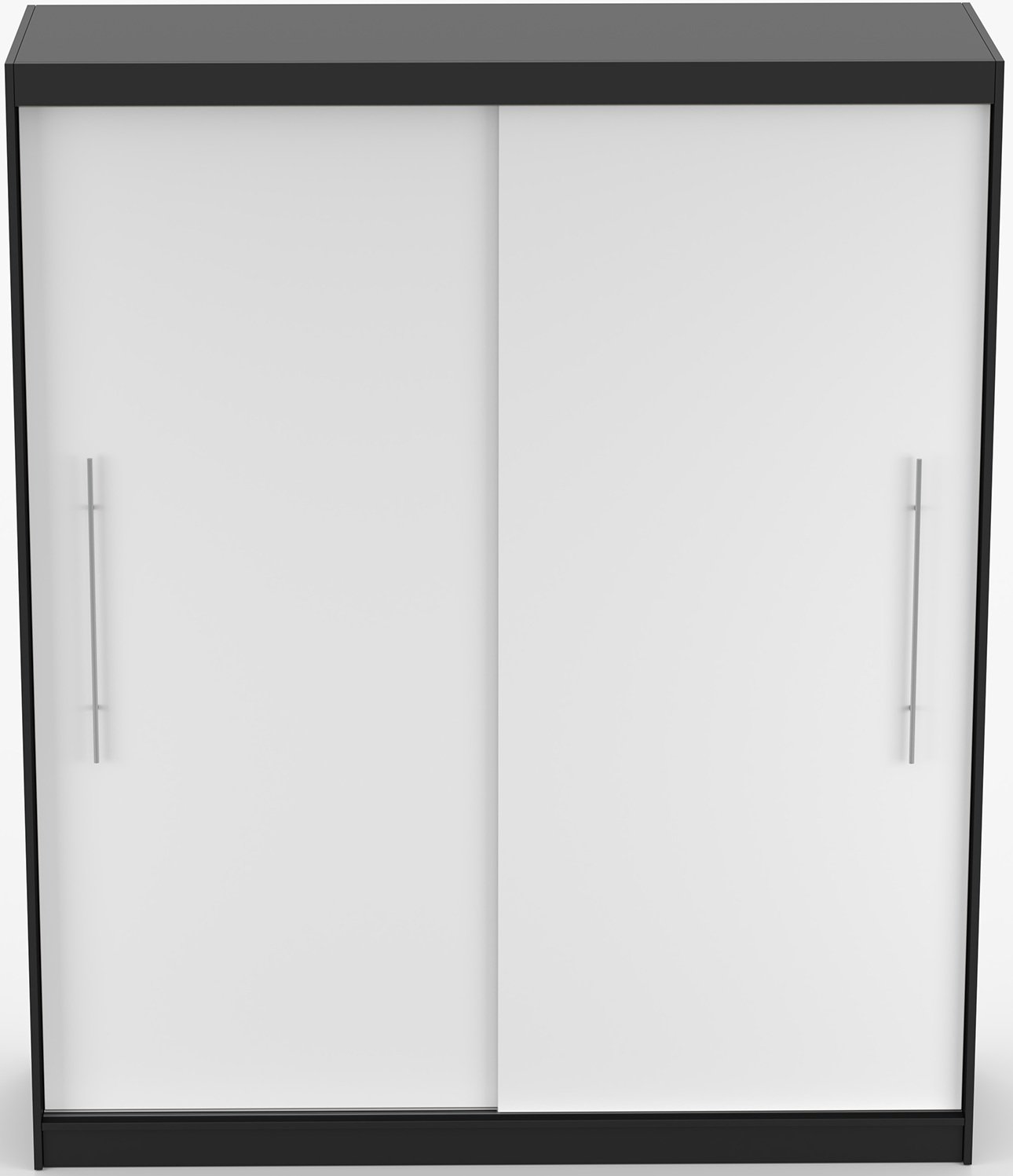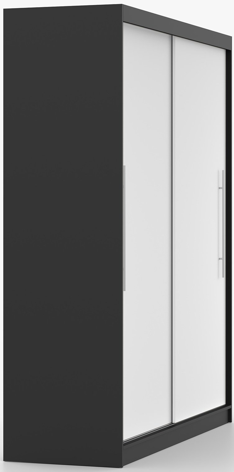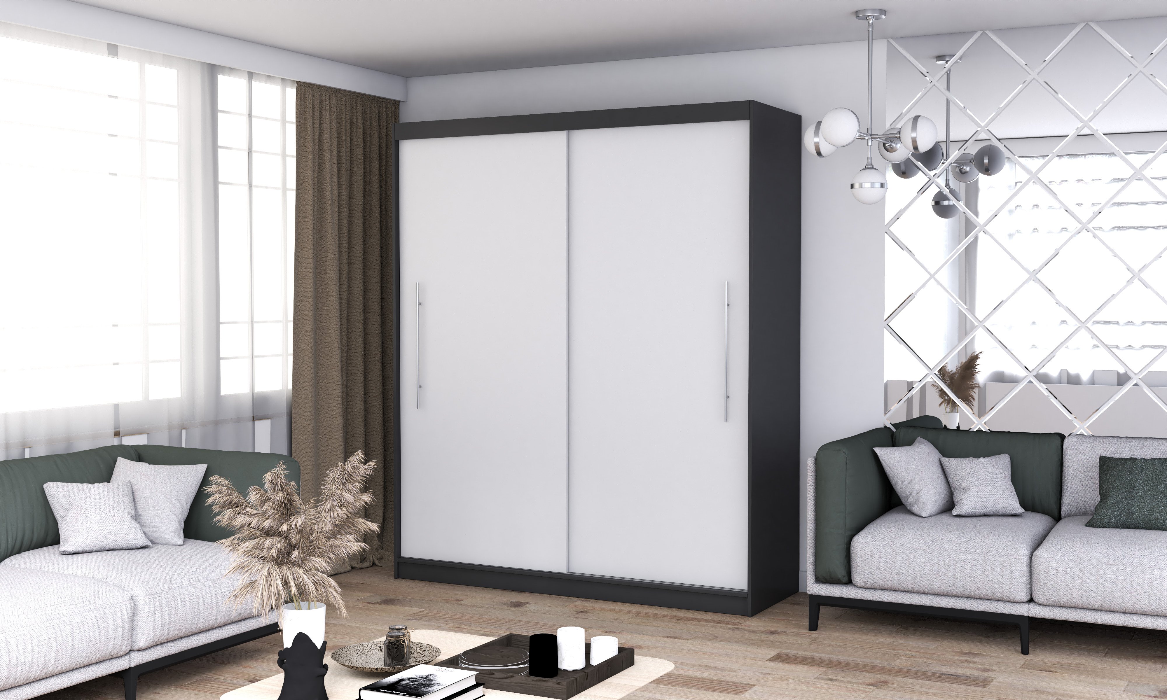 Kombinacija crne i bijele boje daje ormaru Torino poseban karakter. Crna boja naglašava eleganciju i dubinu, dok bijela dodaje svjetlost i osjećaj prostranosti. Zajedno stvaraju uravnotežen izgled koji se lijepo uklapa s različitim shemama boja namještaja i zidova. Zbog svoje neutralnosti, ormar se prilagođava i svijetlim i tamnim interijerima, pa je odličan izbor za različite ukuse i prostore.