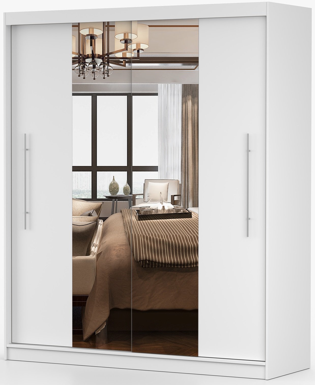 Središnji dio ormara Torino krasi veliko ogledalo, koje nije samo estetski dodatak, već i funkcionalan element, jer olakšava svakodnevno odijevanje i vizualno proširuje prostor. Bijela boja površine djeluje svježe i neutralno, pa se ormar lako uklapa u različite kombinacije boja i stilove namještaja – od minimalističkog do klasičnog.