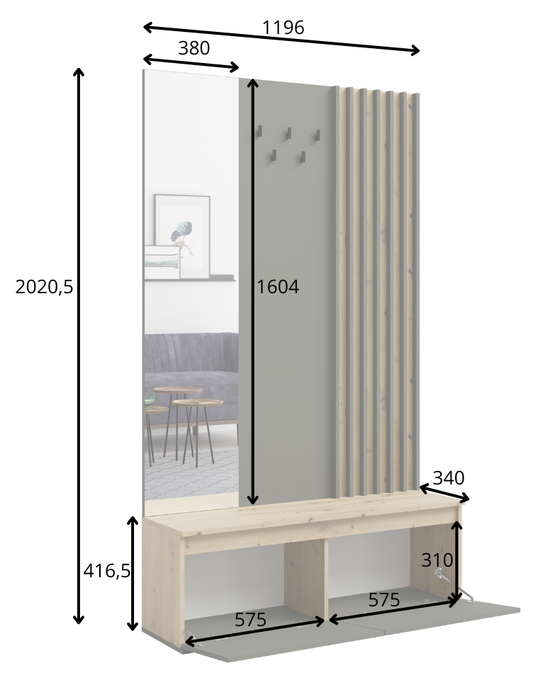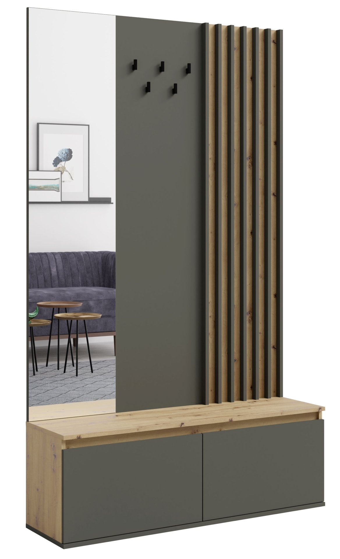 Ova vješalica izrađena je u poznatoj tvornici Meblosiek u Poljskoj, gdje se spajaju tradicionalno stolarsko znanje i moderne tehnologije. Upravo zato je svaki komad precizno obrađen, rubovi su zaštićeni, a površina otporna na ogrebotine i vlagu. Zbog univerzalne kombinacije boja hrasta artisan i grafita savršeno će se uklopiti s ostalim komadima namještaja u predsoblju ili dnevnom boravku.