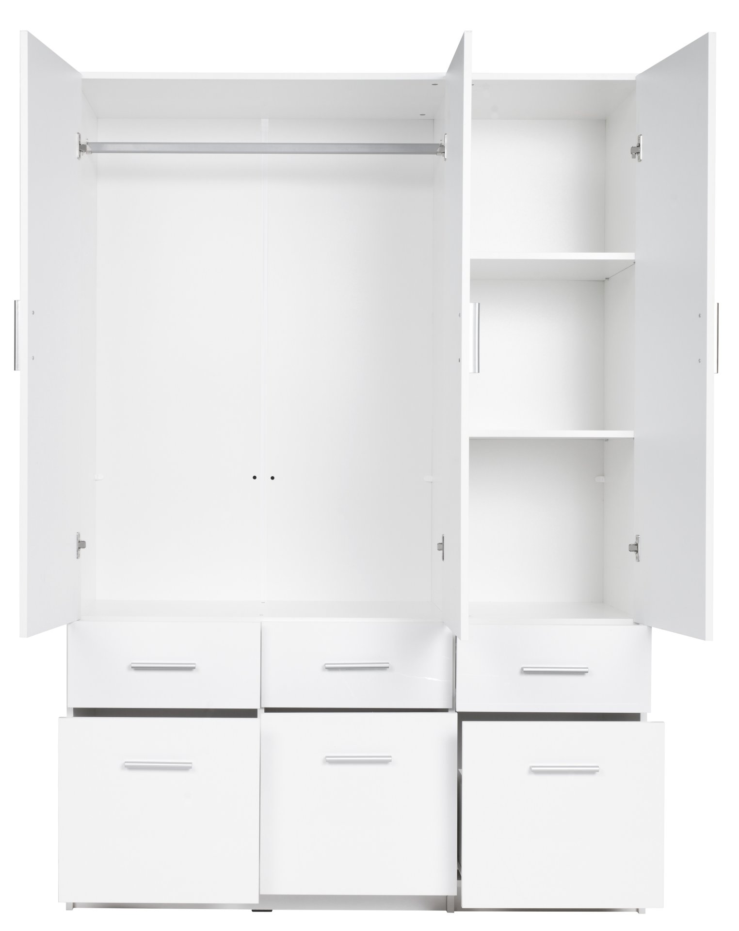S ovim ormarom za odjeću dobit ćete više od samog prostora za pohranu. Vaš će dom postati uredniji, organiziraniji i vizualno privlačniji. Bijela sjajna fronta osigurat će svježinu u prostoru, a praktičan unutarnji raspored olakšat će svakodnevnu organizaciju. To je investicija koja spaja estetiku i funkcionalnost – osobine koje su u suvremenom životnom stilu itekako važne.