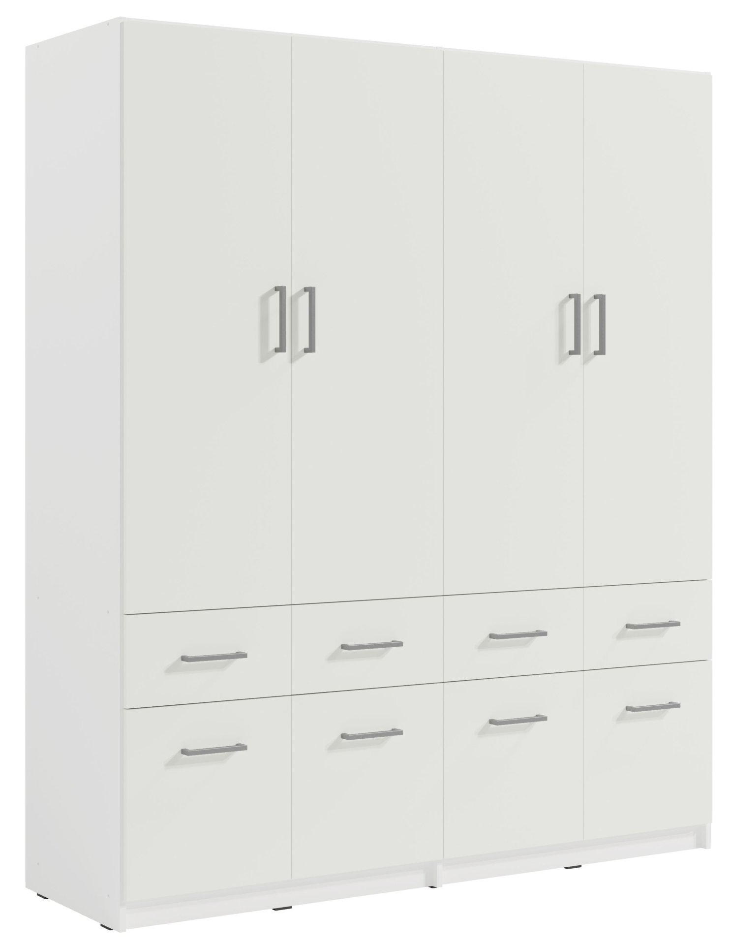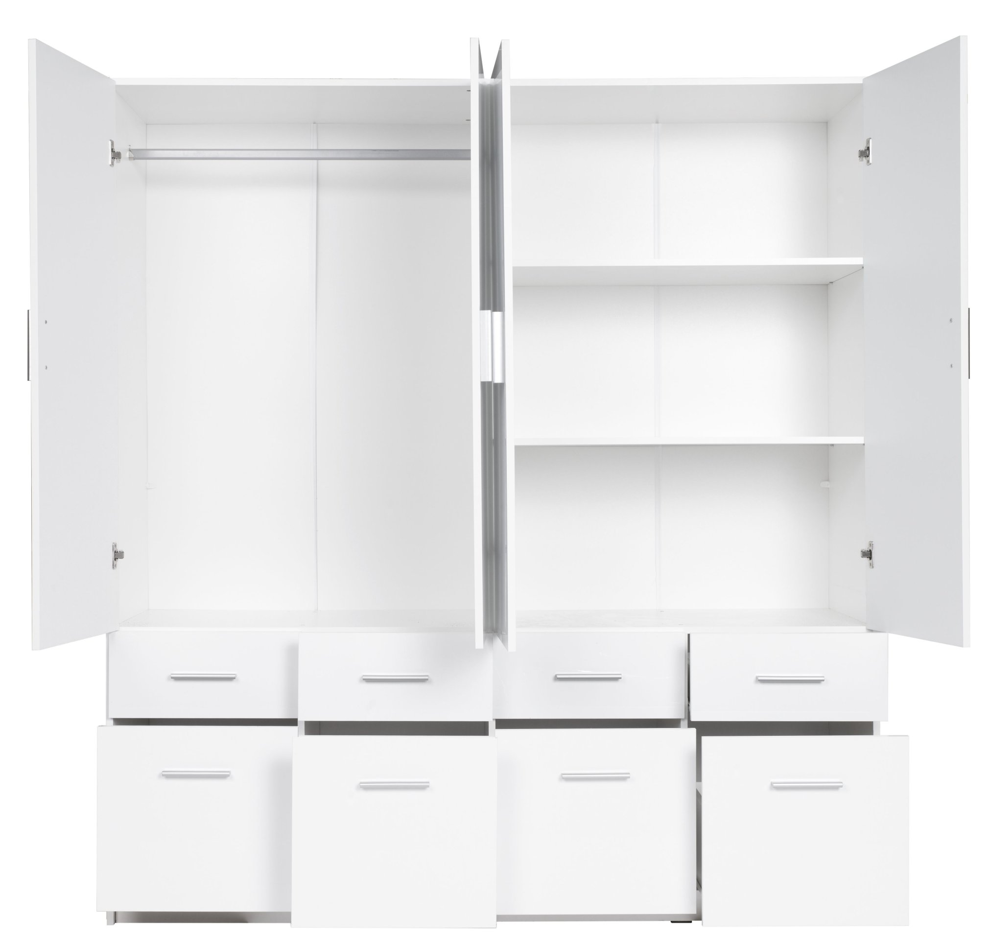 Svaki dom treba prostor gdje možete na uredan i pregledan način pohraniti svoju odjeću, dodatke i druge tekstilne potrepštine. Upravo zato je garderobni ormar jedan od najvažnijih komada namještaja u spavaćoj sobi ili garderobi. Četverokrilni garderobni ormar Tallin 05 B odličan je izbor za sve koji traže kombinaciju funkcionalnosti, suvremenog dizajna i kvalitetne izrade. S dimenzijama 181x54x198 cm nudi dovoljno prostora za organizaciju garderobe, a svojom neutralnom bijelom bojom lijepo se uklapa u različite stilove unutarnjeg uređenja.