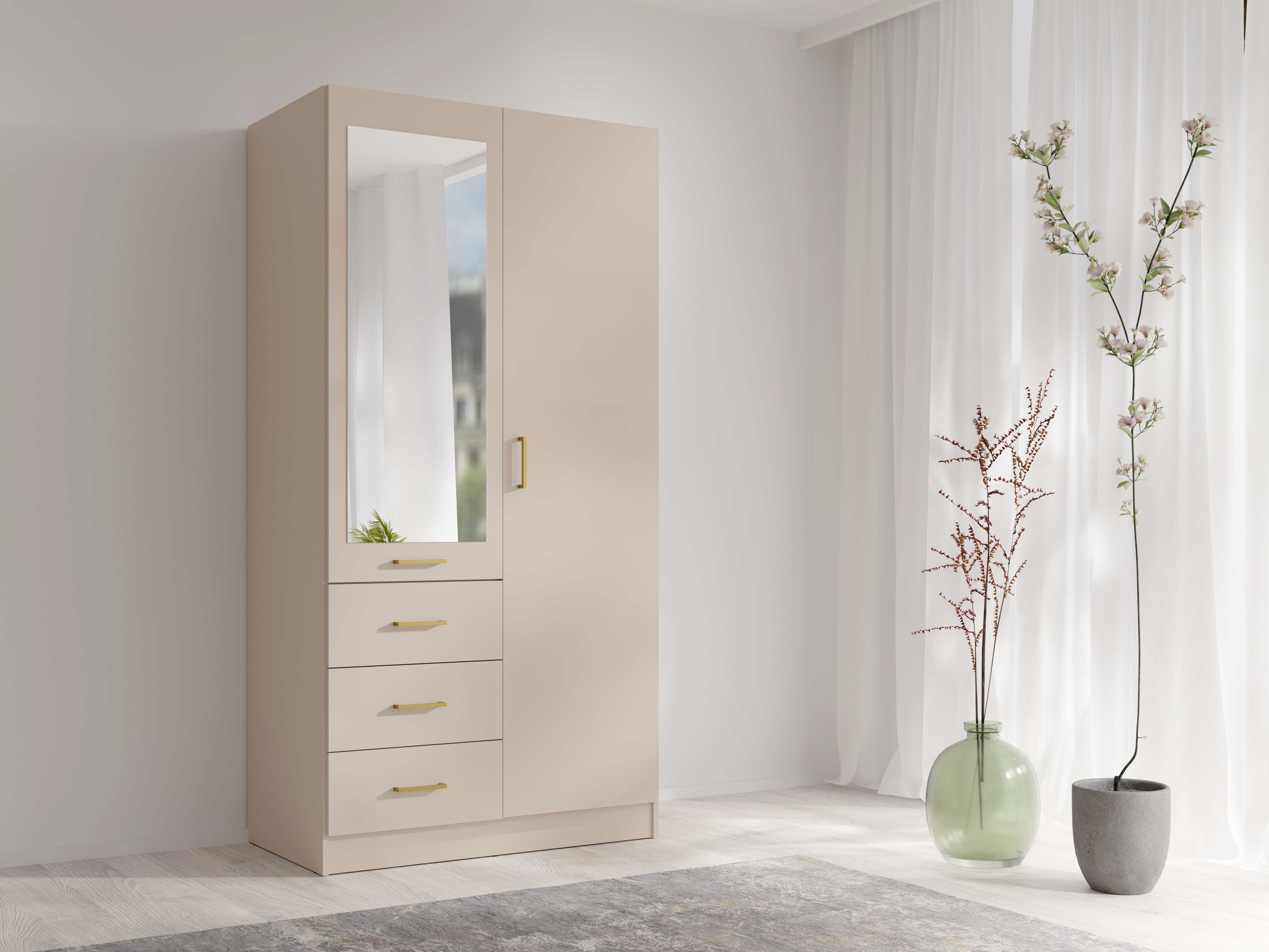 Boja ima ključnu ulogu u stvaranju ugođaja prostora. Bež ton garderobnog ormara Konso 15 univerzalan je, a istovremeno iznimno elegantan. Njegova neutralnost omogućuje jednostavno kombiniranje s drugim bojama i materijalima – od svijetlog drva do kontrastnih tamnijih površina. Bež boja stvara osjećaj topline i svjetlosti, pa je ormar idealan izbor i za manje spavaće sobe i za veće garderobne prostore, gdje želite zadržati osjećaj prozračnosti.