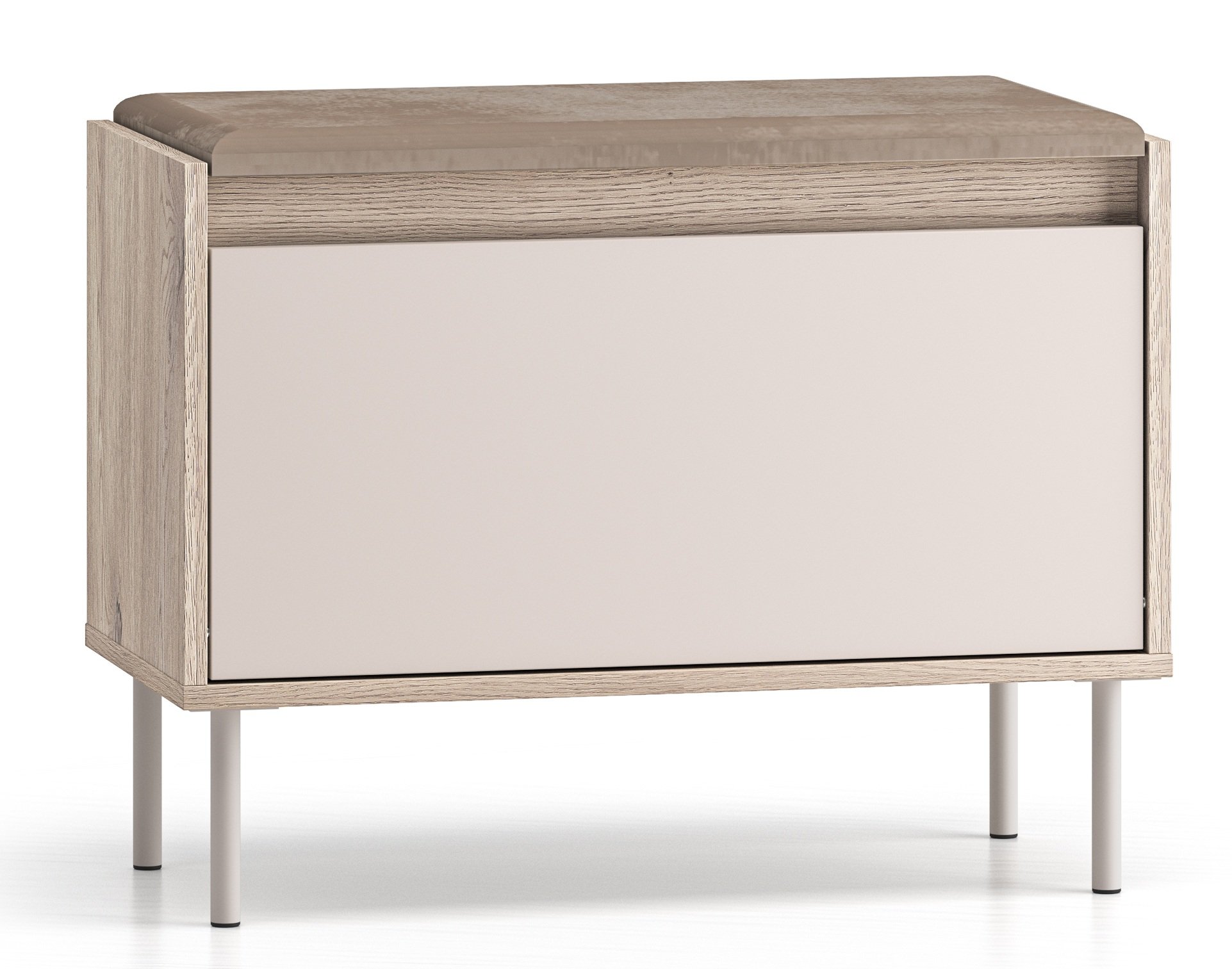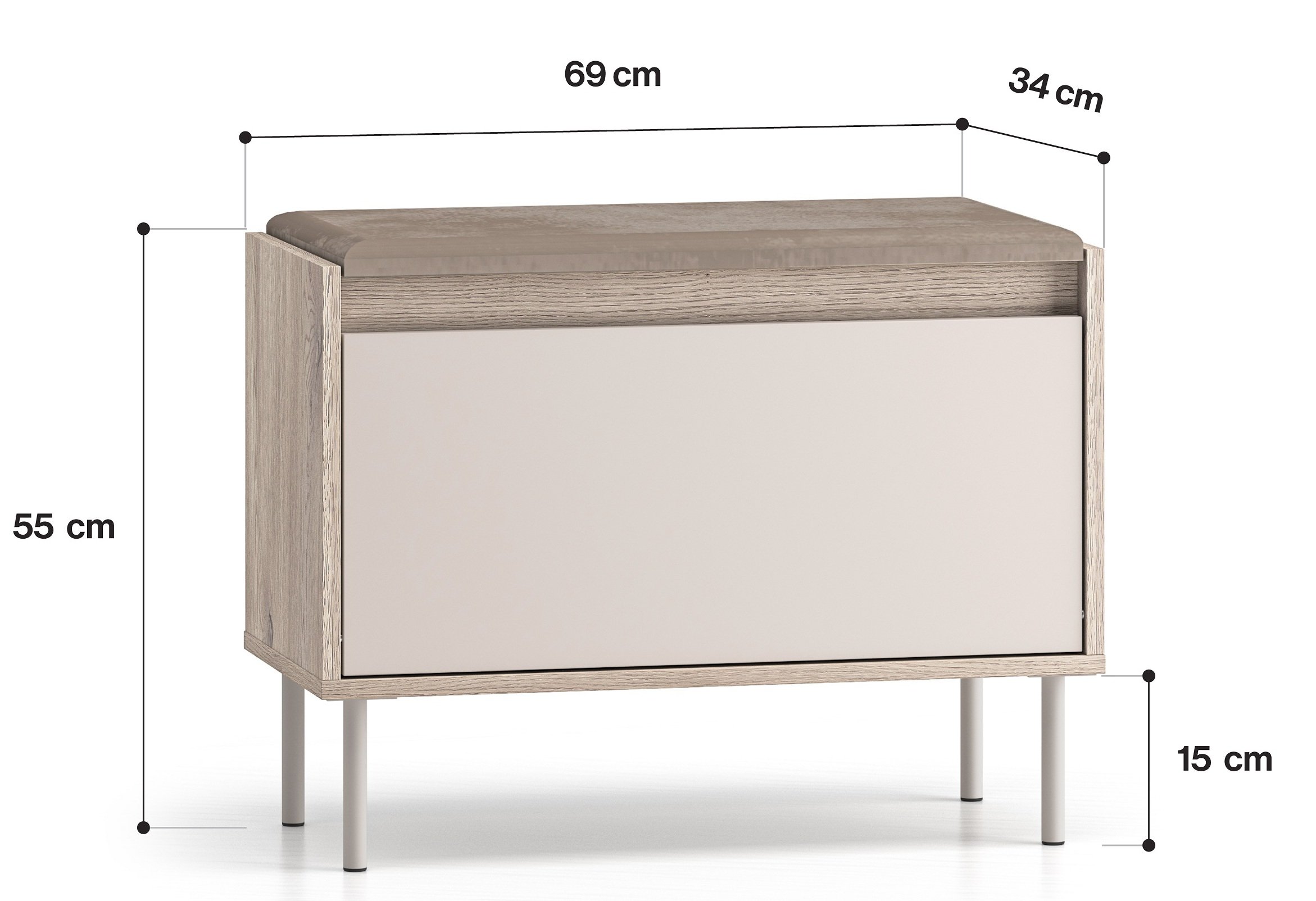 Ormarić za cipele Voco 06 – ML Meble je praktičan i estetski dovršen komad namještaja koji svojom kompaktnom veličinom i profinjenom kombinacijom boja kašmira, hrasta Cremona Terracotta te bež baršuna unosi toplinu i eleganciju u prostor. S modernim dizajnom i kvalitetnim materijalima omogućuje uredno pohranjivanje obuće, a istovremeno osigurava udobnost i dug vijek trajanja. Njegove dimenzije 69×34×55 cm idealne su za manje predsoblja, hodnike ili garderobne prostore, gdje je svaki centimetar važan.