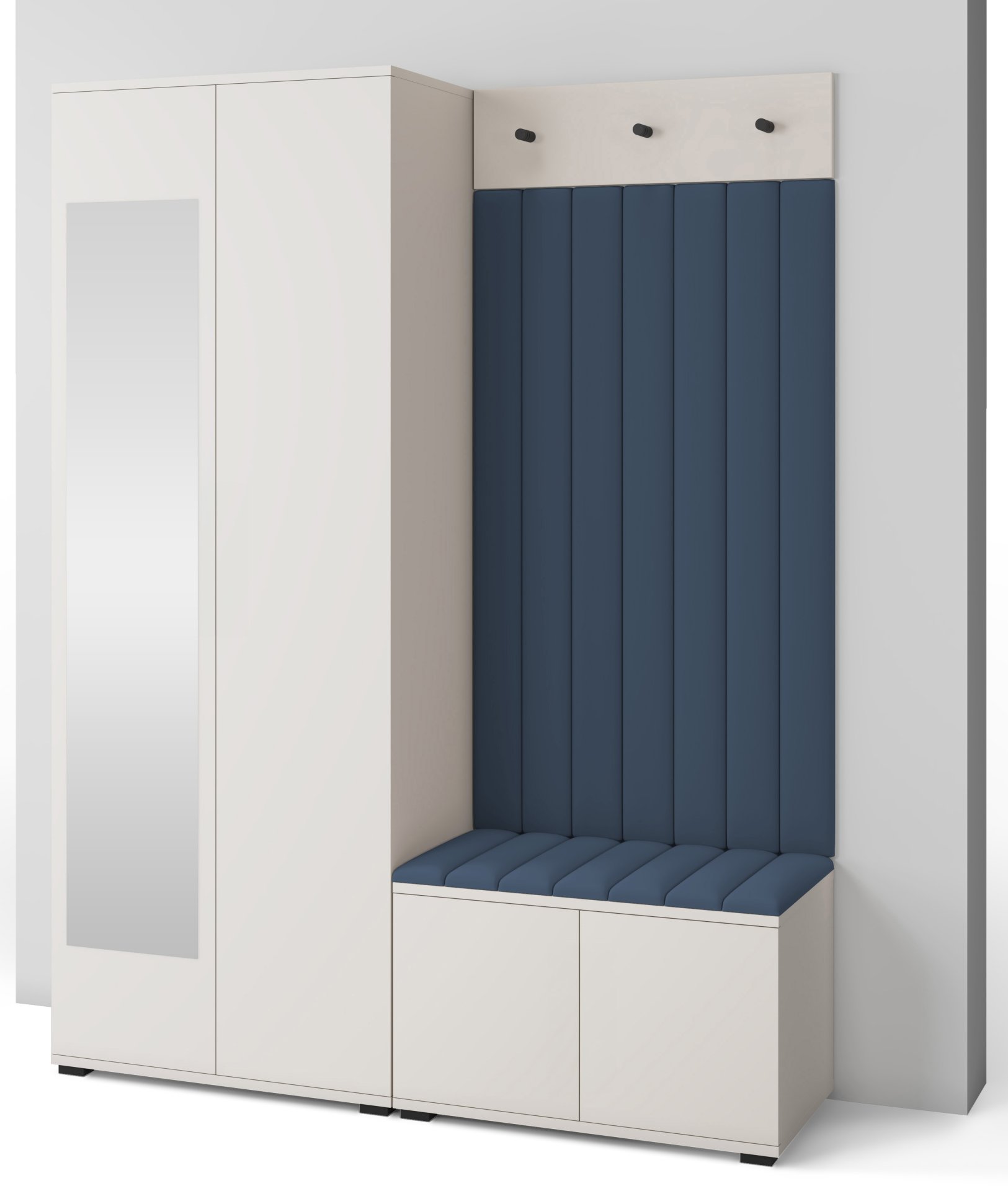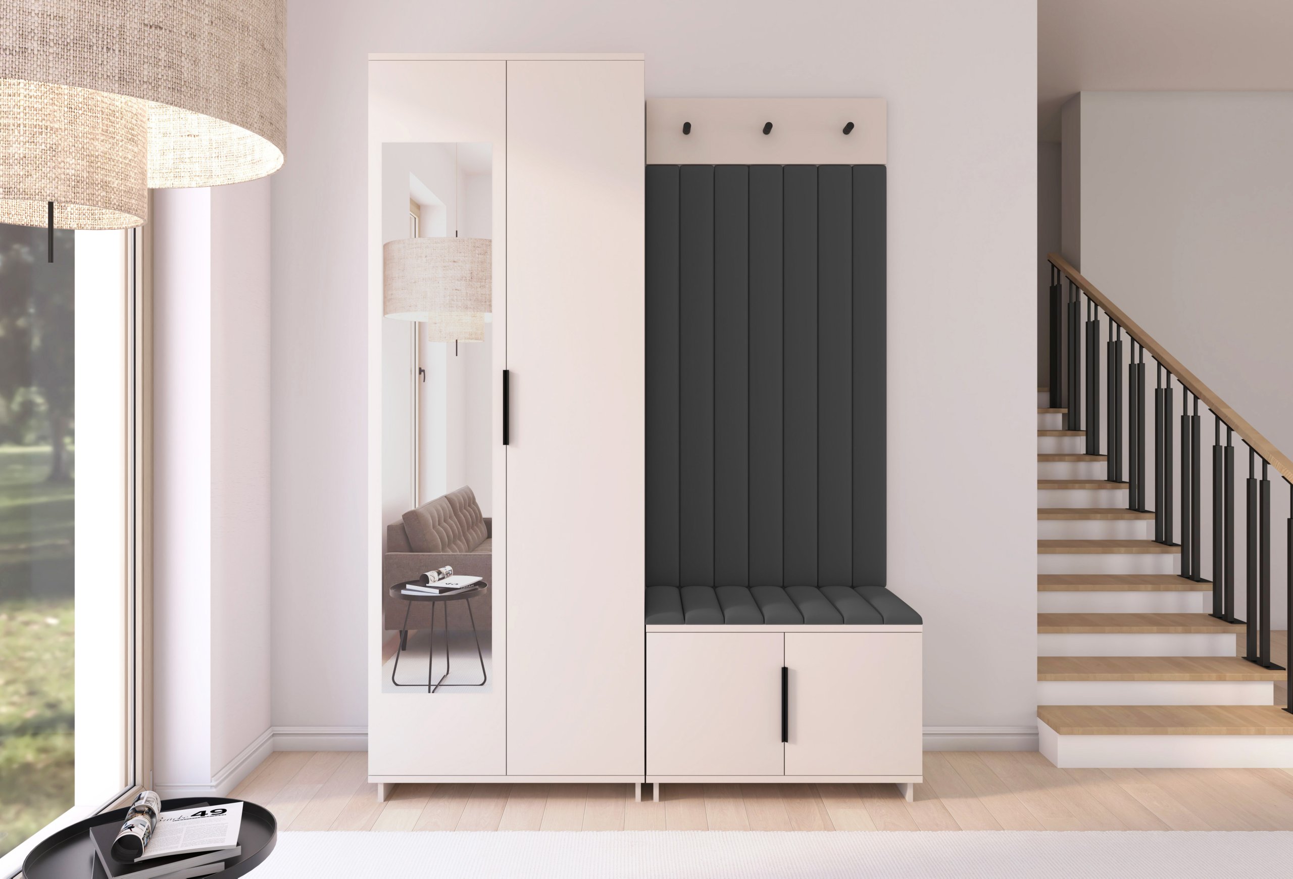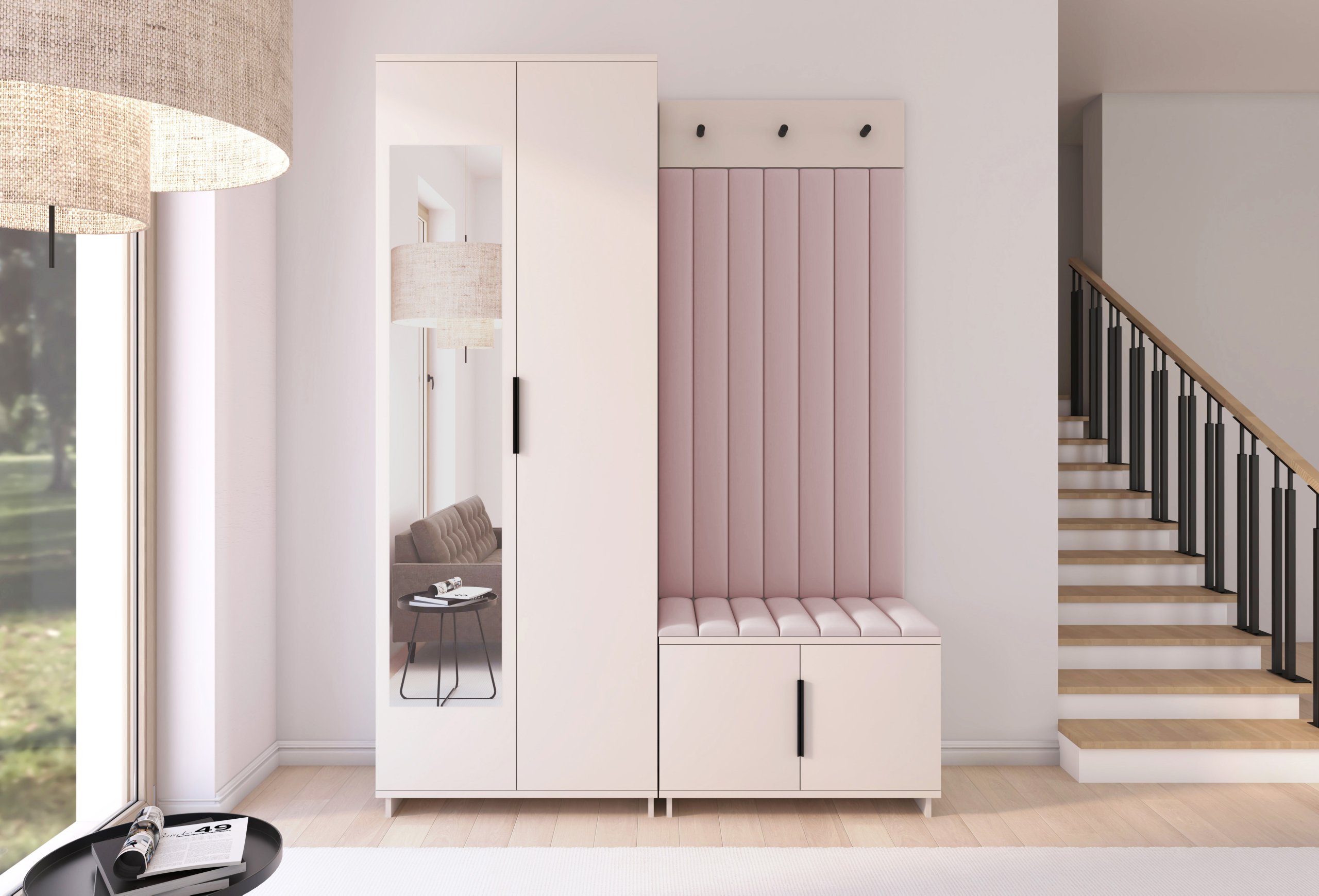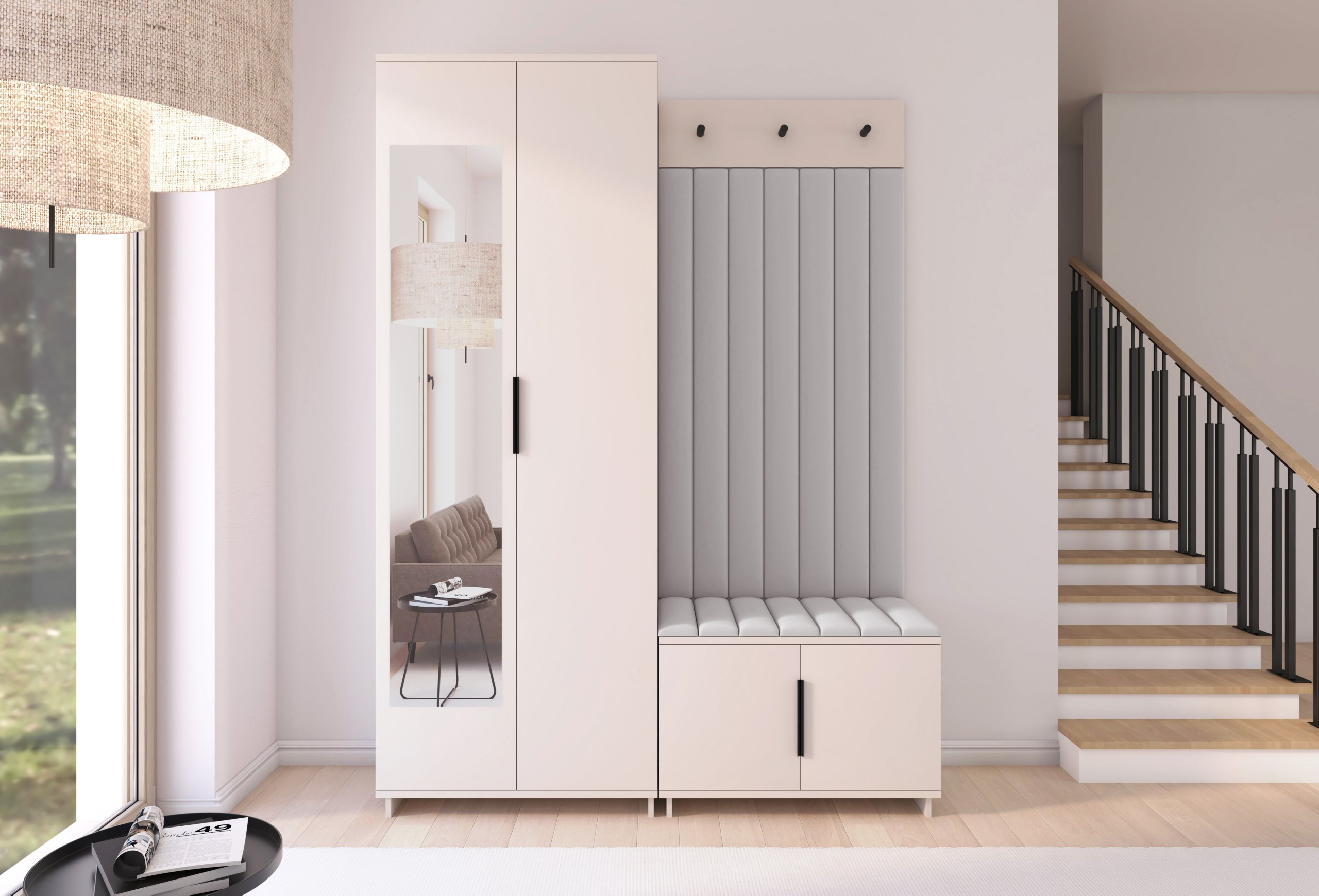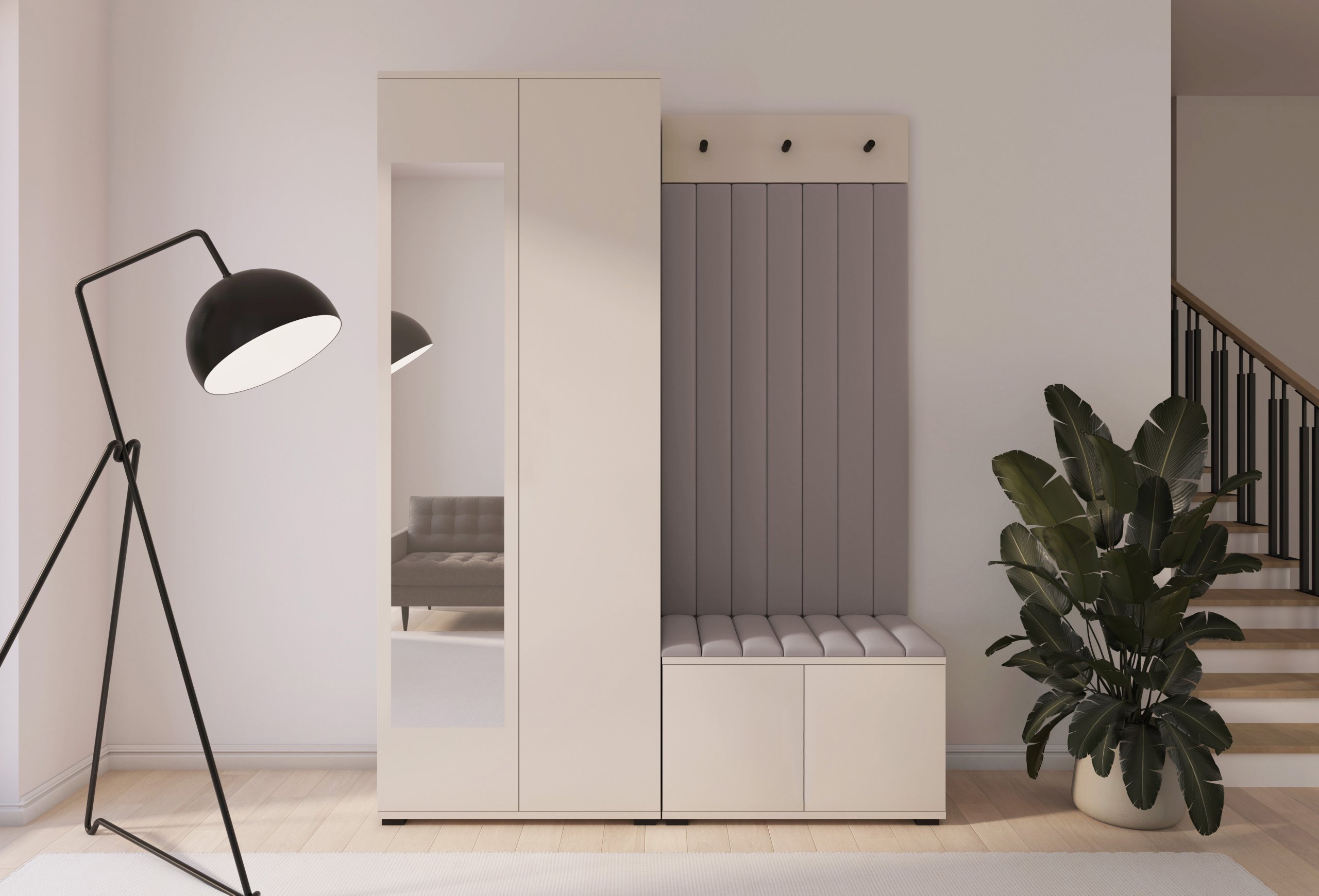 Boja kašmir namještaja Bianco 13 donosi nježnu toplinu i savršeno se uklapa s različitim nijansama zidova i podnih obloga. Zbog neutralnog tona komplet se lijepo slaže i sa svjetlijim i s tamnijim interijerima. Tapecirani paneli nisu samo dekorativni, već i funkcionalni – štite zid od prljavštine i oštećenja, a istovremeno stvaraju osjećaj udobnosti i domaće atmosfere.