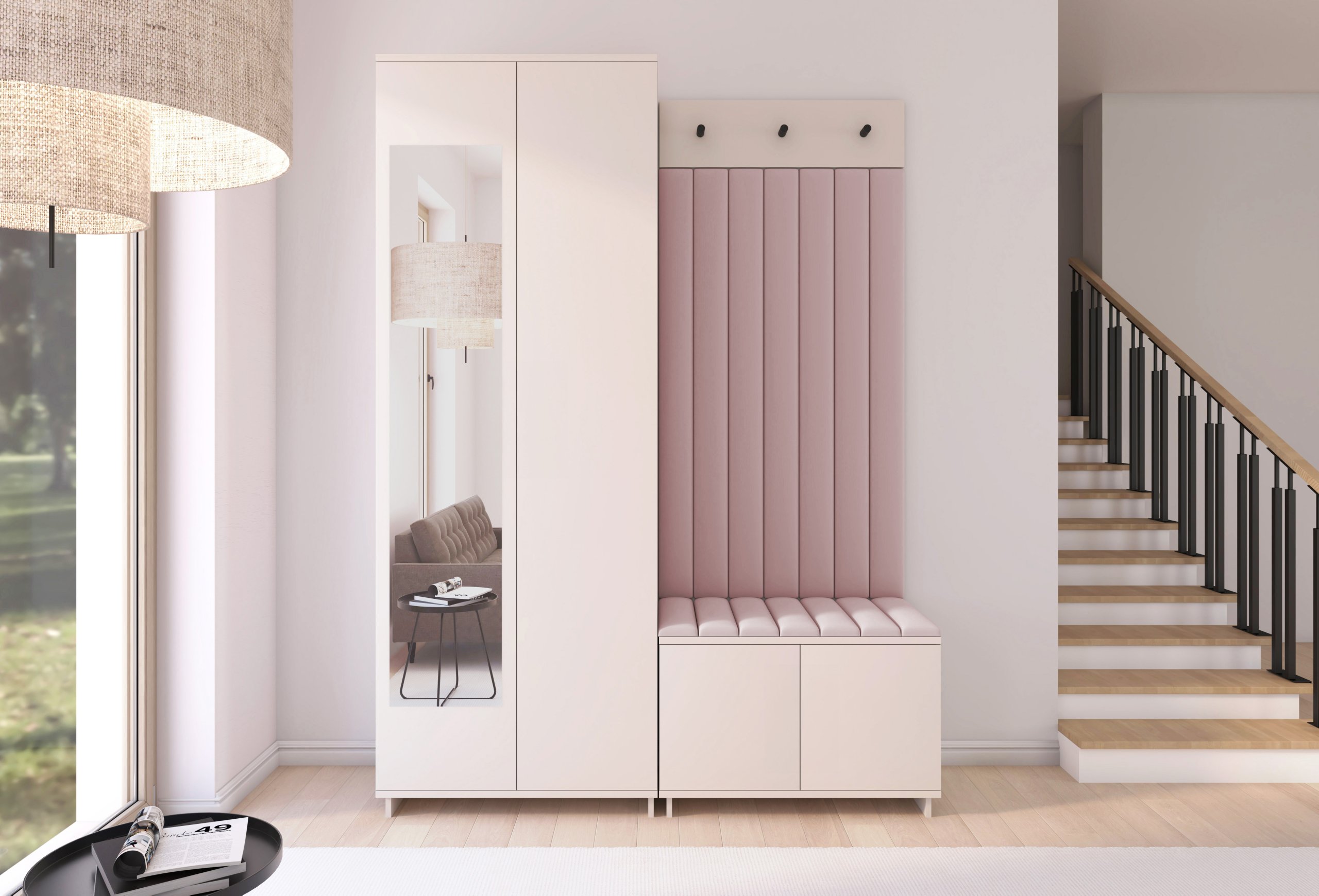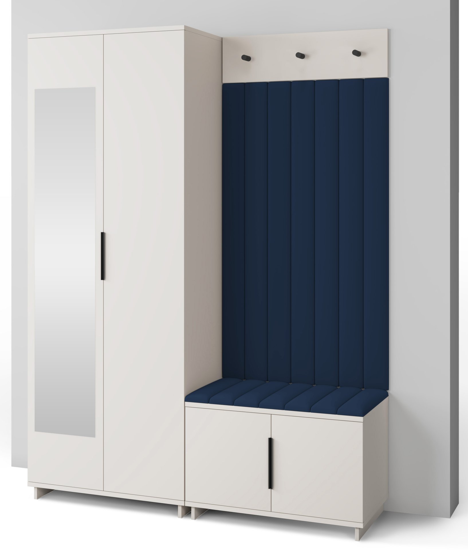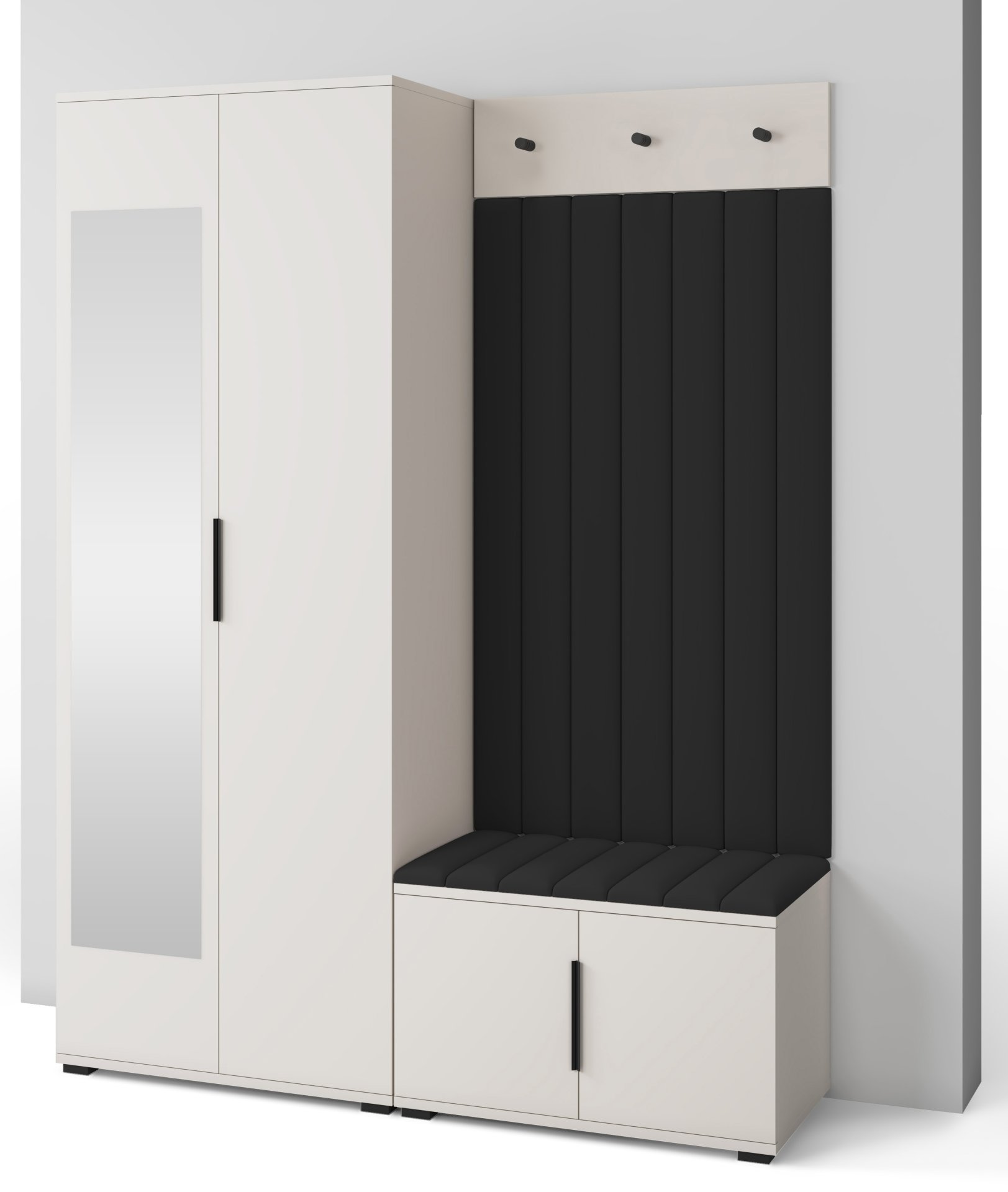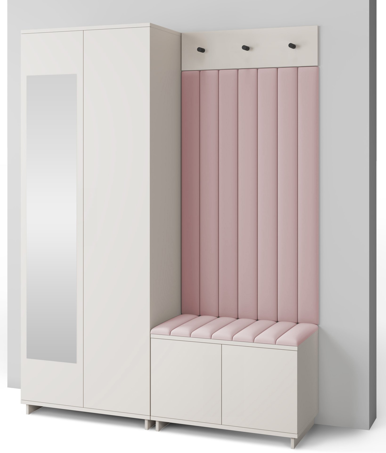 Boja kašmir namještaja Bianco 13 donosi nježnu toplinu i savršeno se uklapa s različitim nijansama zidova i podnih obloga. Zbog neutralnog tona komplet se lijepo slaže i sa svjetlijim i s tamnijim interijerima. Tapecirani paneli nisu samo dekorativni, već i funkcionalni – štite zid od prljavštine i oštećenja, a istovremeno stvaraju osjećaj udobnosti i domaće atmosfere.