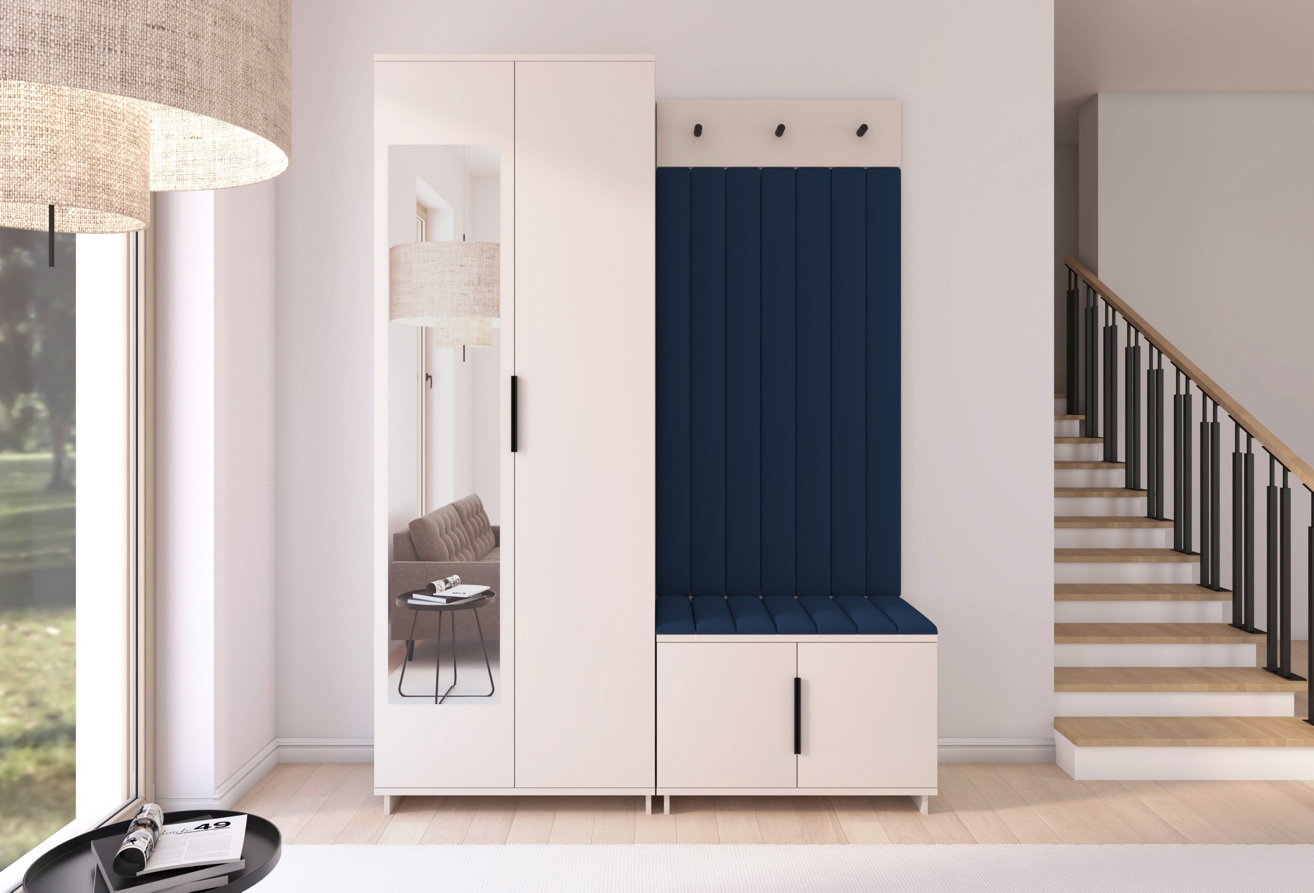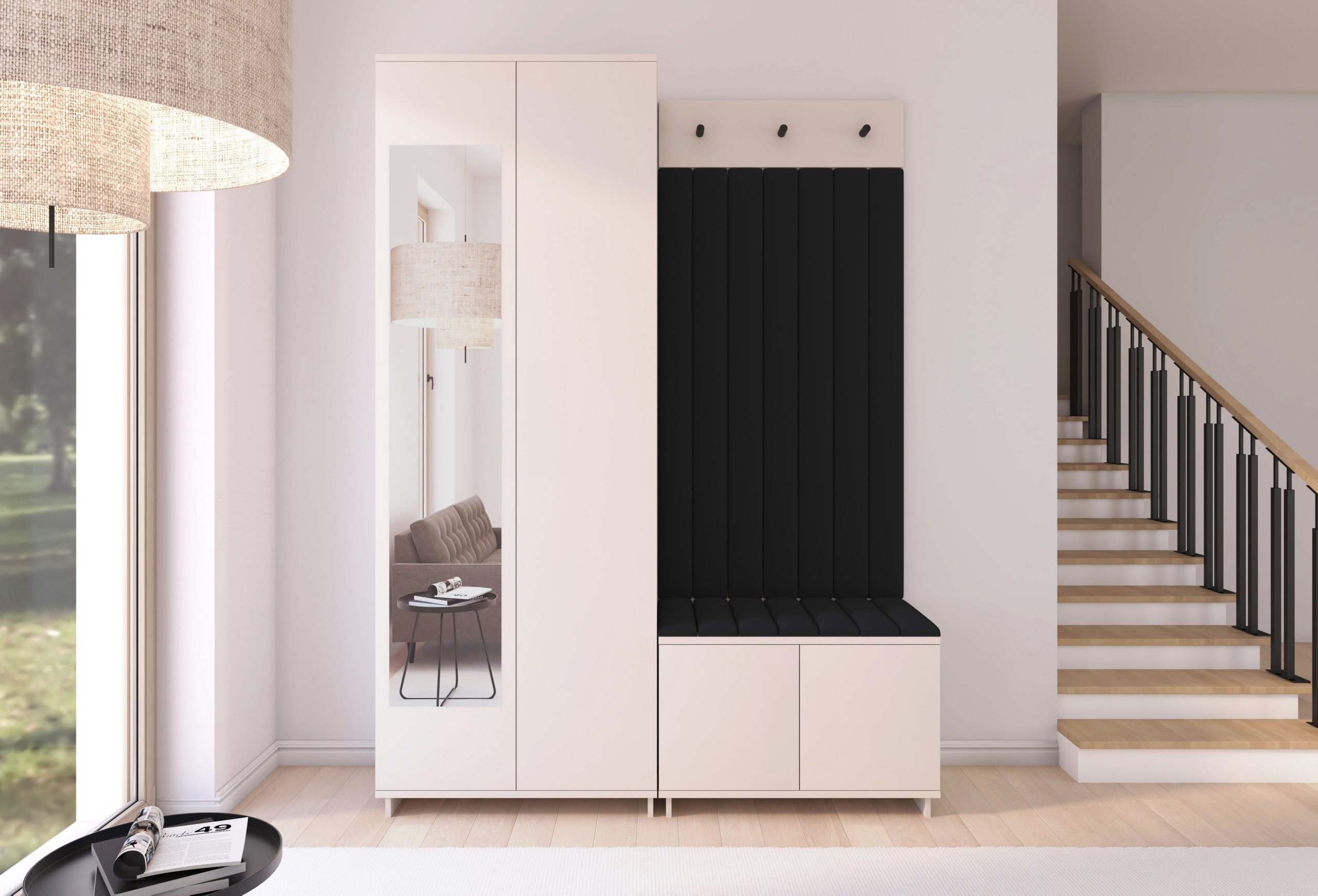 Komplet za hodnik Bianco 13 osmišljen je kao praktično i estetsko rješenje za predsoblja, gdje je prostor dragocjen, ali ne želite praviti kompromise po pitanju stila. Svaki komad namještaja u kompletu međusobno je usklađen po boji i materijalu, što omogućuje harmoničan izgled cijelog prostora.