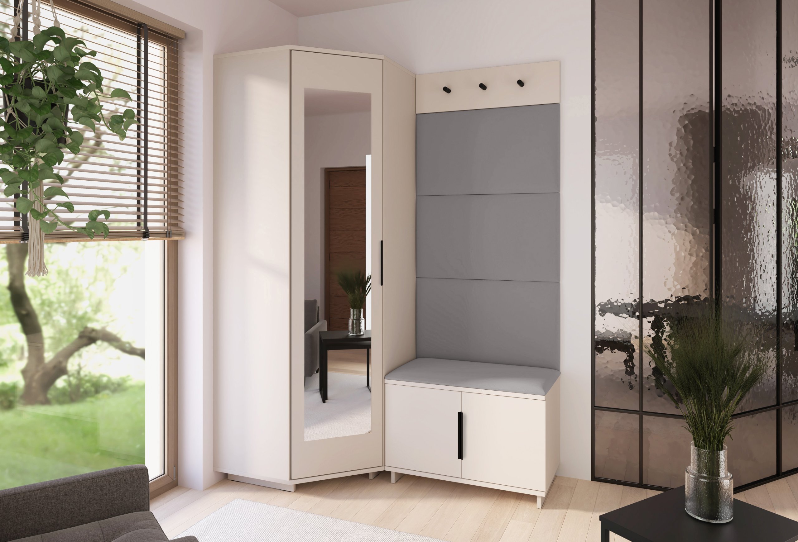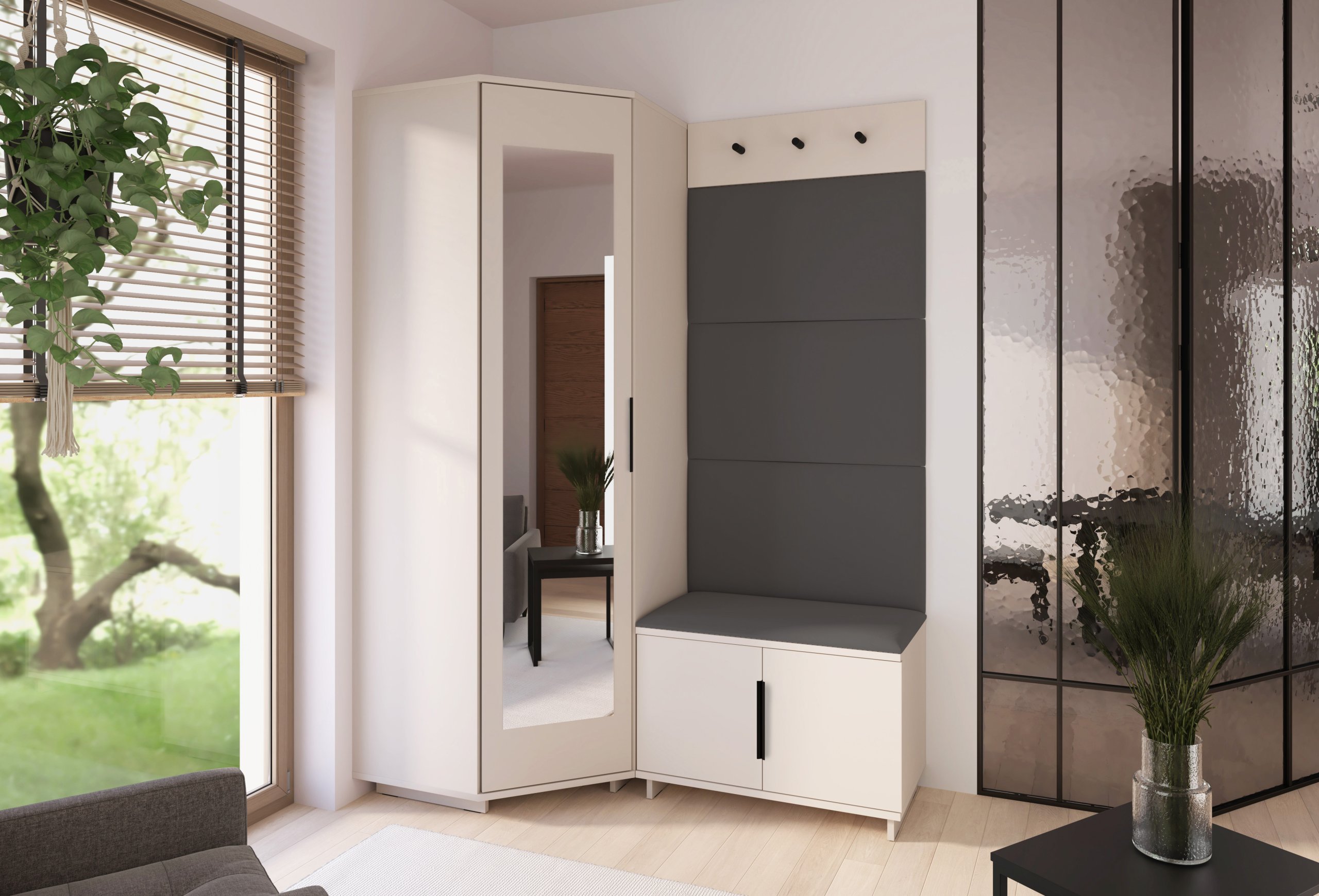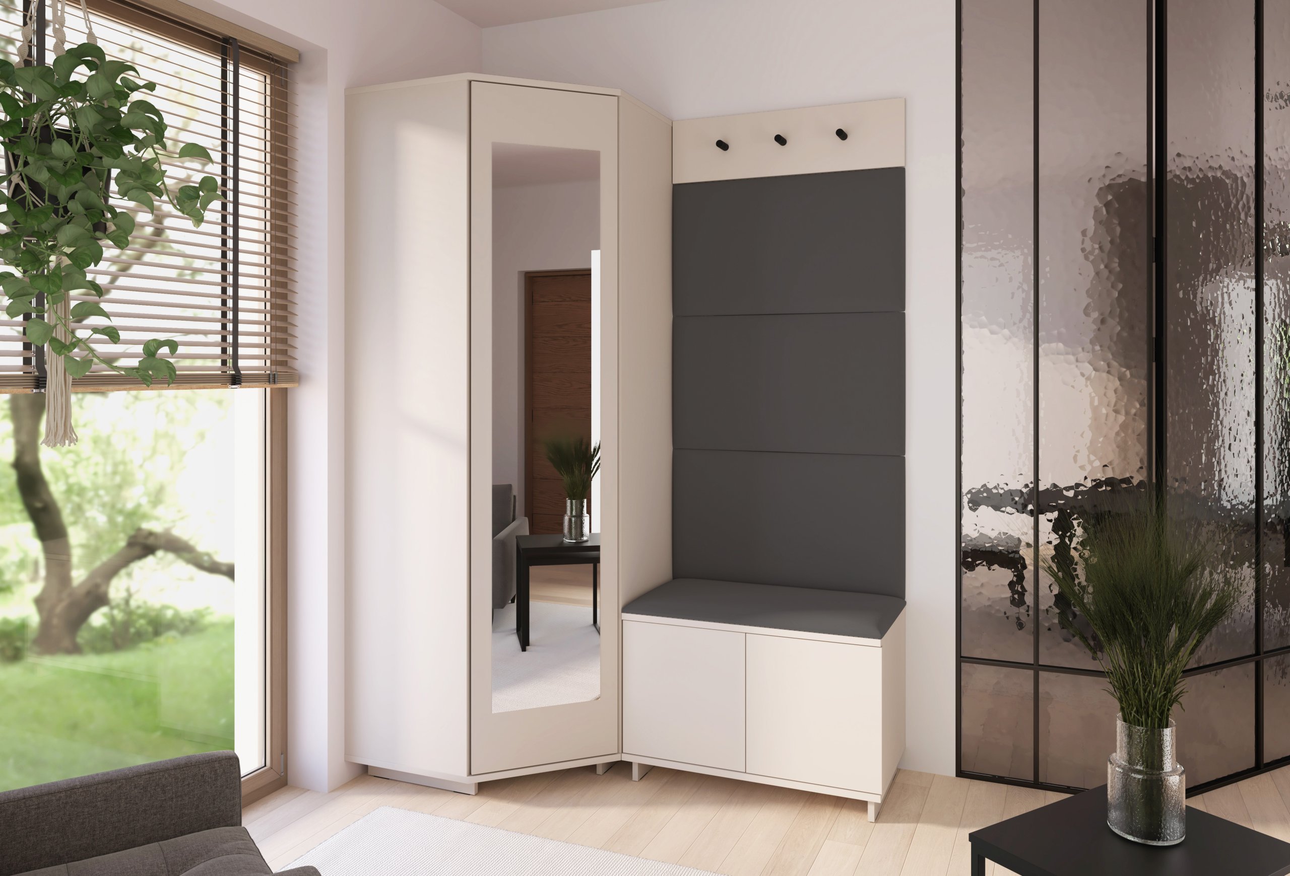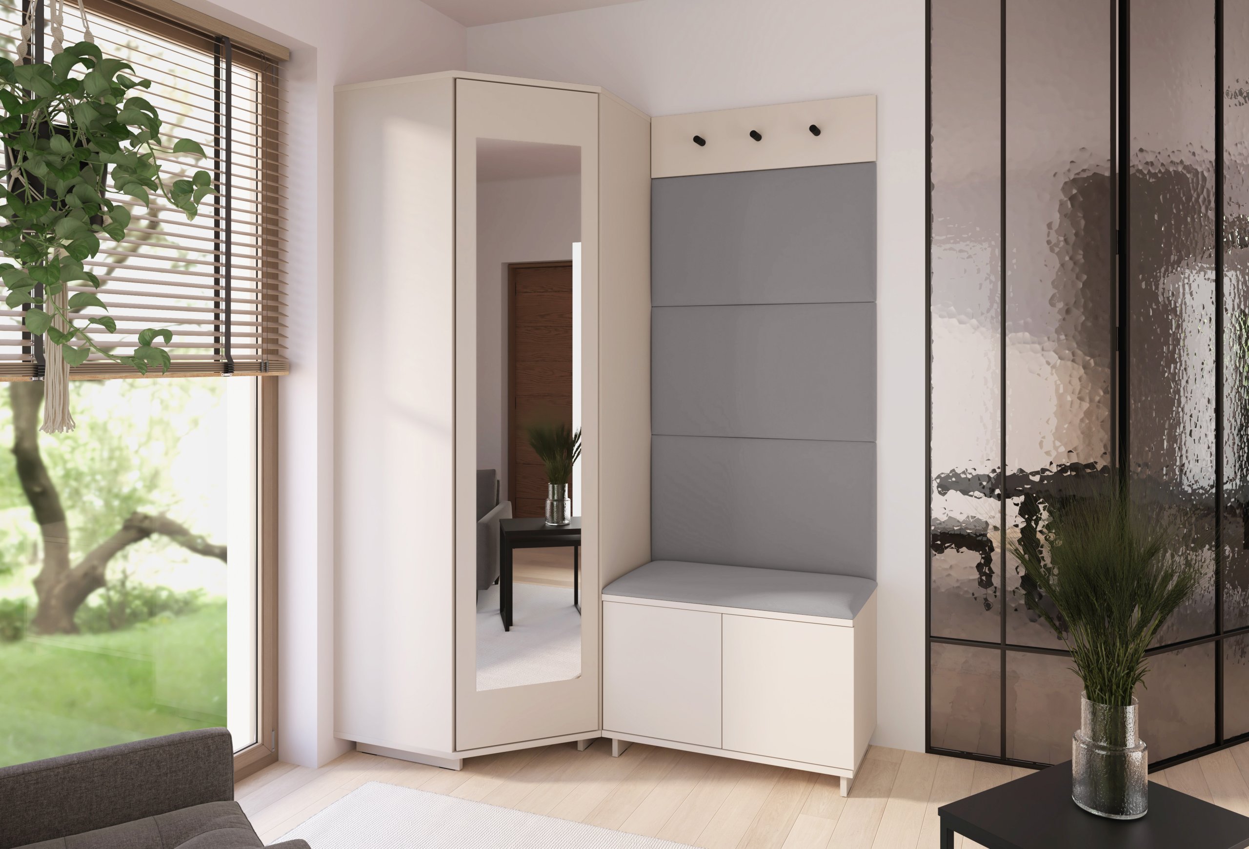 Svaki je element oblikovan s mišlju na korisnika – od visine sjedišta do rasporeda vješalica i pristupa ormaru. Takav promišljen dizajn omogućuje intuitivnu upotrebu i održava red u predsoblju bez napora.