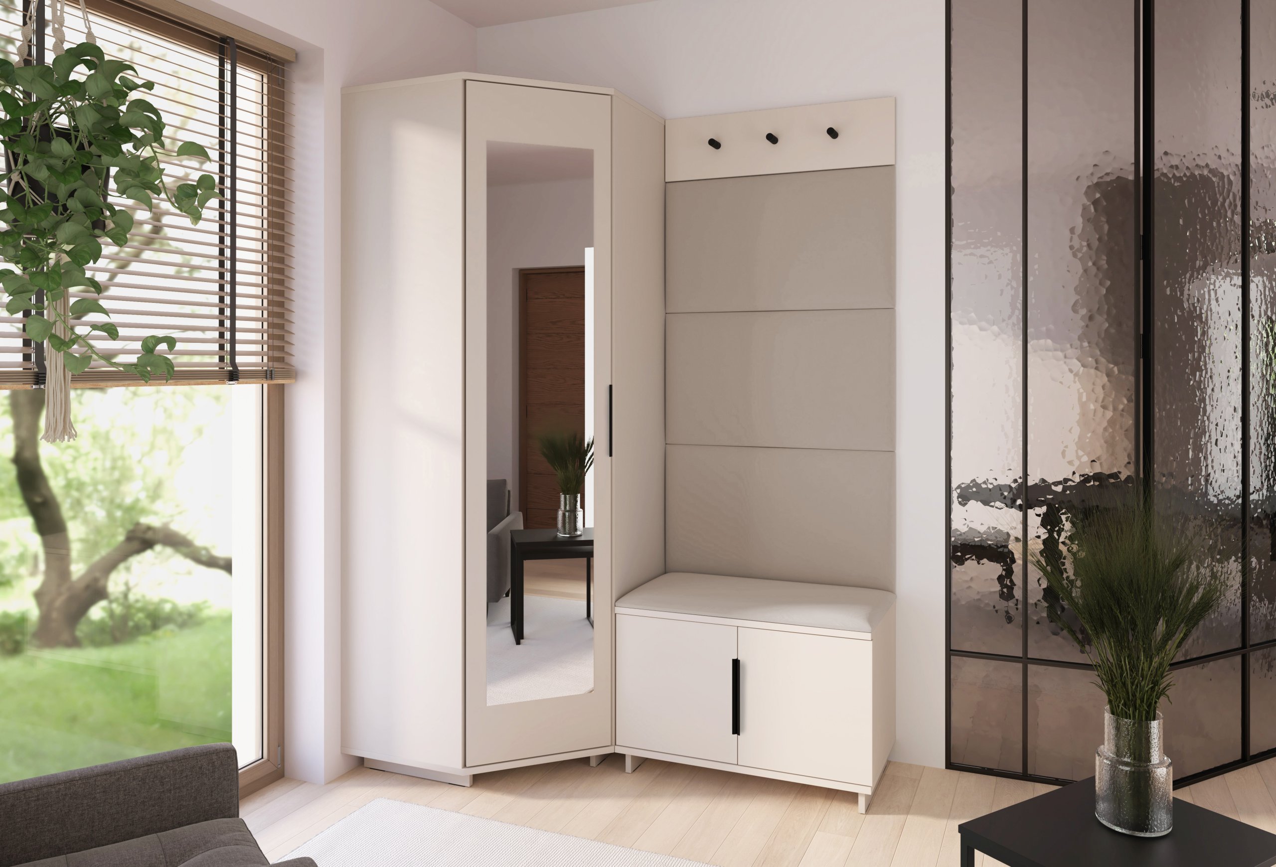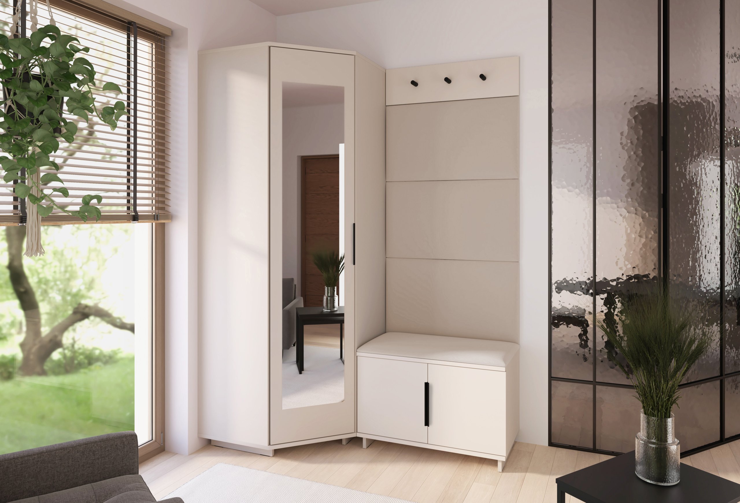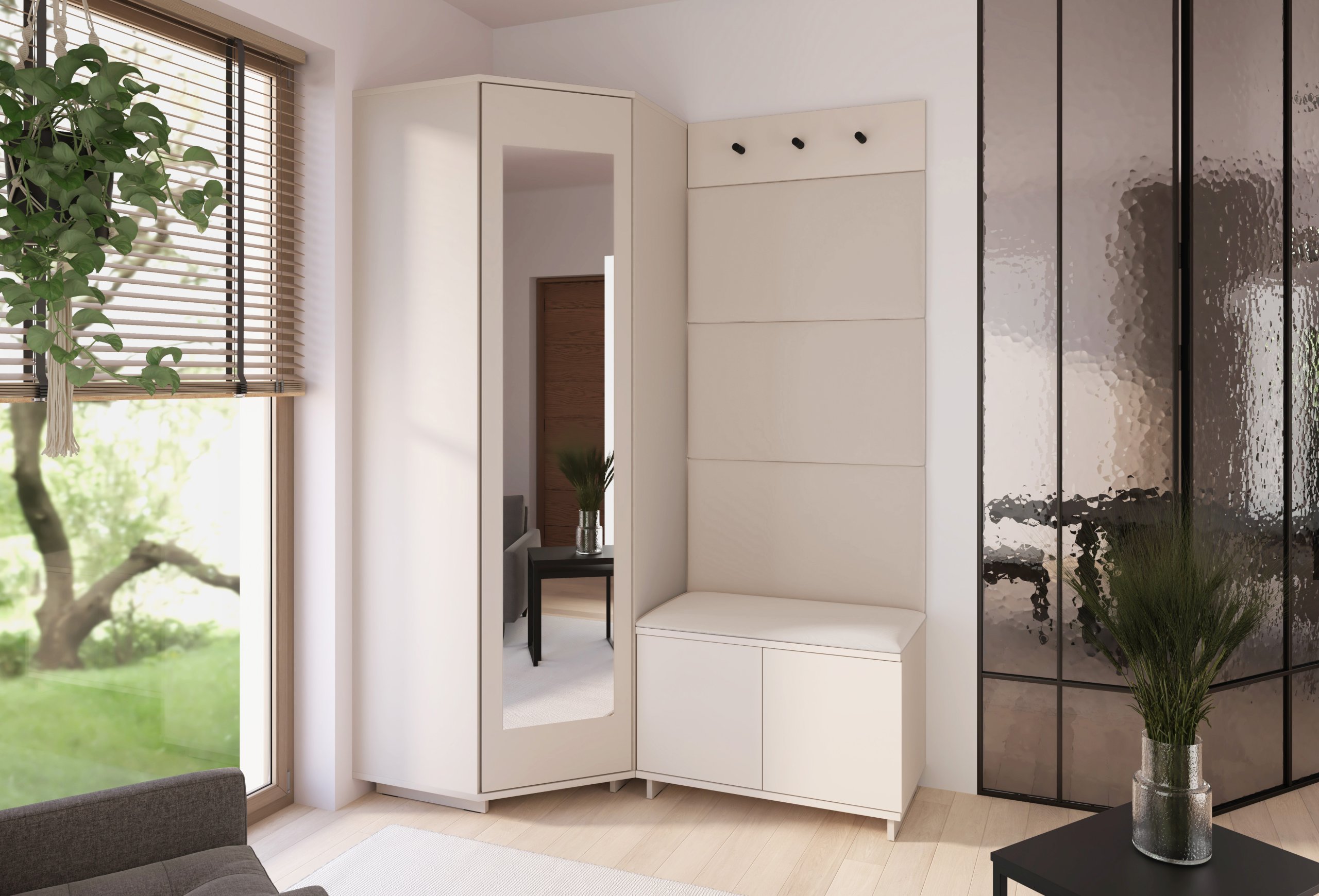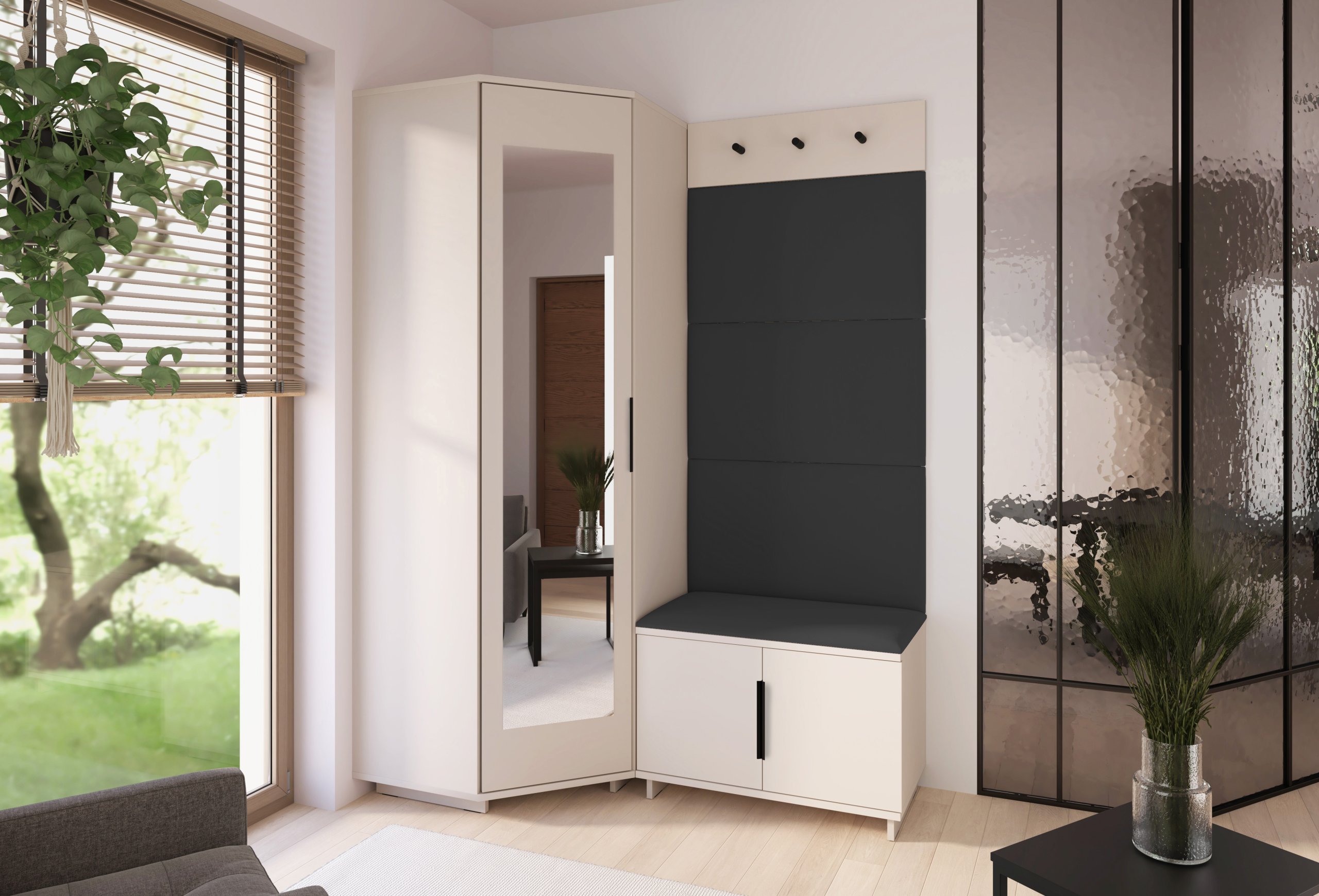 Svaki je element oblikovan s mišlju na korisnika – od visine sjedišta do rasporeda vješalica i pristupa ormaru. Takav promišljen dizajn omogućuje intuitivnu upotrebu i održava red u predsoblju bez napora.