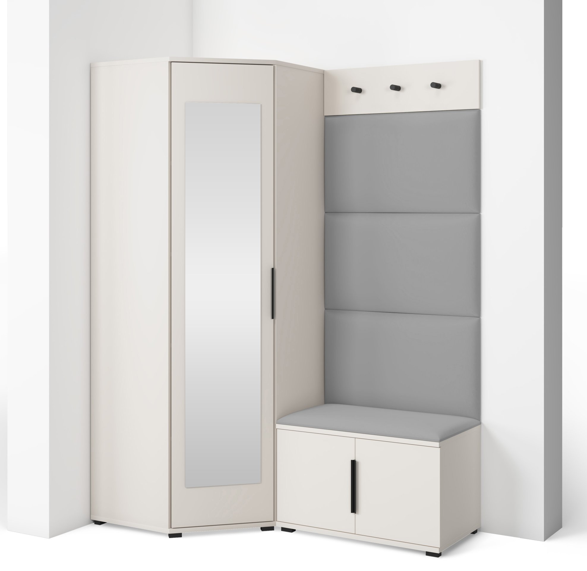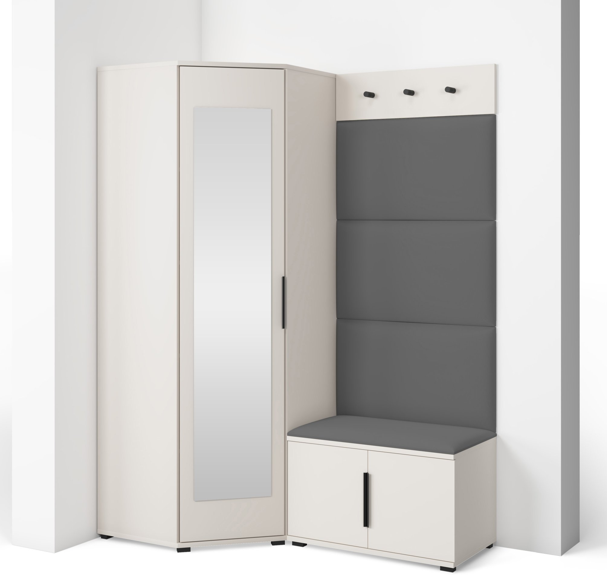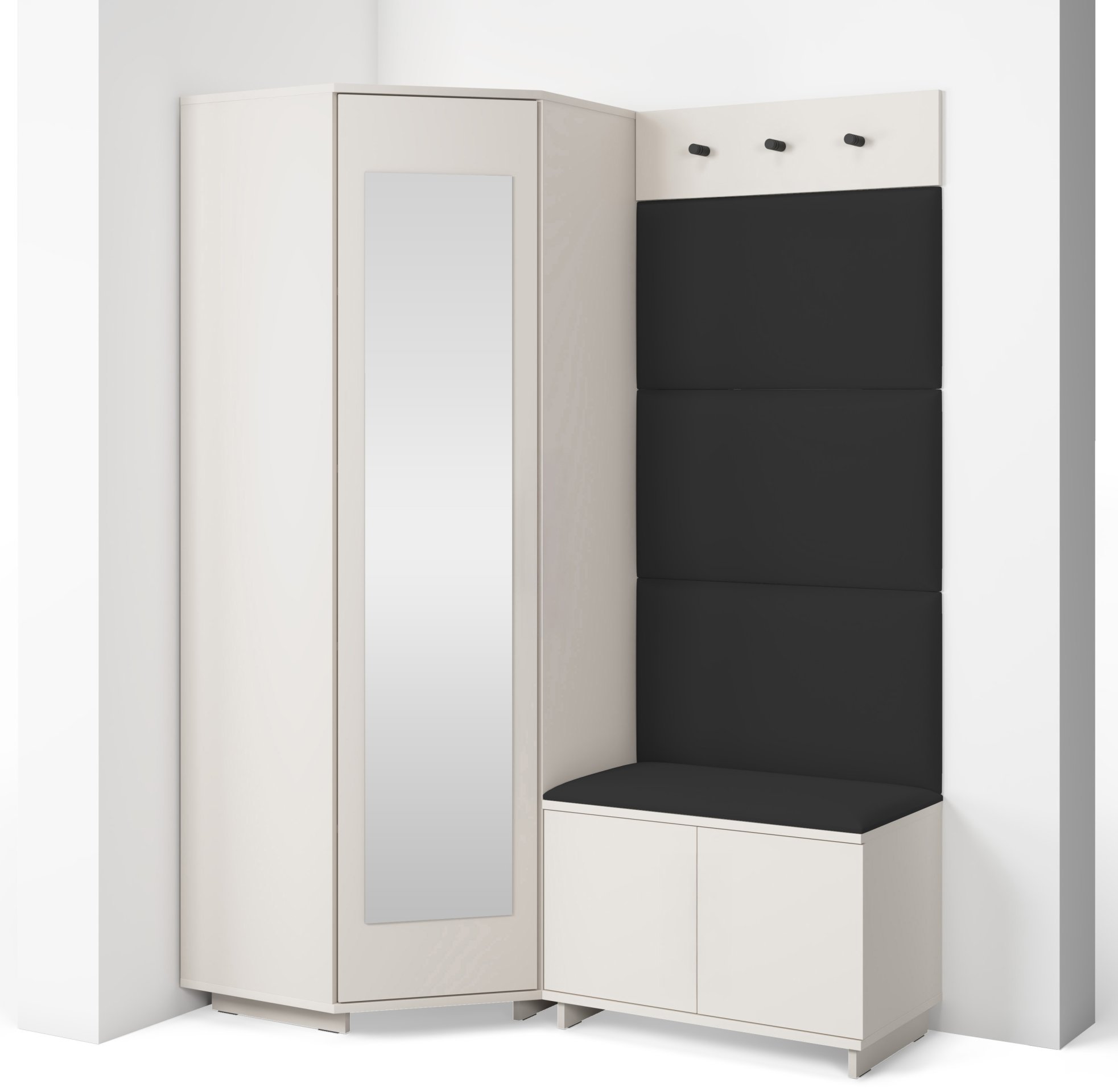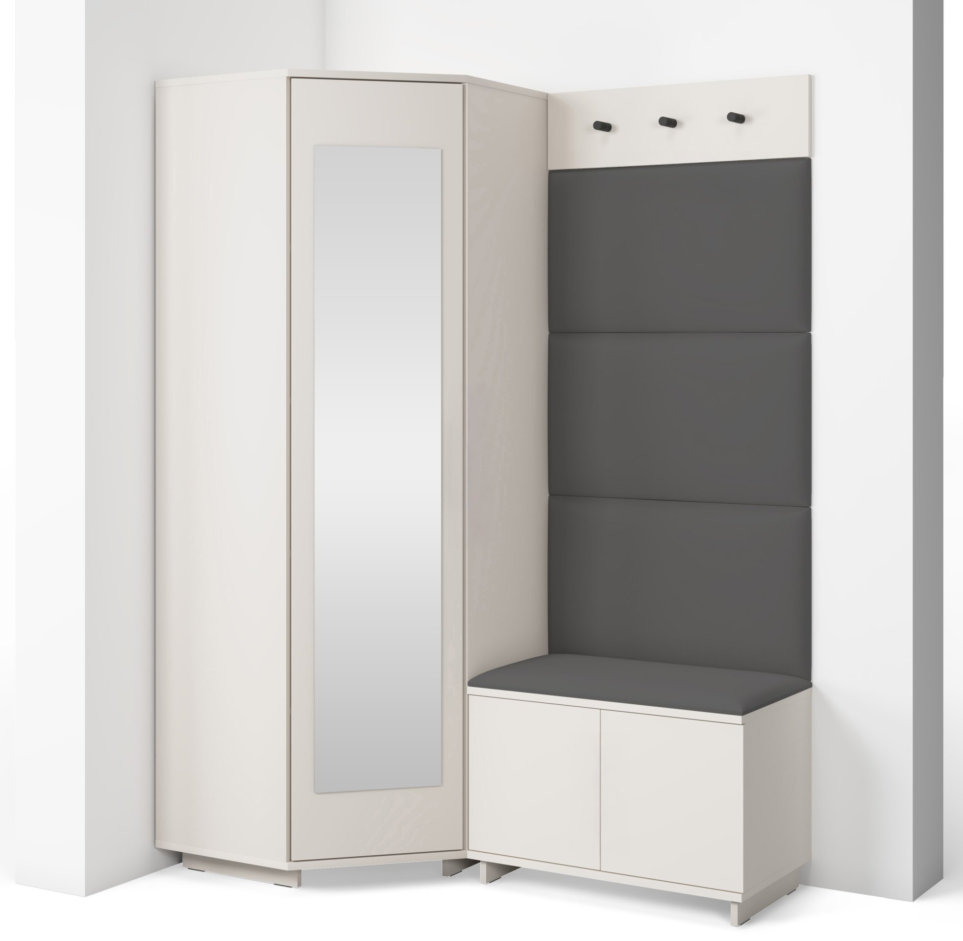 Bianco 17 nije samo estetski dodatak, već i praktičan pomoćnik u svakodnevnom životu. Kompaktan dizajn omogućuje da se komplet prilagodi i užim hodnicima, a istodobno nudi dovoljno prostora za pohranu. Ogledalo optički povećava prostor, dok tapecirani paneli stvaraju osjećaj topline i udobnosti. Sjedeći dio olakšava obuvanje cipela, a vješalice omogućuju da kaputi i torbe uvijek imaju svoje mjesto.