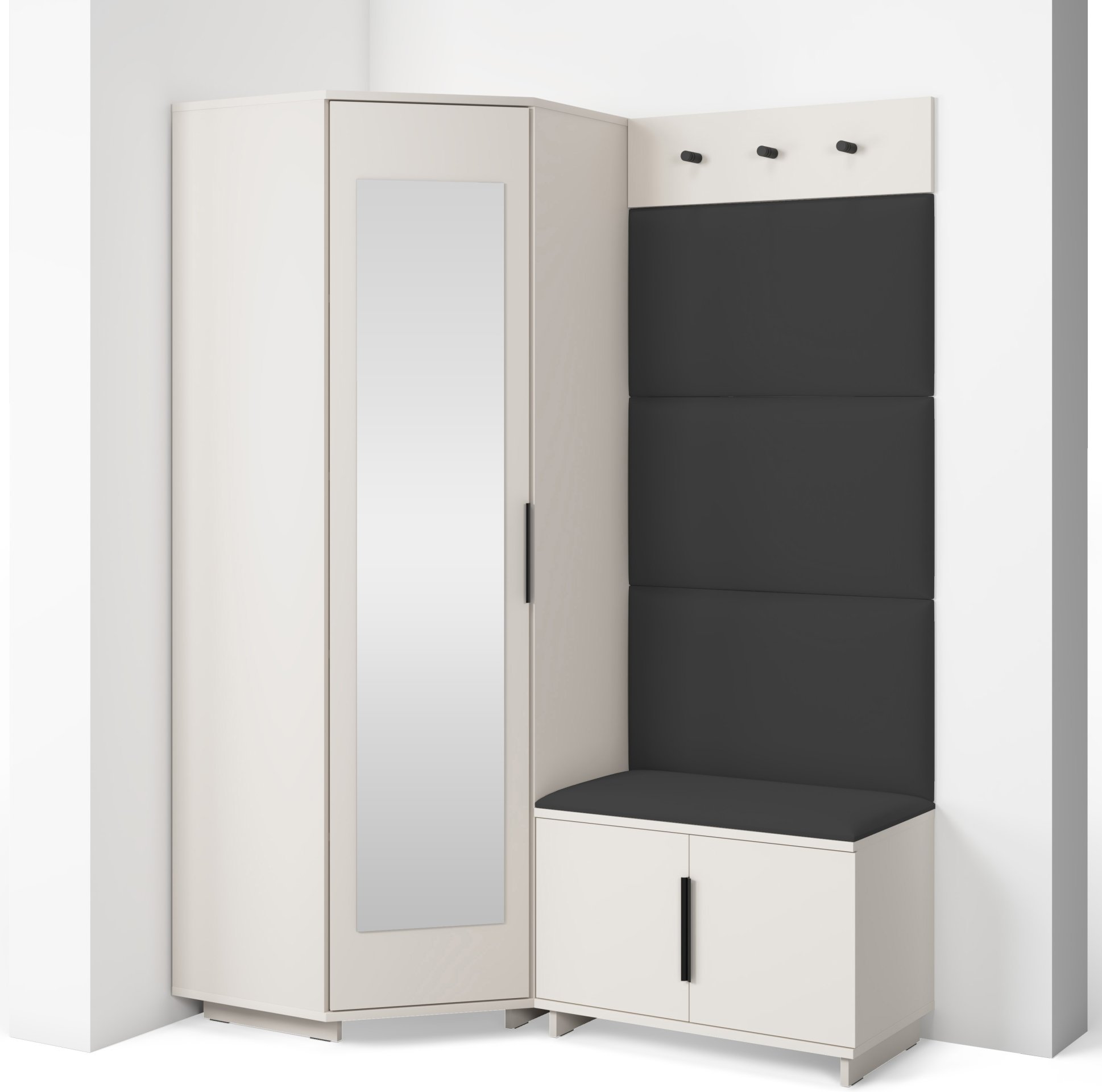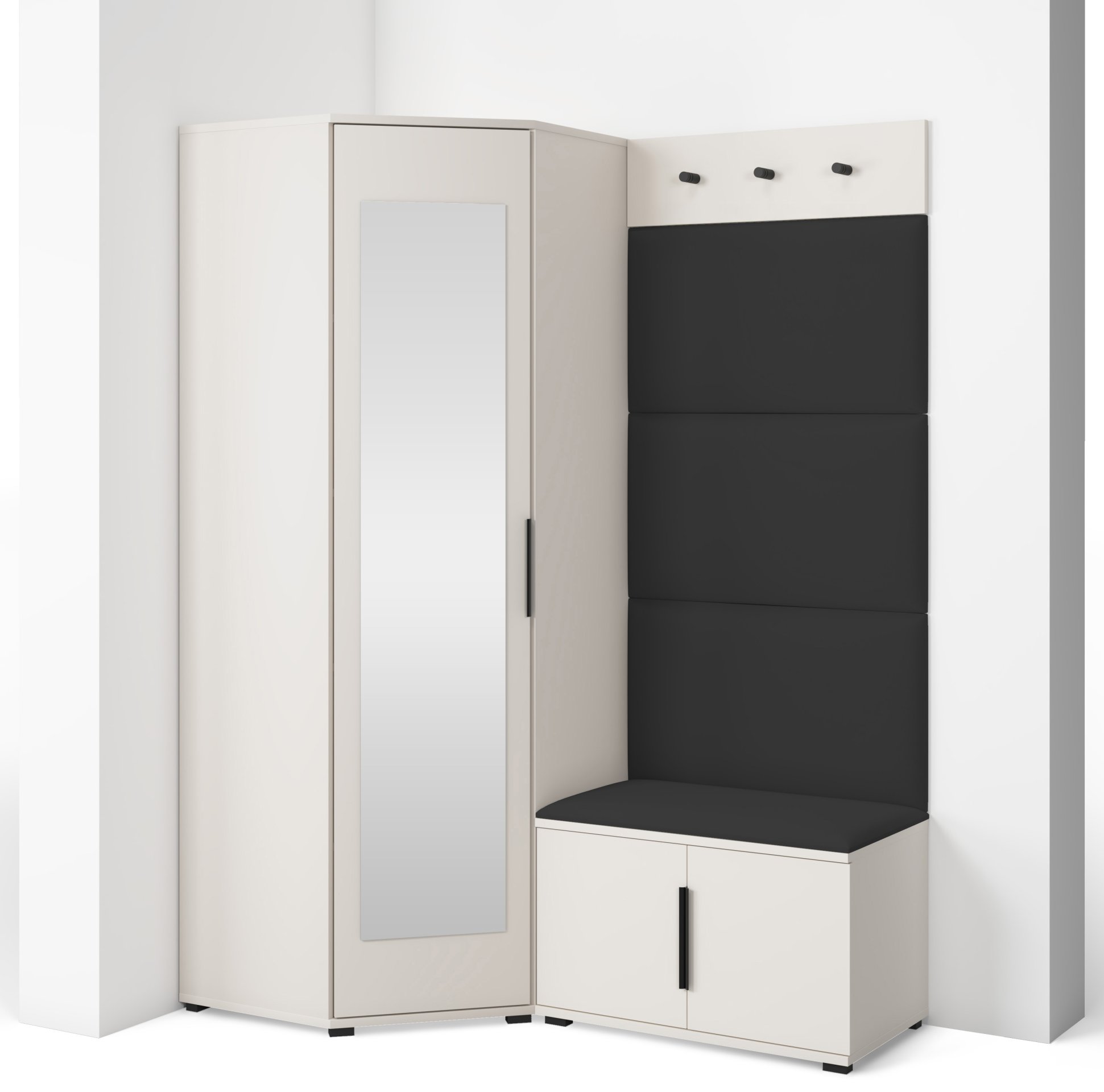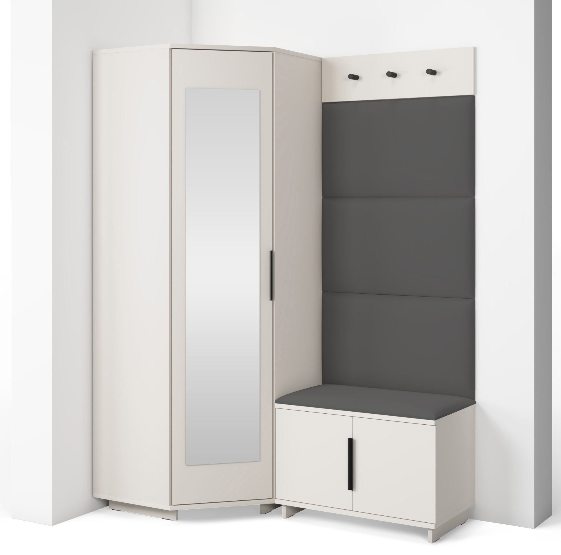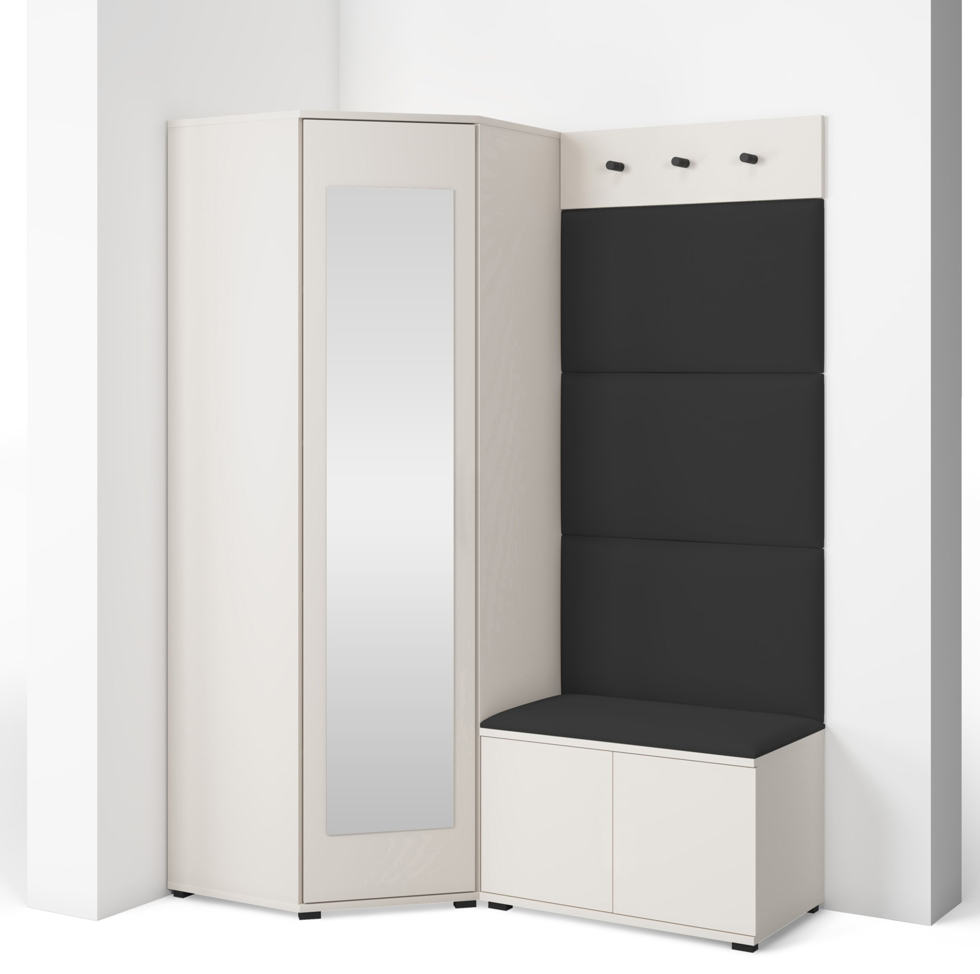 Bianco 17 nije samo estetski dodatak, već i praktičan pomoćnik u svakodnevnom životu. Kompaktan dizajn omogućuje da se komplet prilagodi i užim hodnicima, a istodobno nudi dovoljno prostora za pohranu. Ogledalo optički povećava prostor, dok tapecirani paneli stvaraju osjećaj topline i udobnosti. Sjedeći dio olakšava obuvanje cipela, a vješalice omogućuju da kaputi i torbe uvijek imaju svoje mjesto.