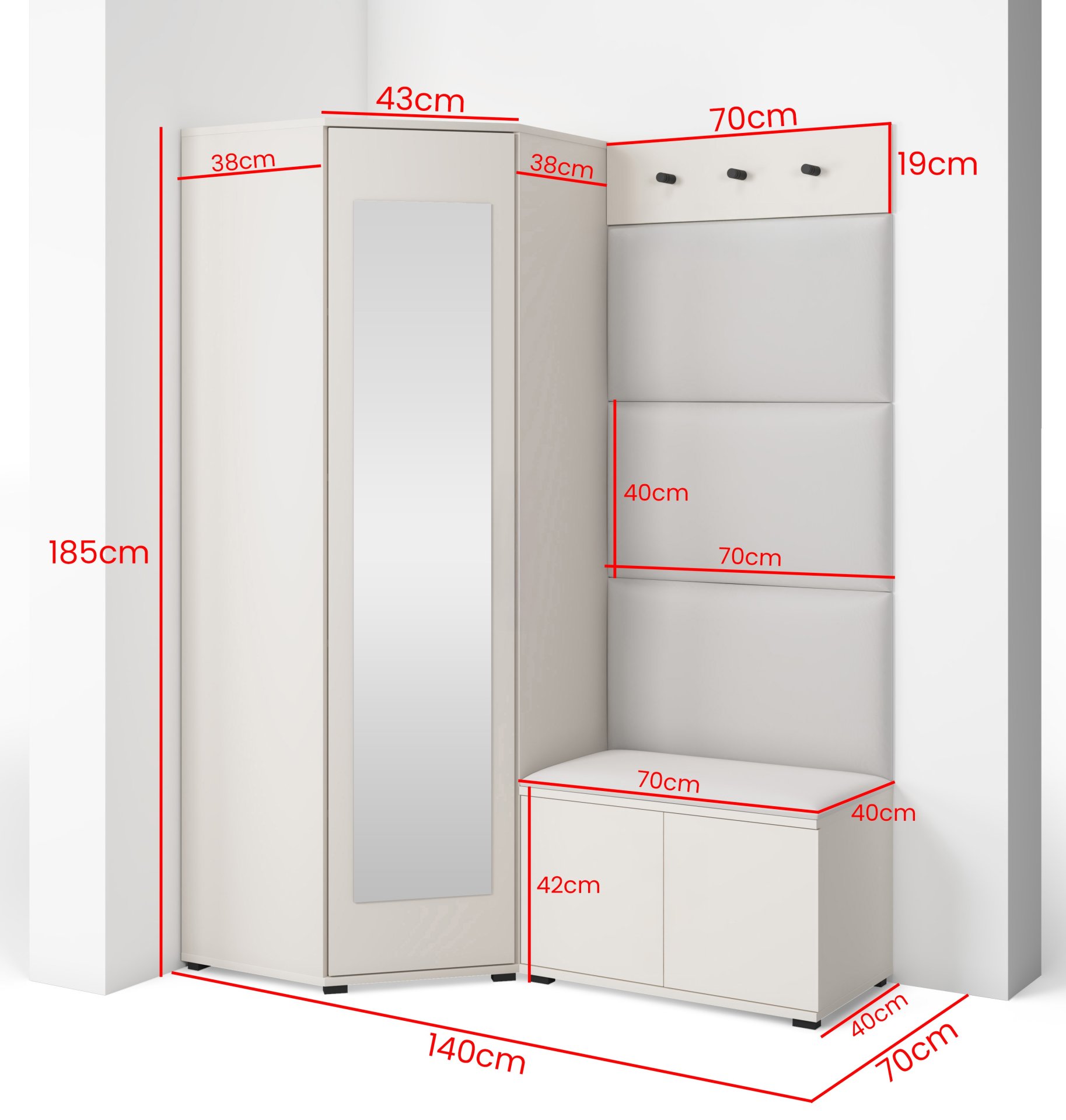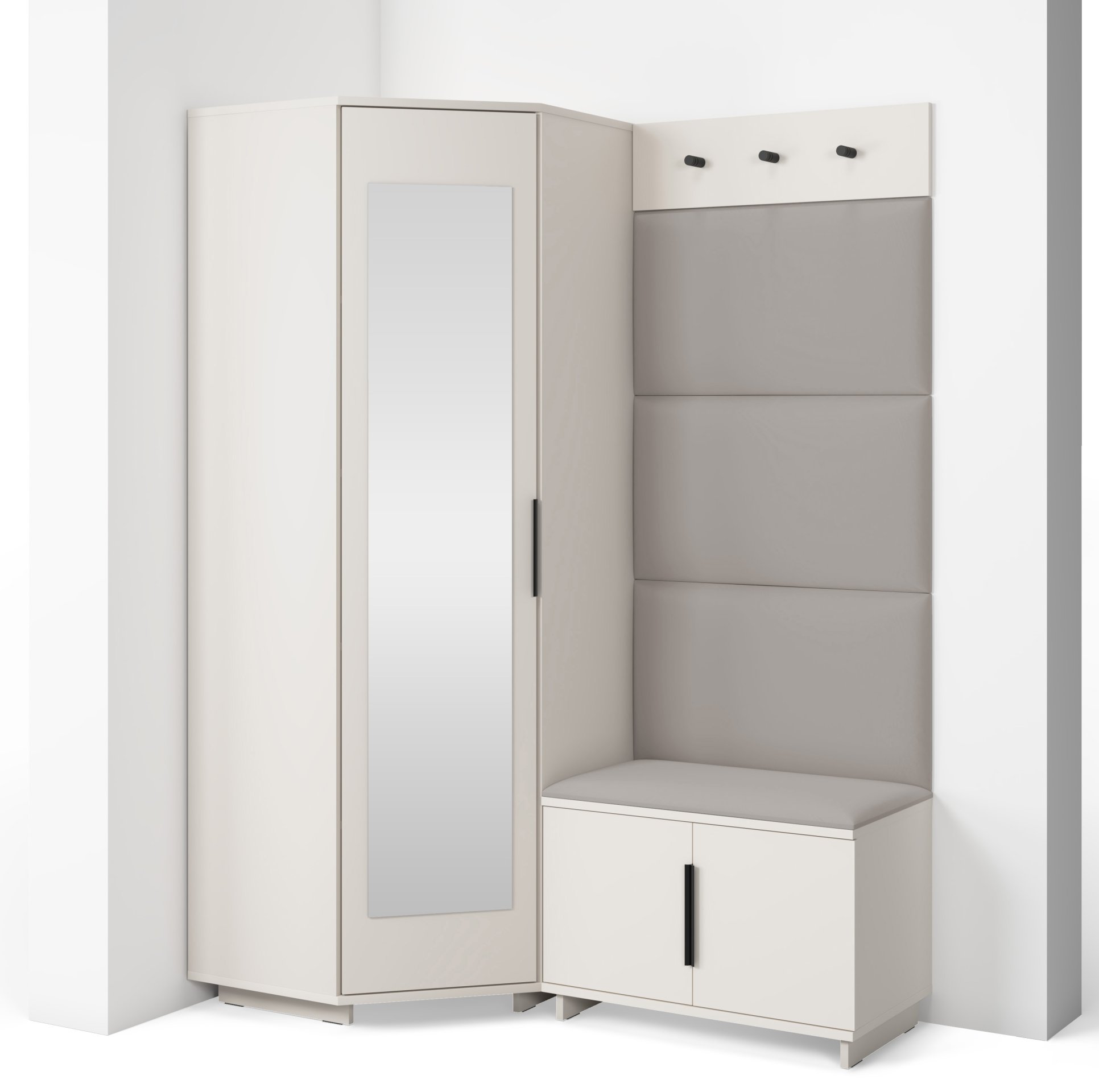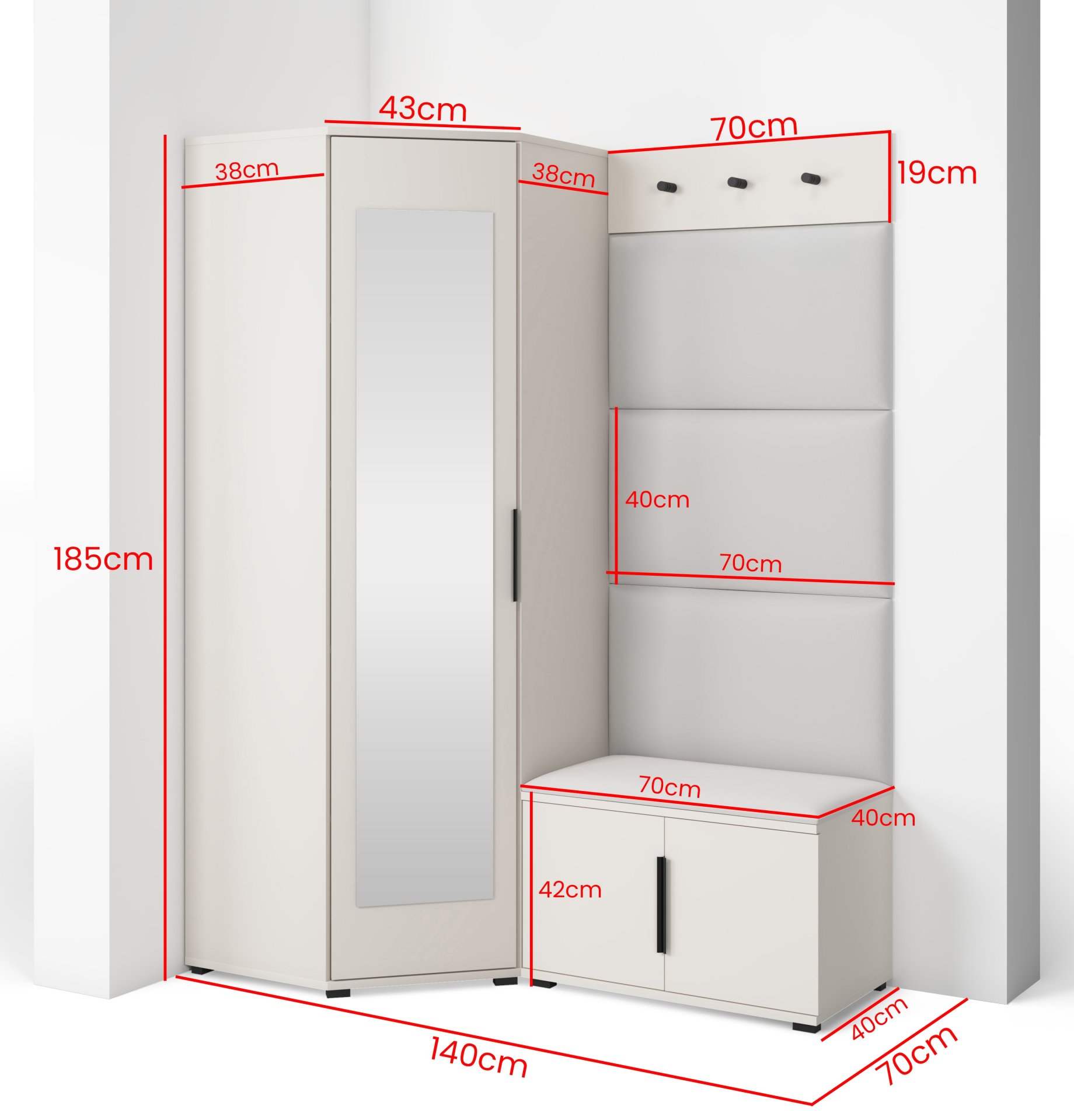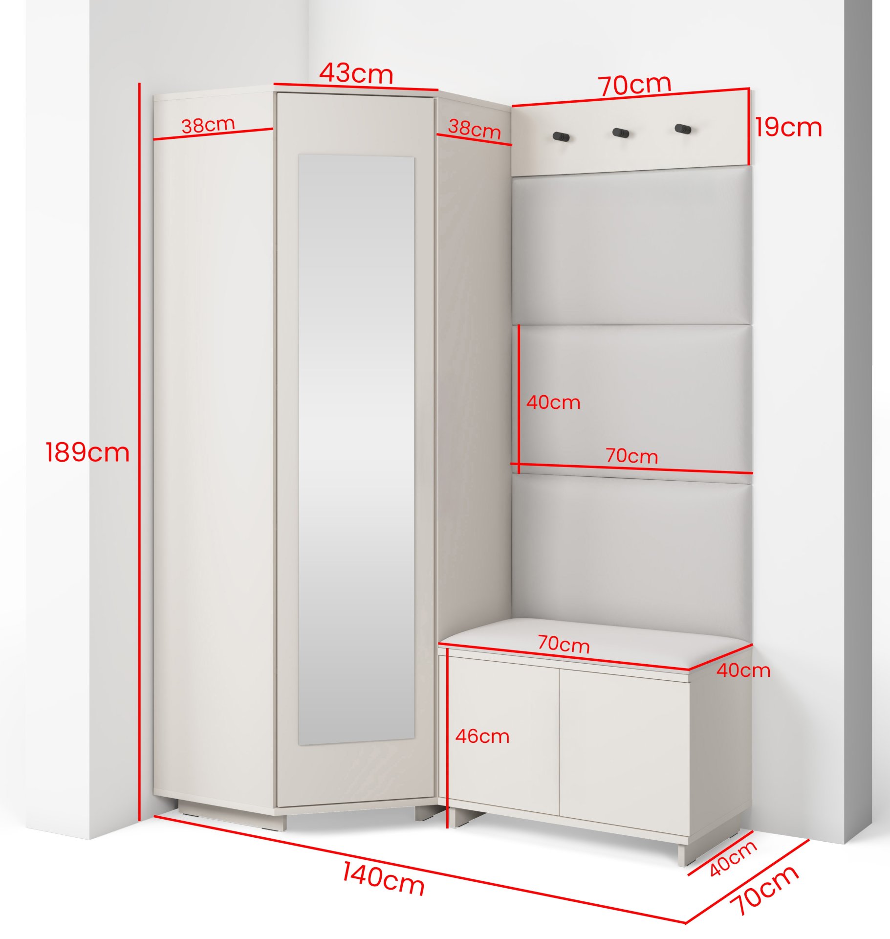 Bianco 17 nije samo estetski dodatak, već i praktičan pomoćnik u svakodnevnom životu. Kompaktan dizajn omogućuje da se komplet prilagodi i užim hodnicima, a istodobno nudi dovoljno prostora za pohranu. Ogledalo optički povećava prostor, dok tapecirani paneli stvaraju osjećaj topline i udobnosti. Sjedeći dio olakšava obuvanje cipela, a vješalice omogućuju da kaputi i torbe uvijek imaju svoje mjesto.