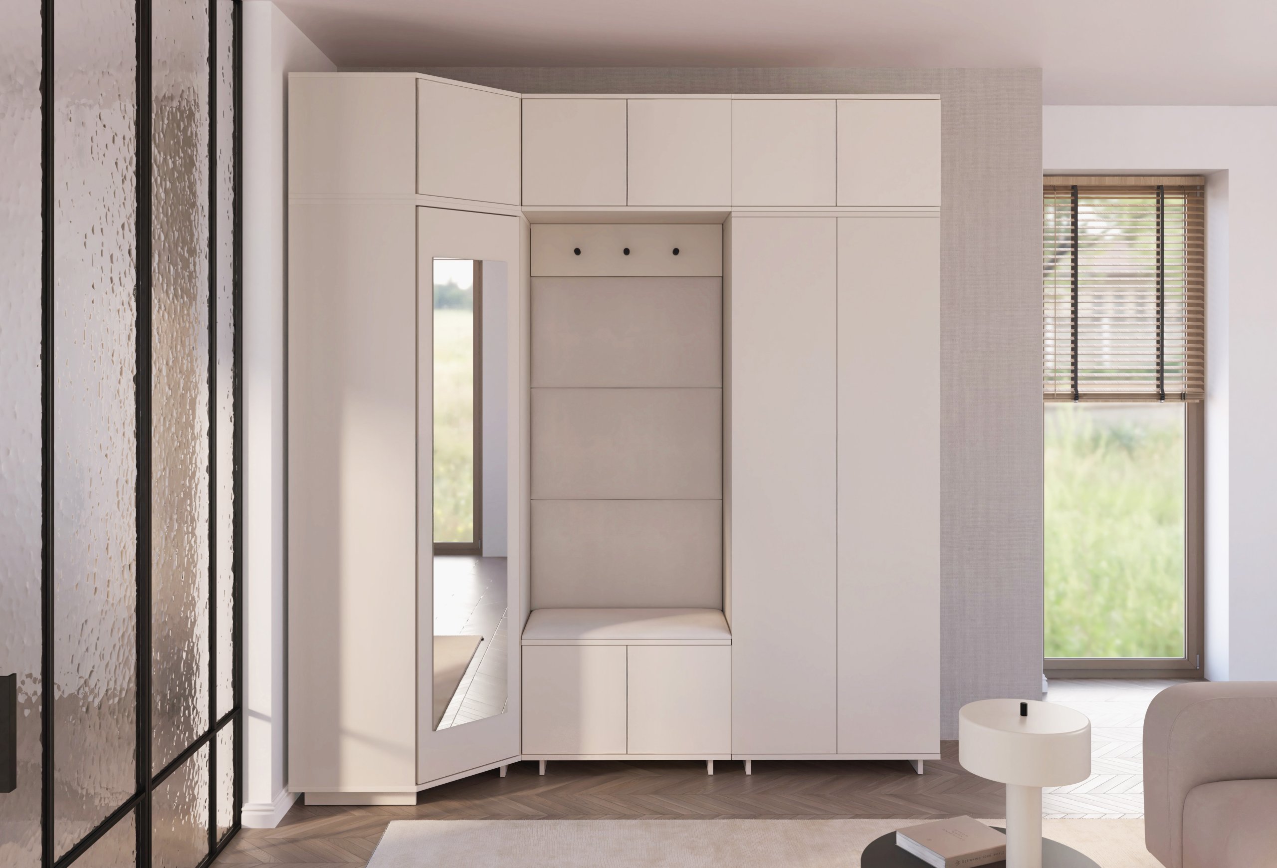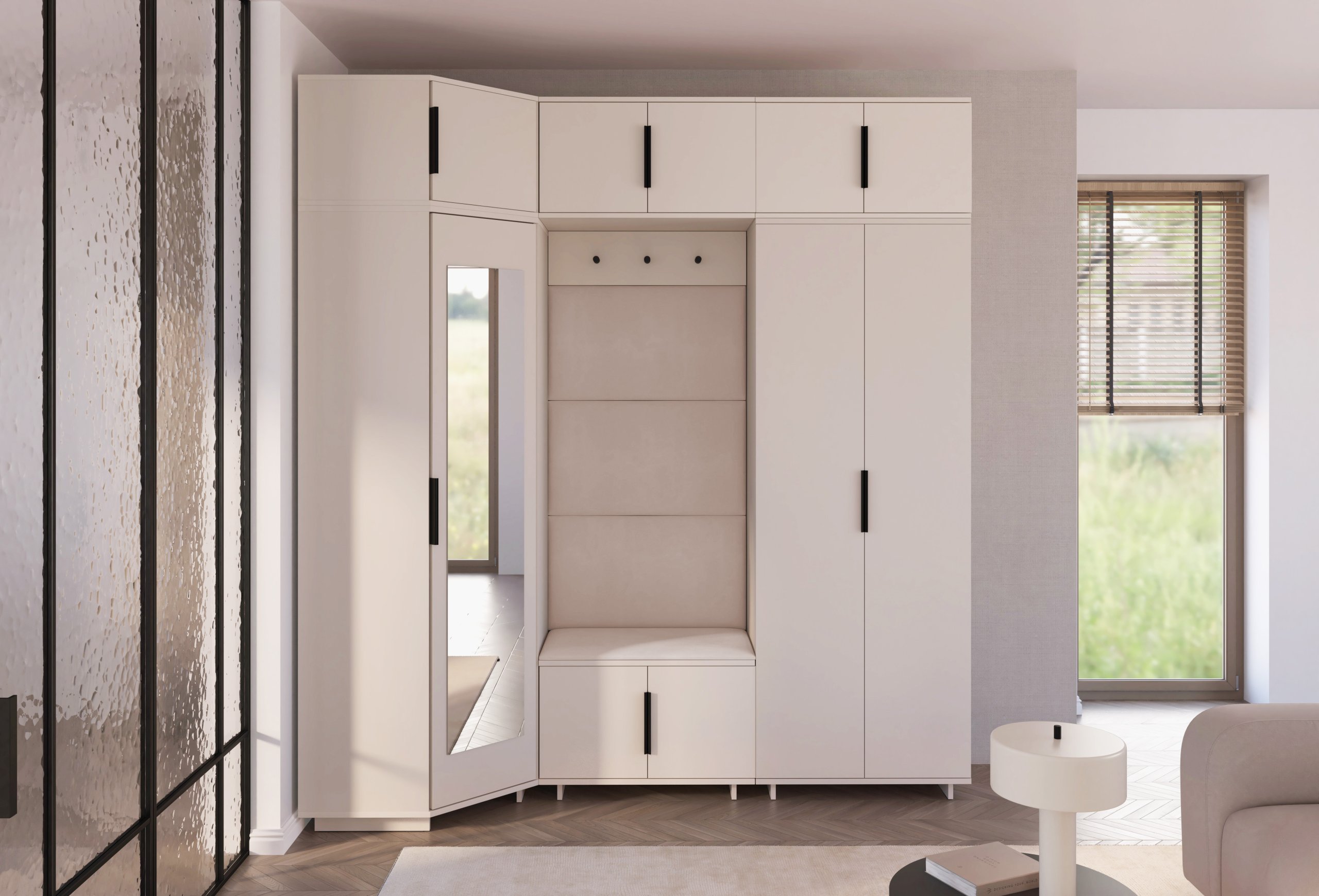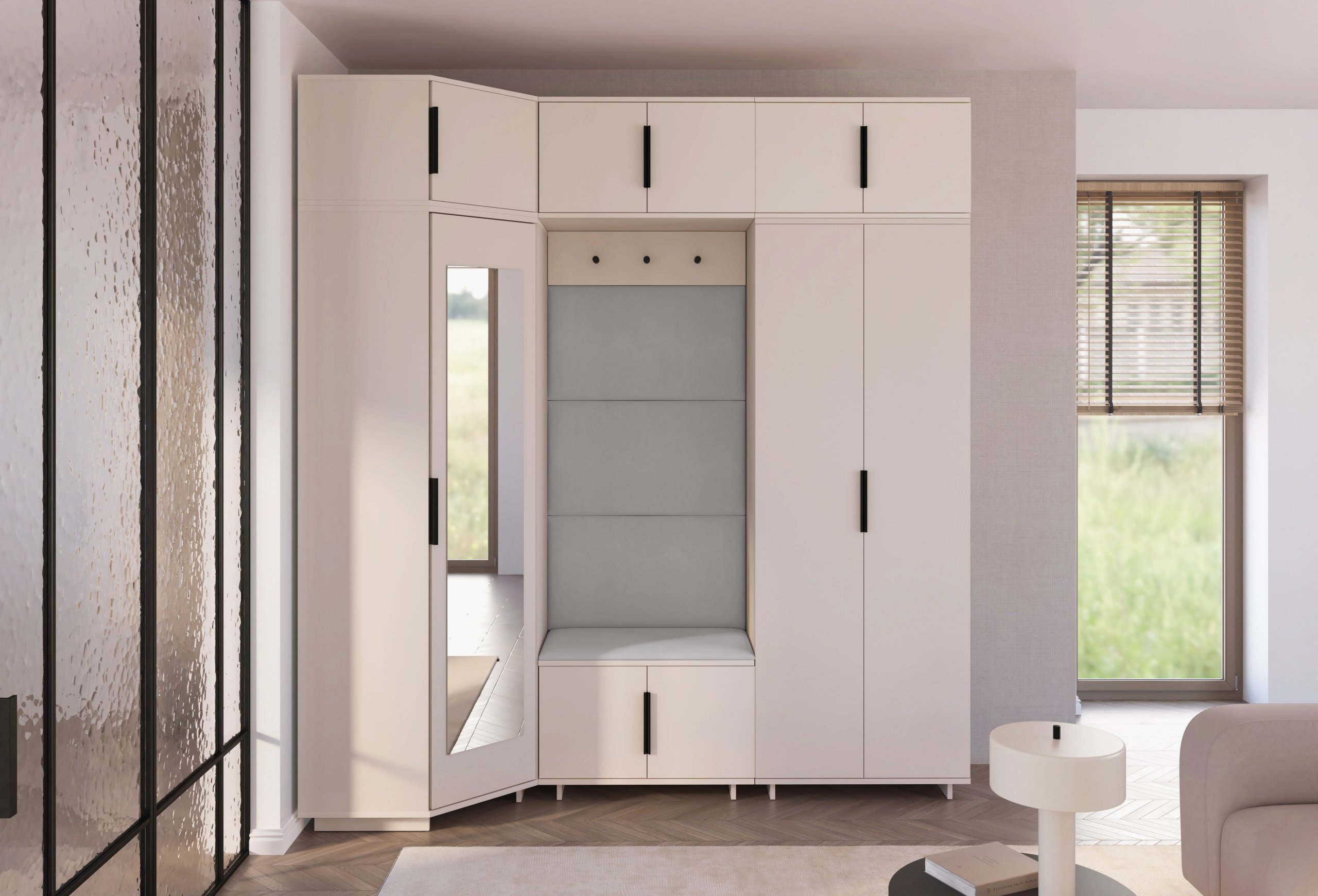 Kašmir boja i moderan sustav otvaranja: komplet za hodnik Bianco 20 – PKMebel.
