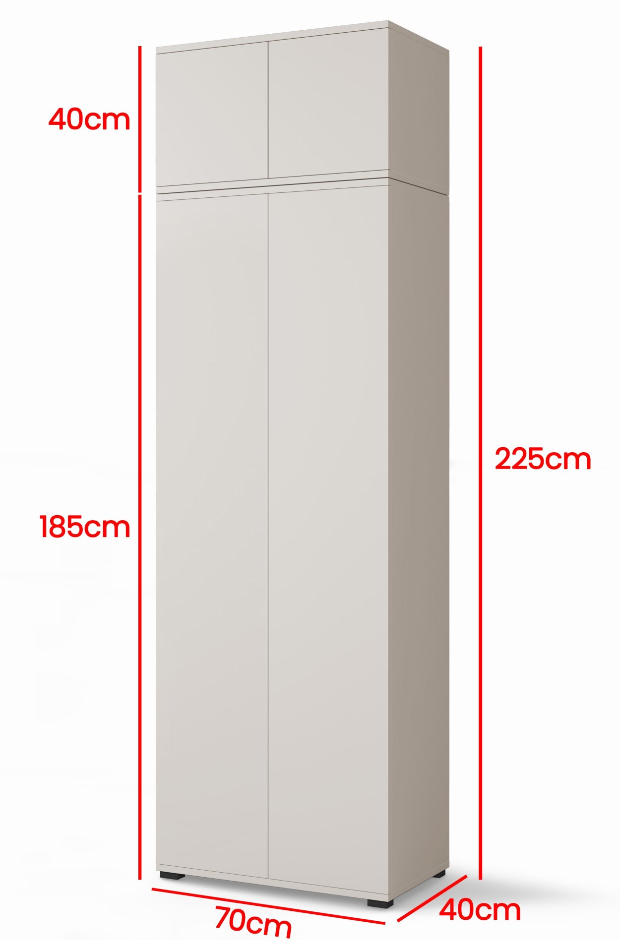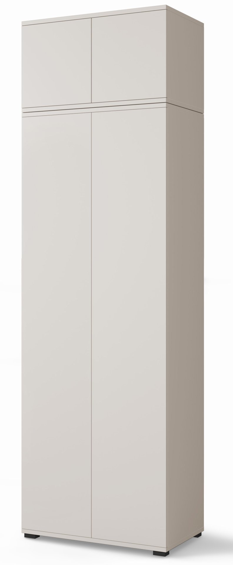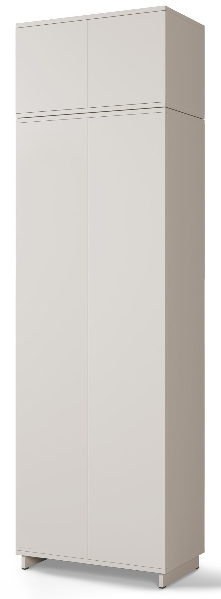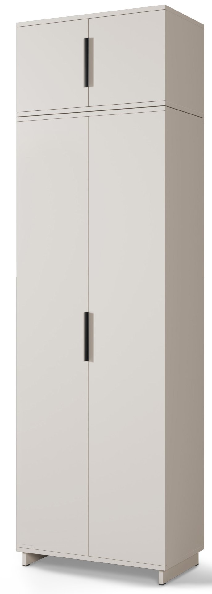 Komplet je izrađen u tvornici PKMebel u Poljskoj, poznatoj po kvalitetnoj obradi drvenih ploča i preciznoj završnoj obradi površina. Površina u boji kašmira djeluje smireno i moderno, pa se lijepo uklapa s svijetlim ili kontrastnim namještajem. Minimalistički izgled nadopunjuje sustav push to open, koji omogućuje otvaranje vrata bez klasičnih ručki, ili se možete odlučiti za upotrebu elegantnih crnih metalnih ručki uključenih u komplet. Takva prilagodljivost omogućuje da namještaj uskladite s različitim unutarnjim stilovima – od modernog do skandinavskog.