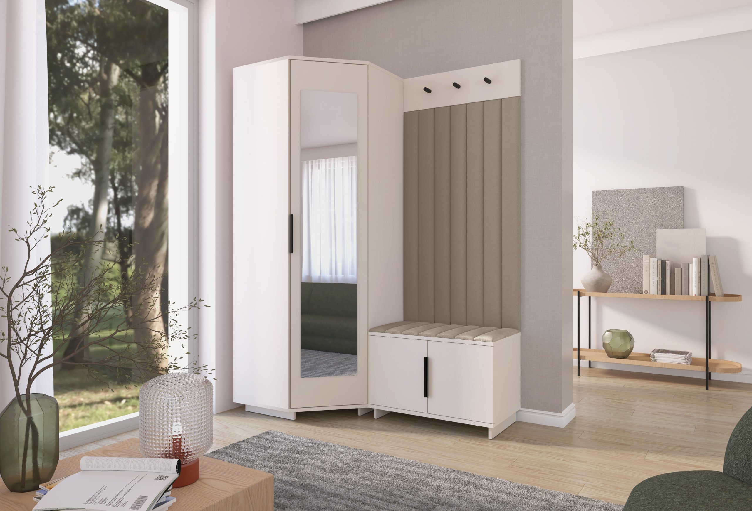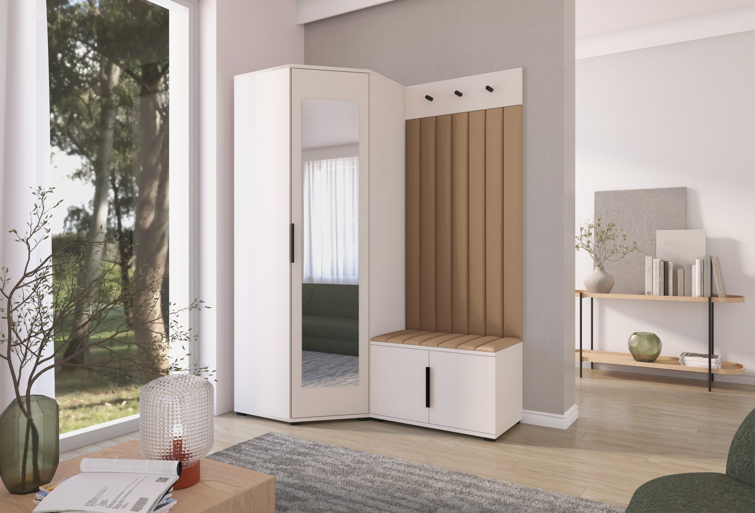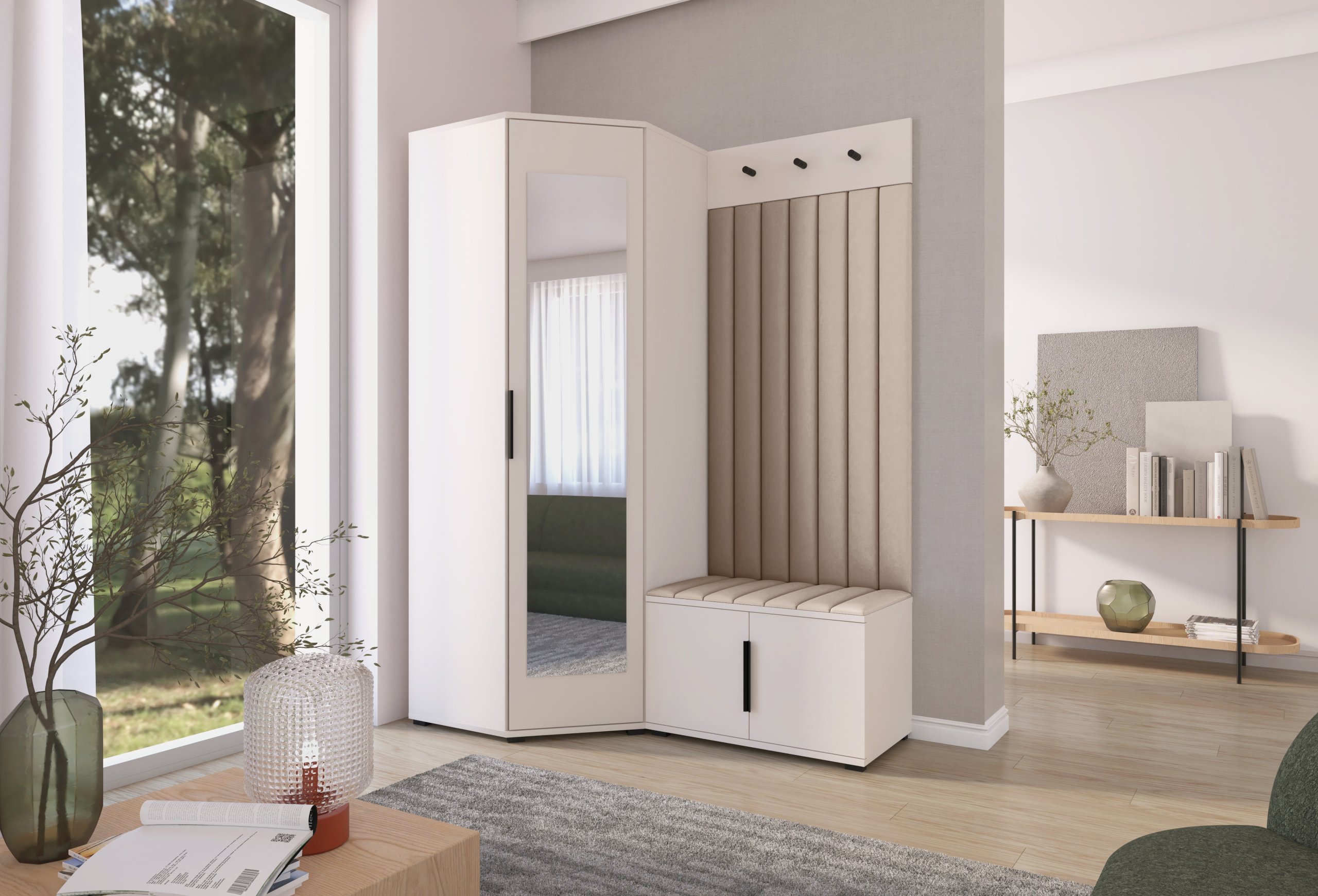 Elegantna funkcionalnost u toplim tonovima kašmira: Set za hodnik Bianco 21 – PKMebel.
