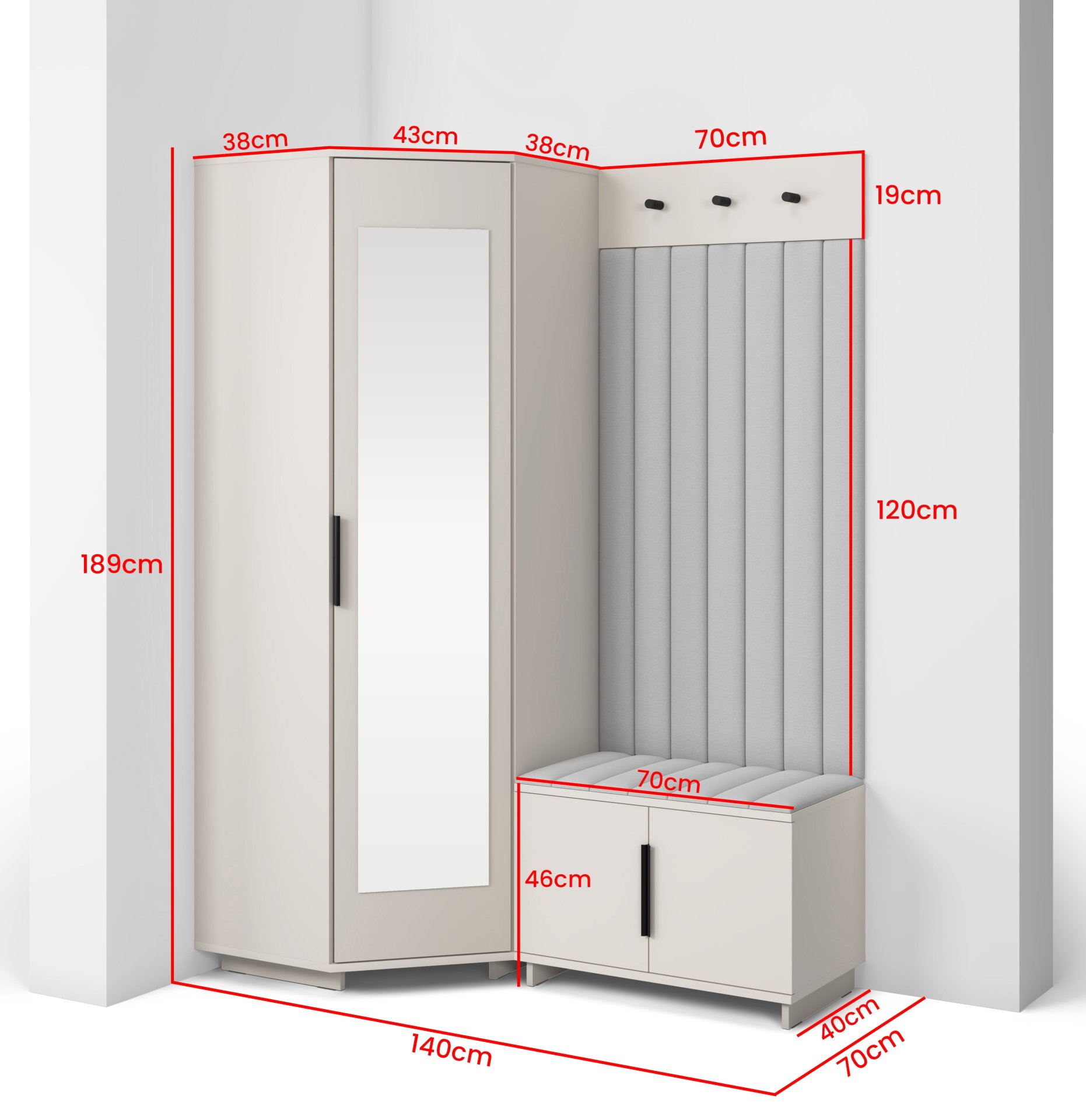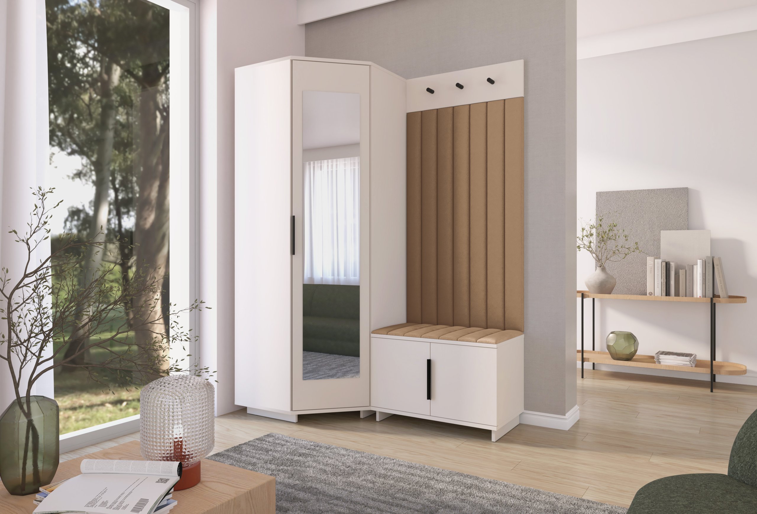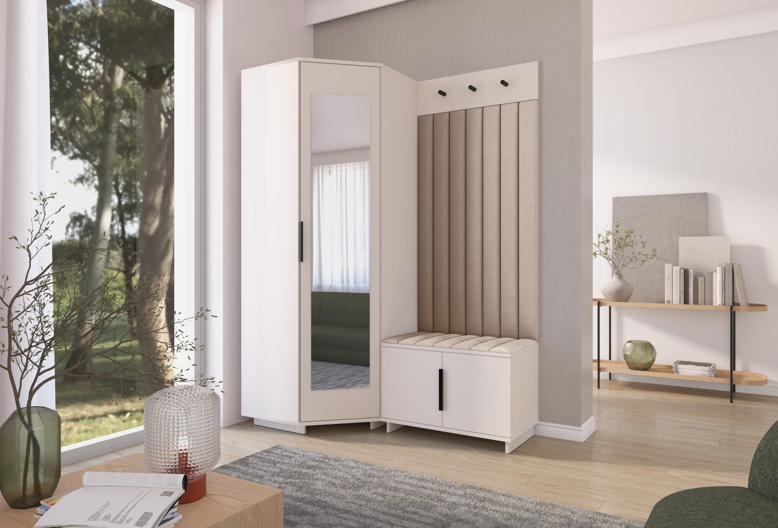 Elegantna funkcionalnost u toplim tonovima kašmira: Set za hodnik Bianco 21 – PKMebel.