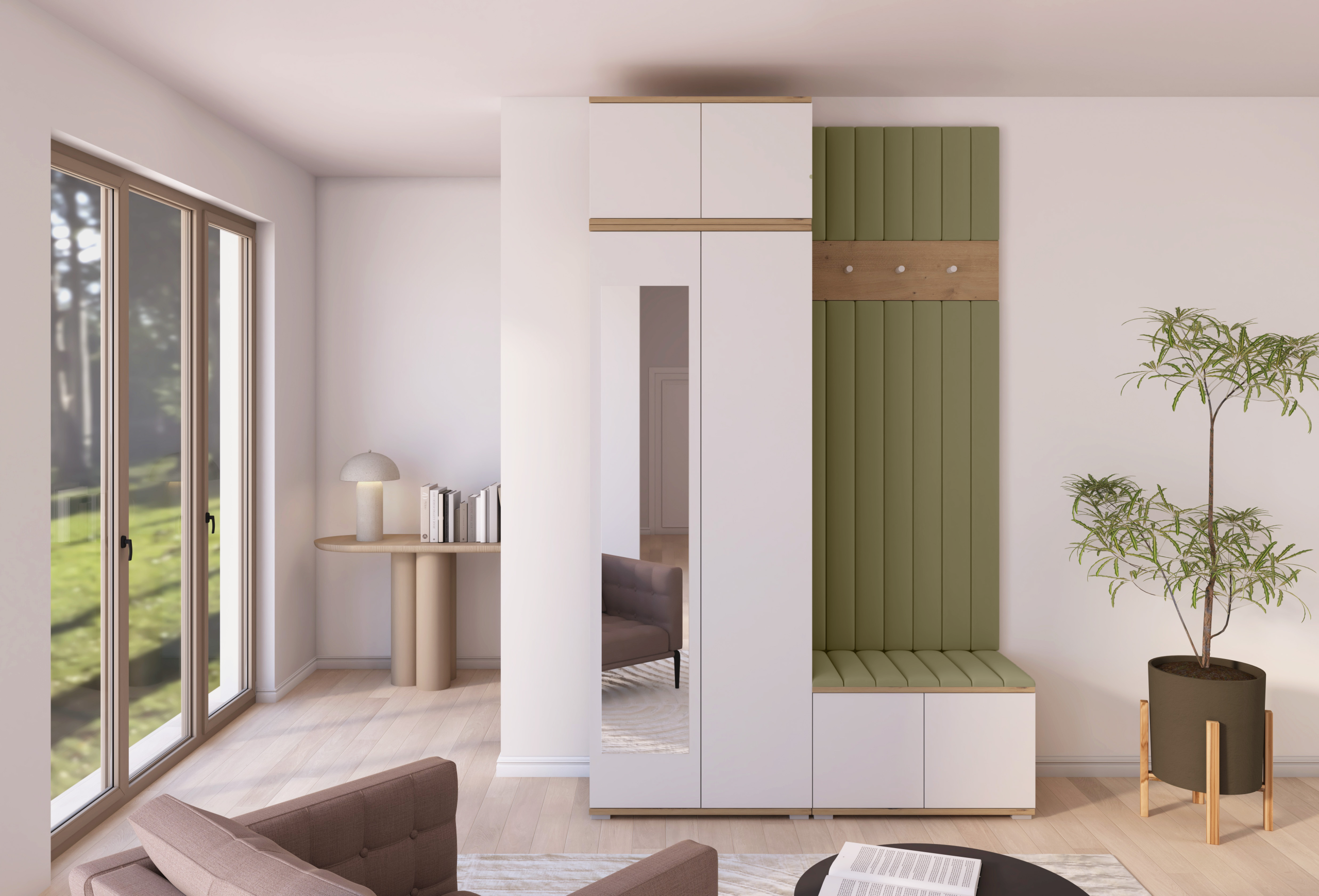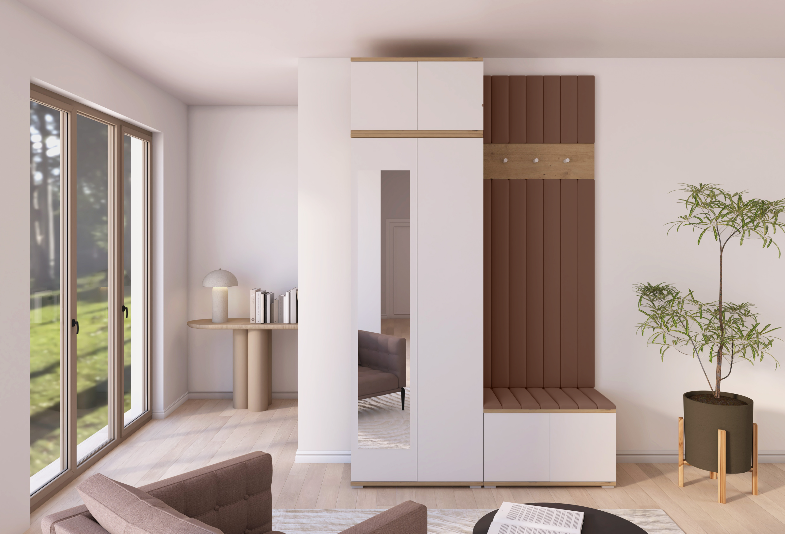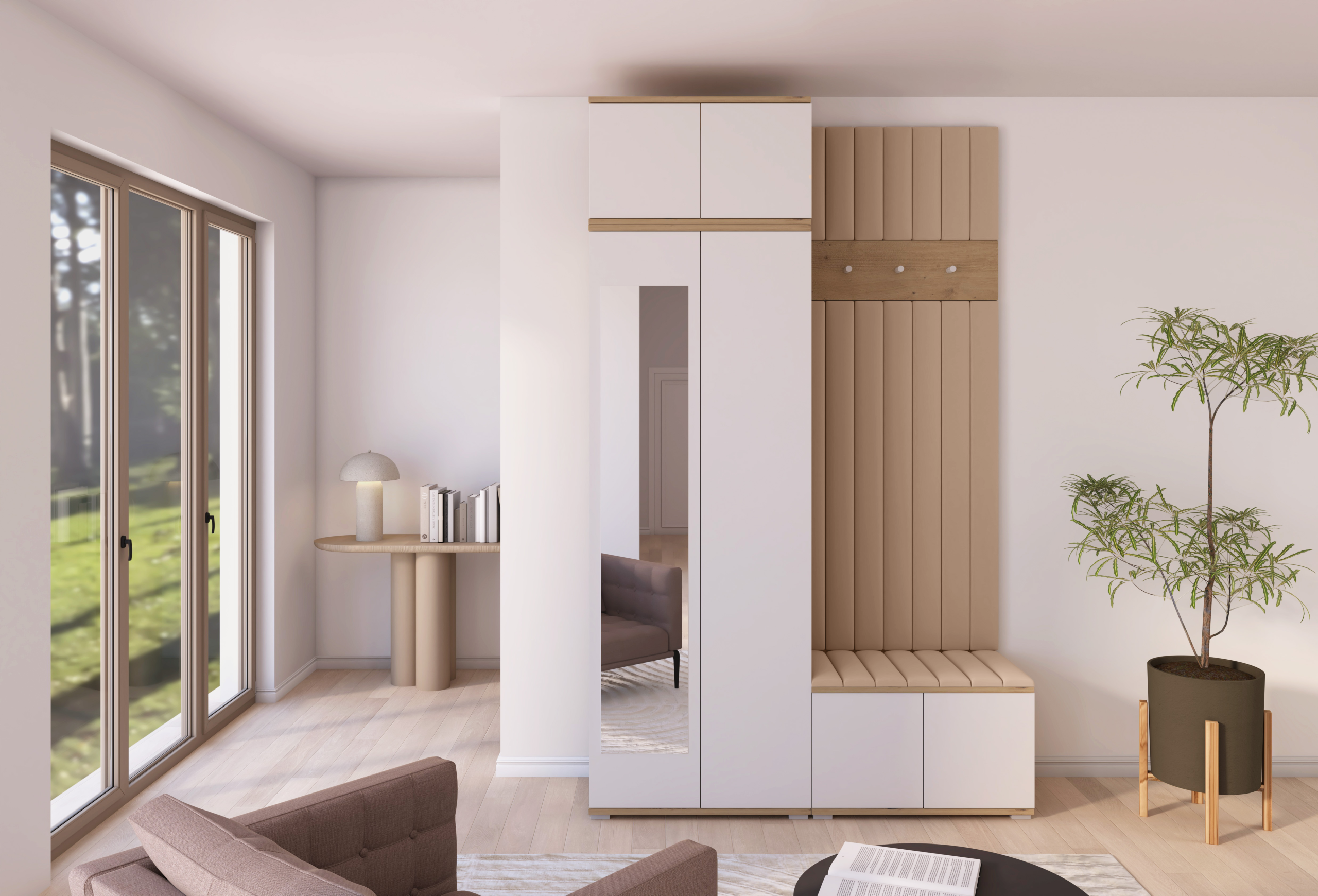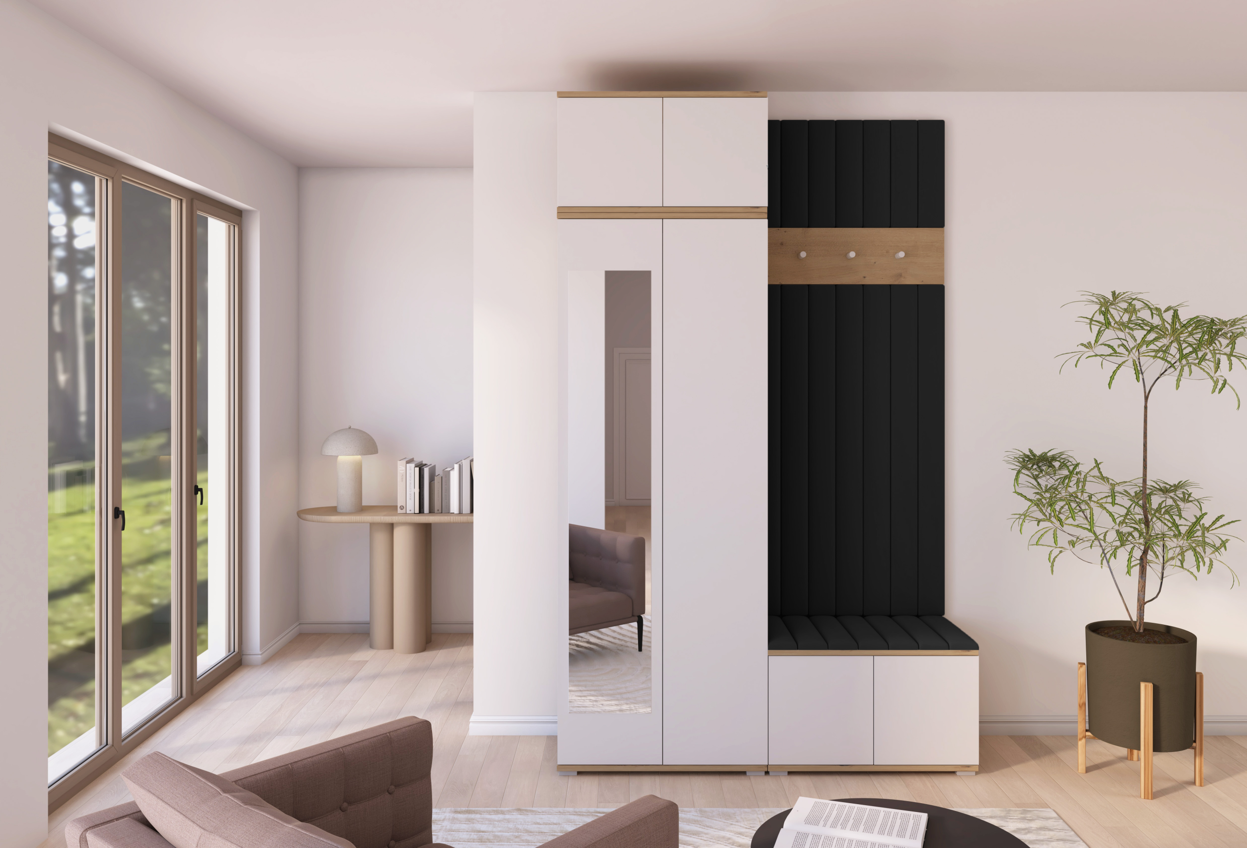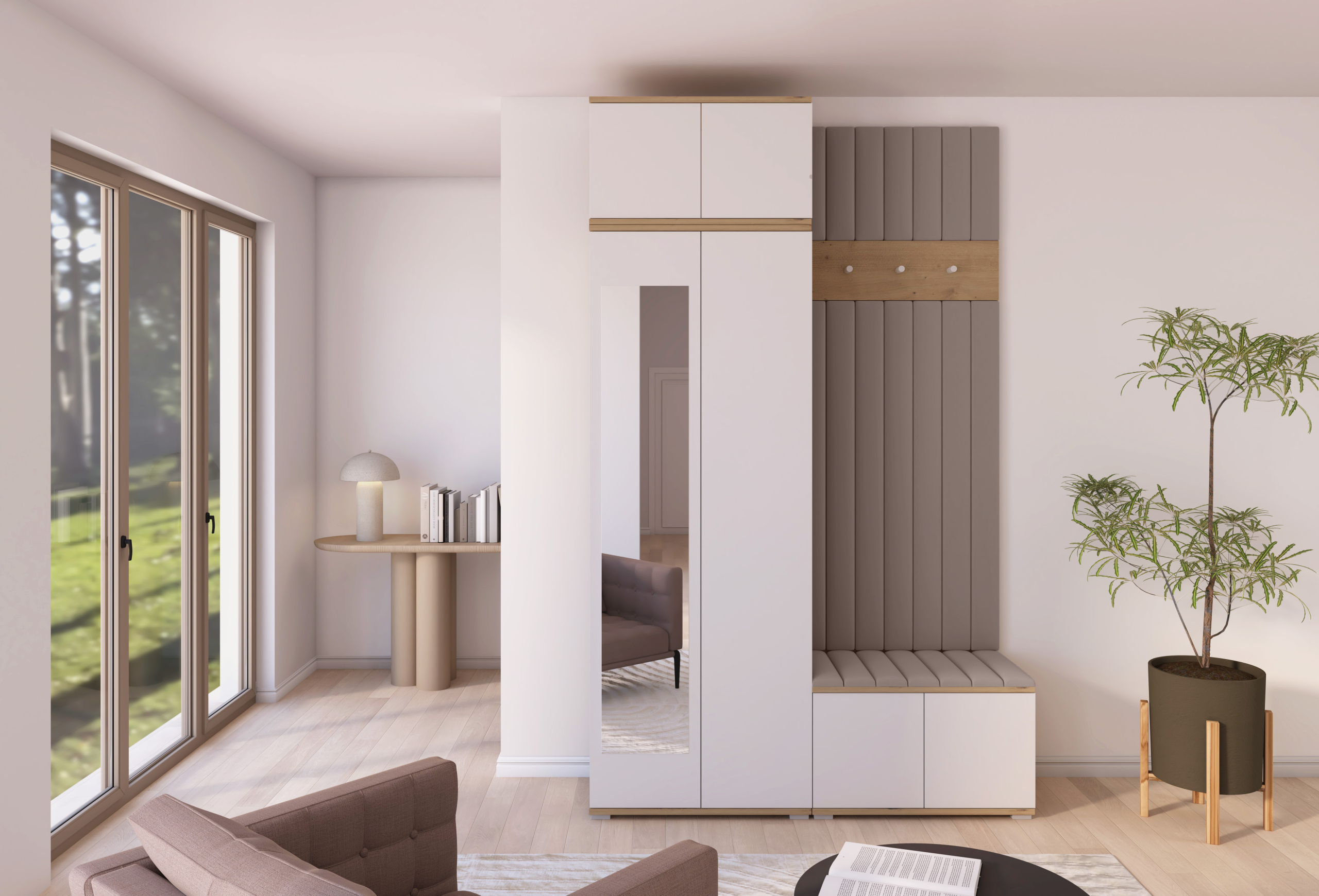 Drvo i bijela elegancija: komplet za hodnik Sevilla 8 – PKMebel.