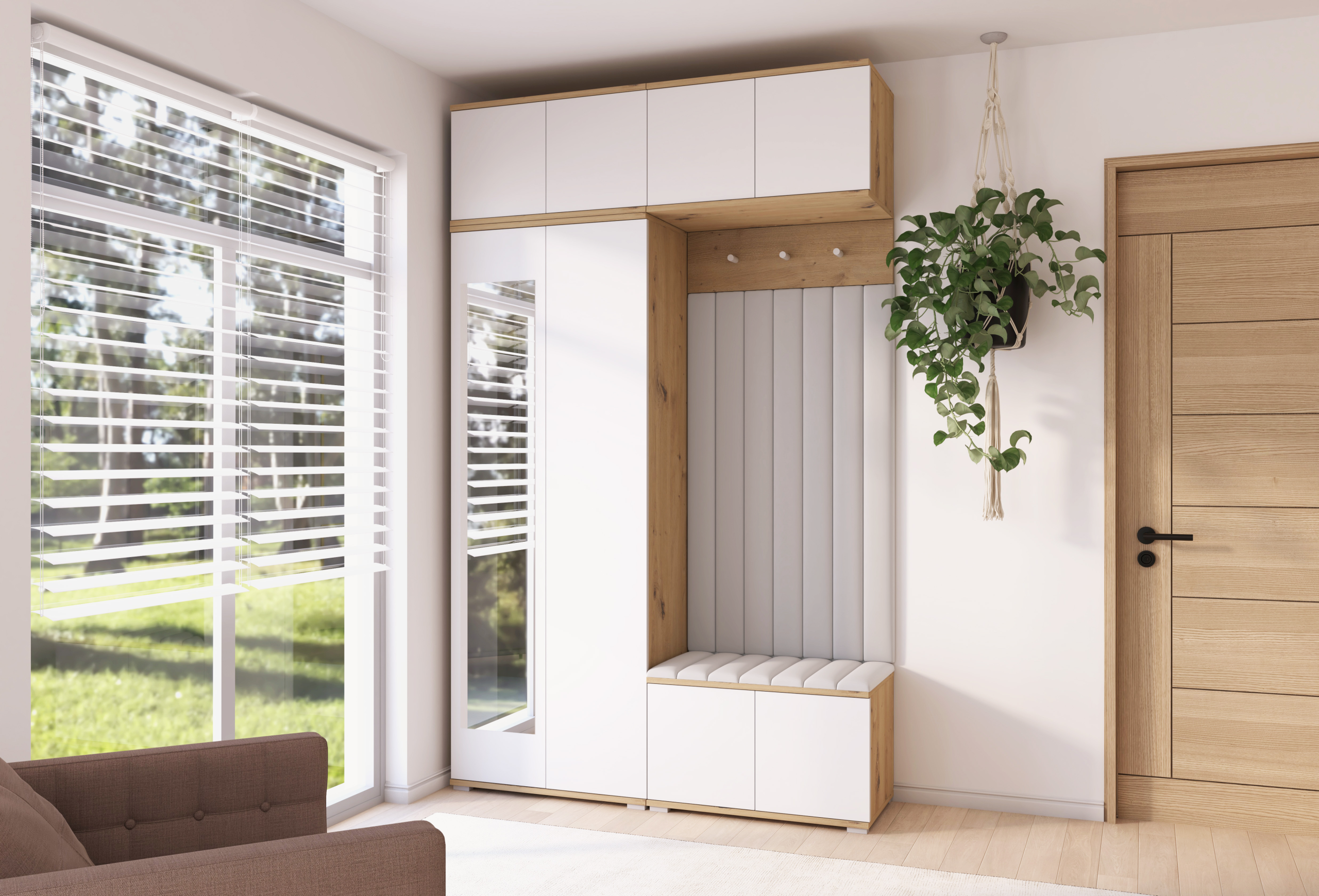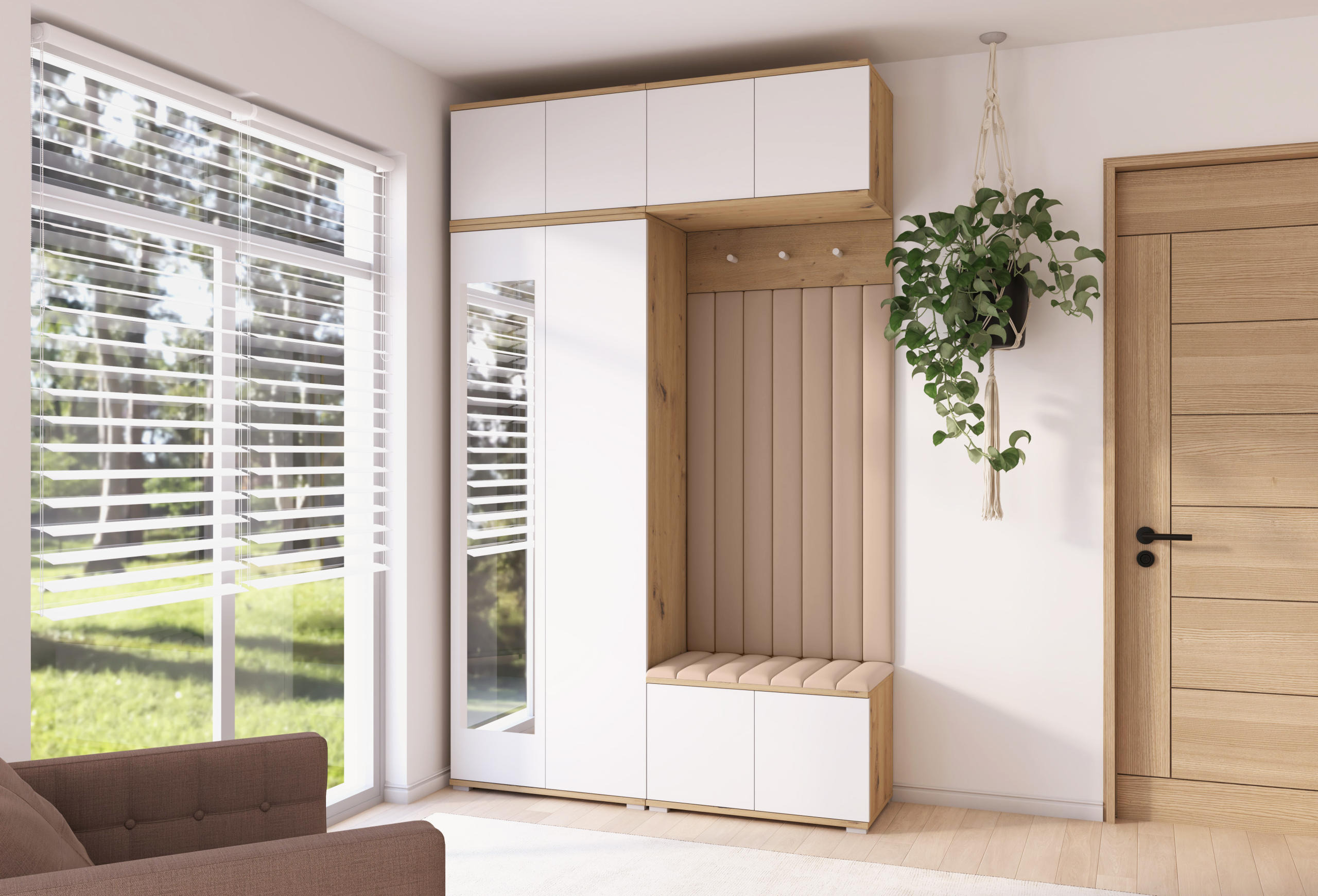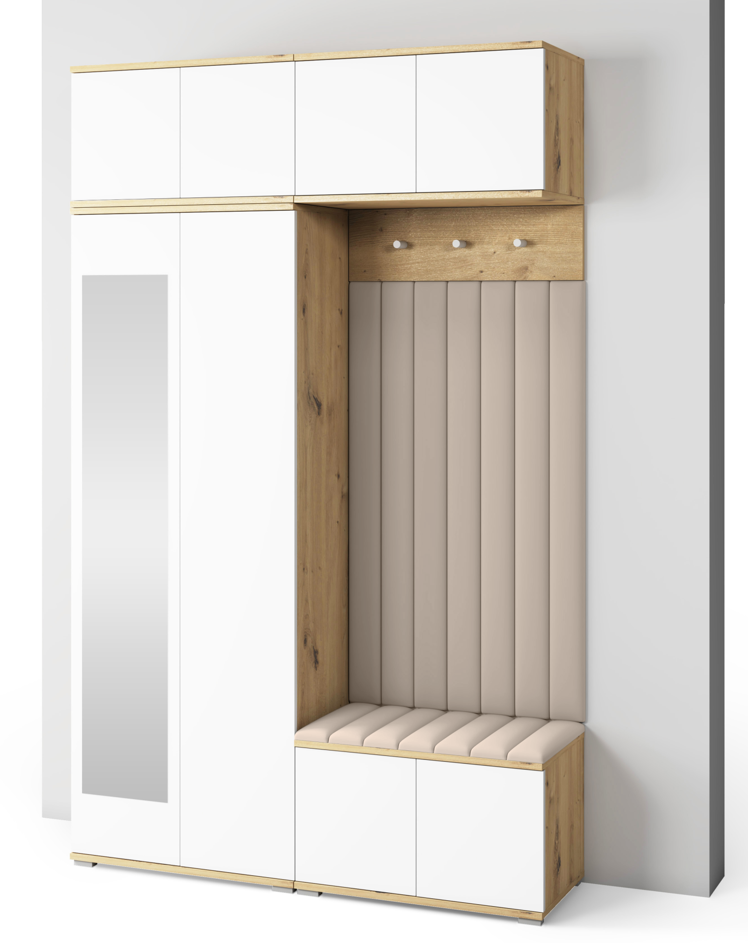 Elegantna kombinacija hrasta artisan i bijele boje: komplet za hodnik Sevilla 9 – PKMebel.