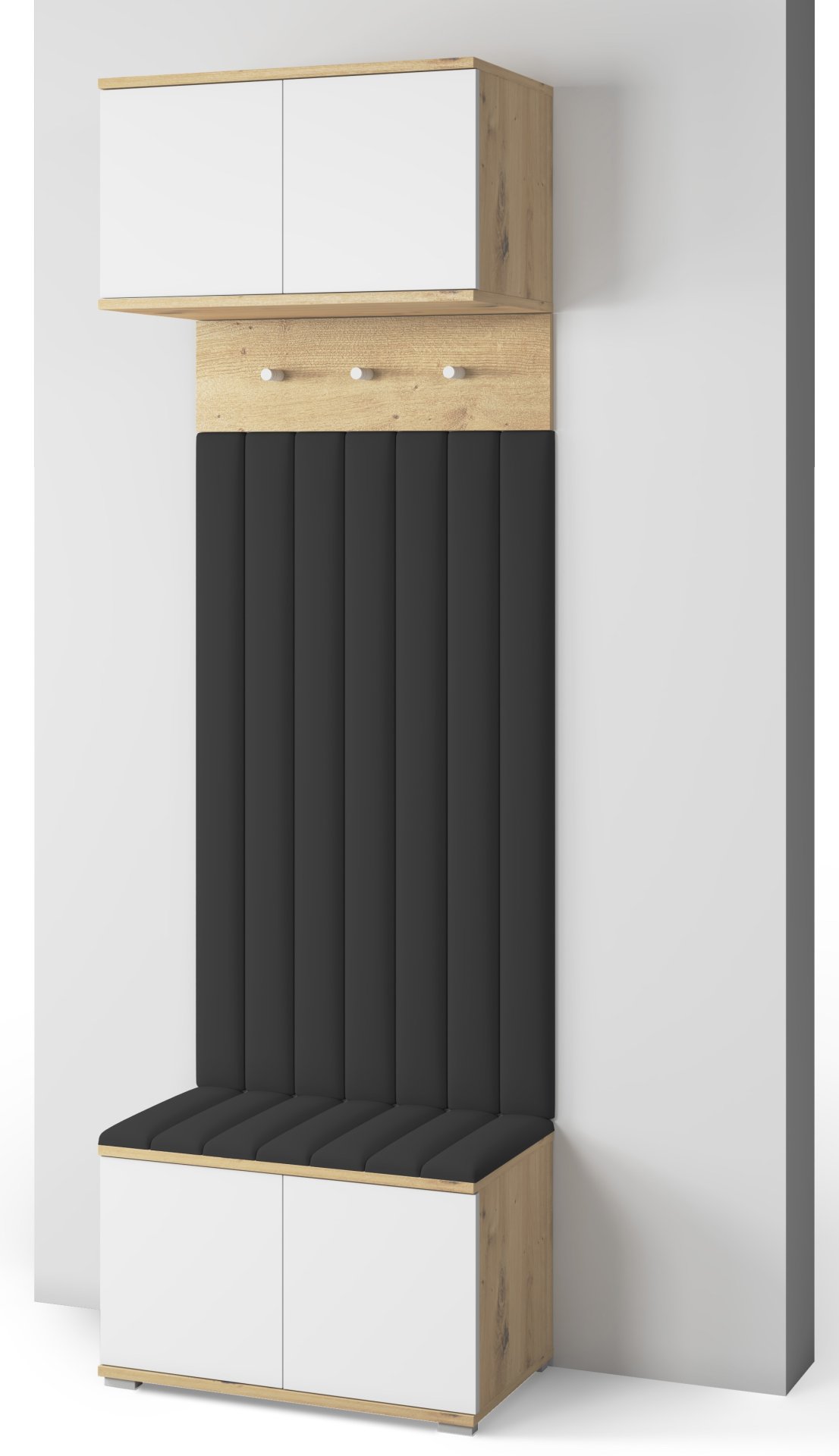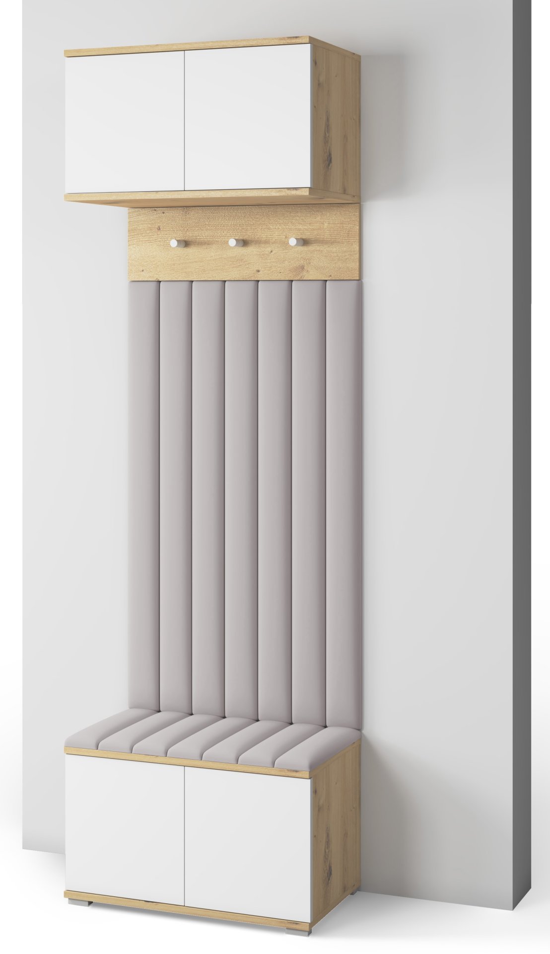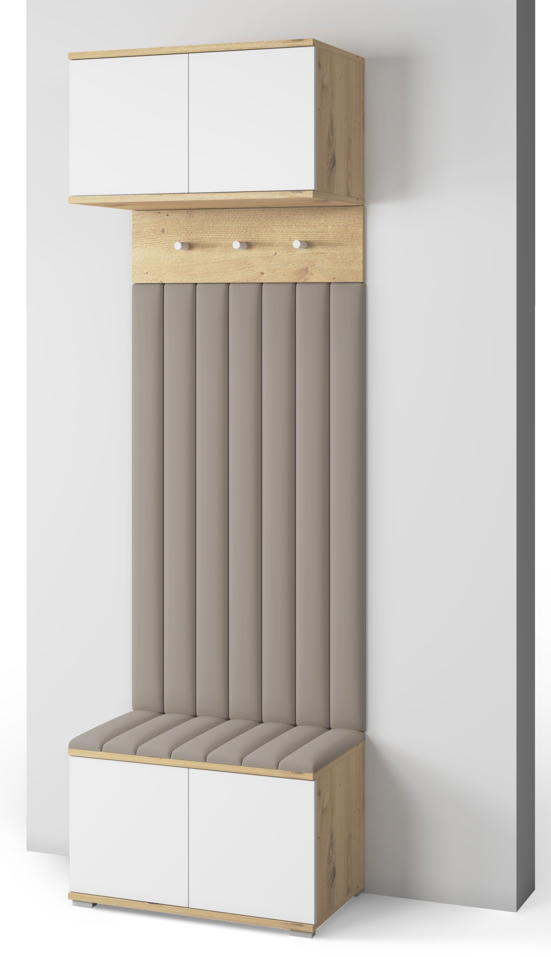 Komplet za hodnik Sevilla 11 marke PKMebel spaja suvremenu estetiku, funkcionalnost i pažljivu izradu, karakterističnu za poljsku tradiciju namještaja. Svojom kombinacijom boja hrasta artisan i bijele površine stvara svijetao, topao i uredan izgled predsoblja. Dimenzije 70x40x225 cm omogućuju optimalno iskorištavanje prostora, stoga je komplet prikladan i za manje i za veće hodnike.