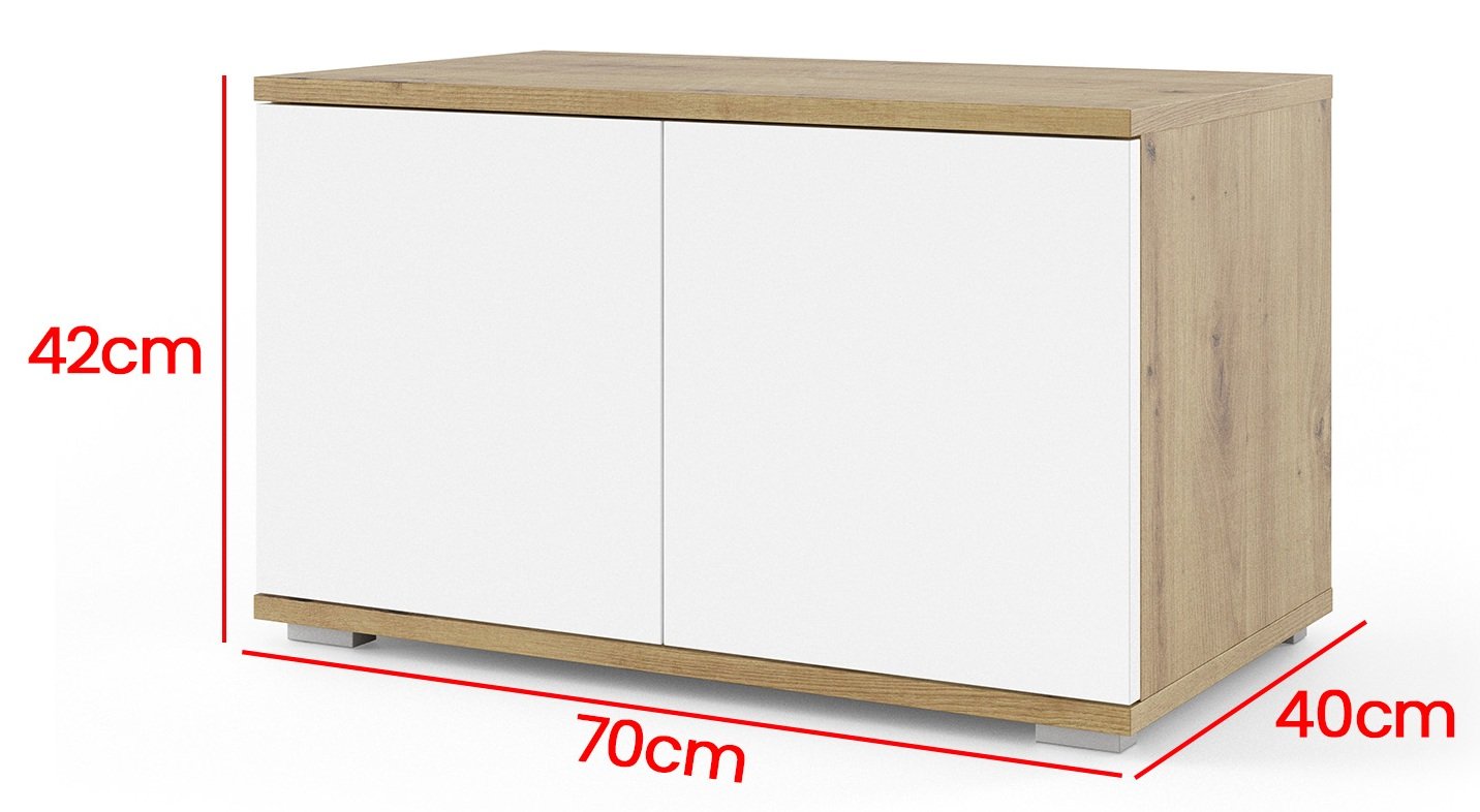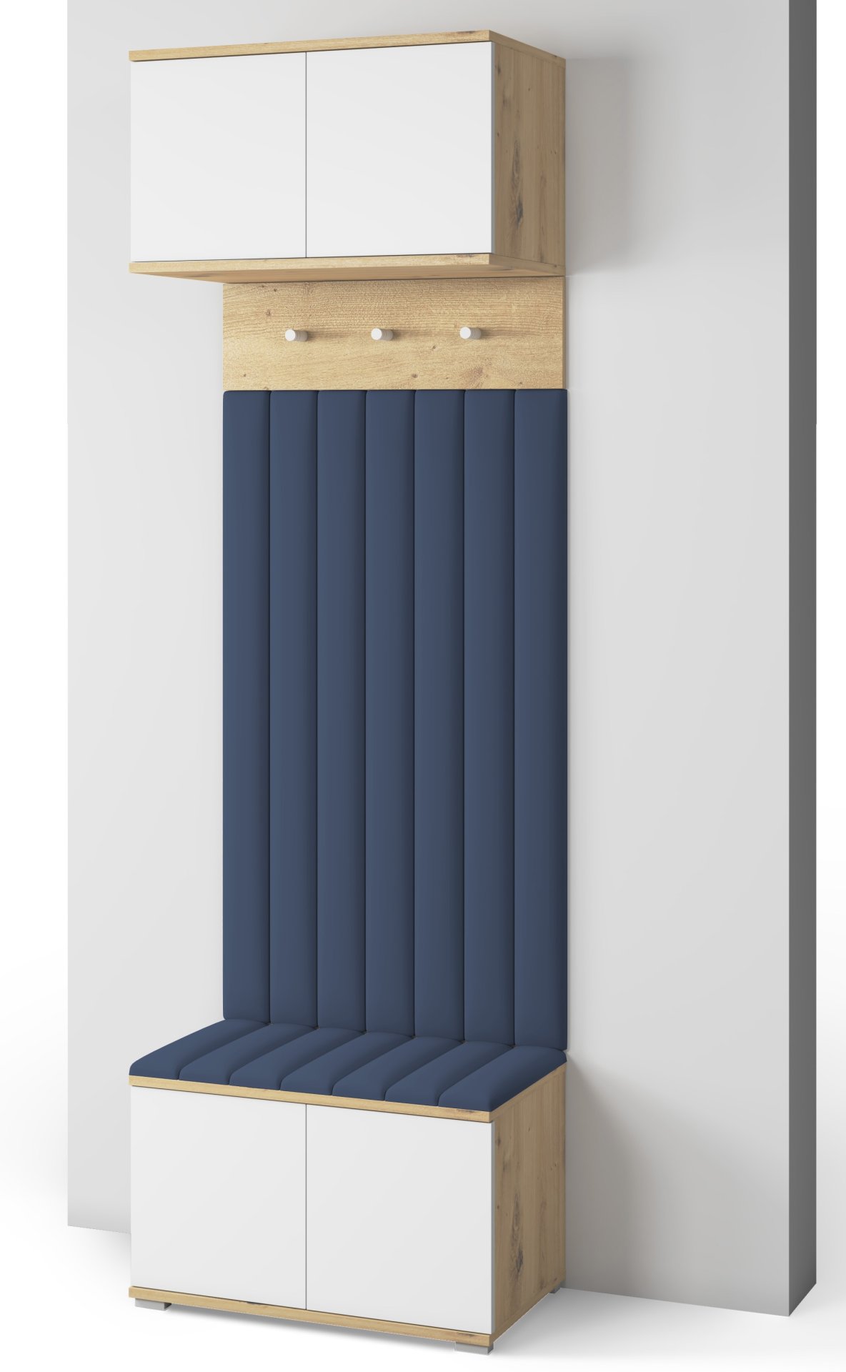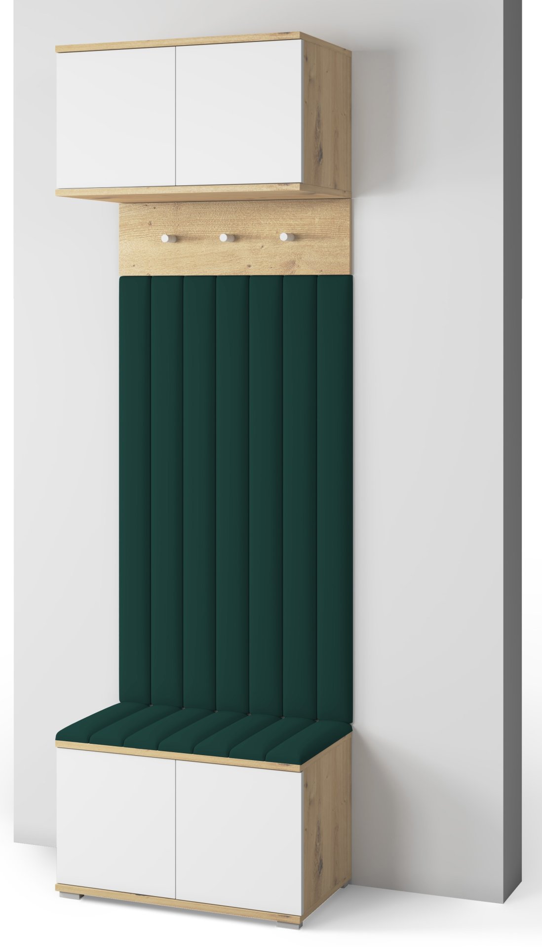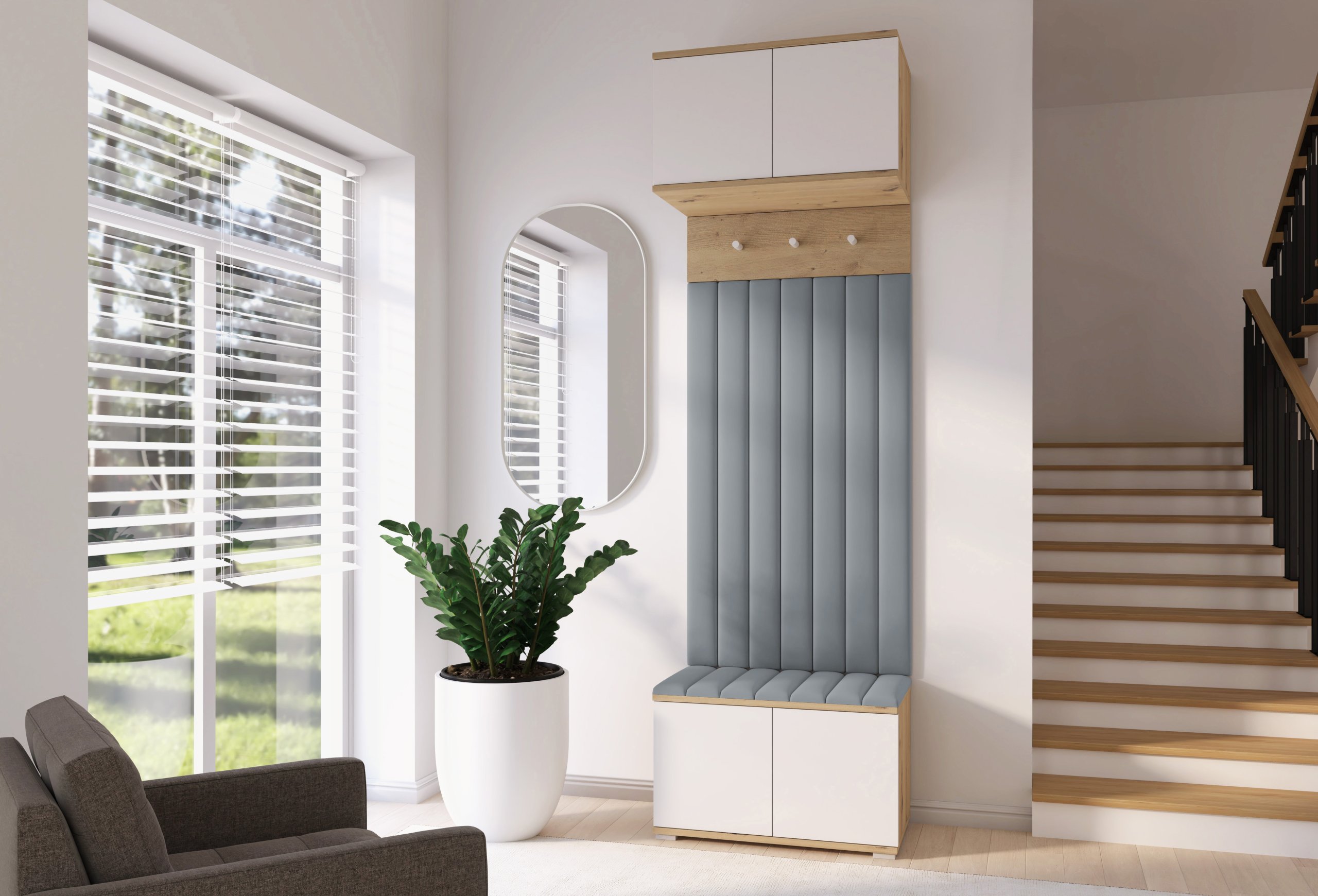 Komplet za hodnik Sevilla 11 marke PKMebel spaja suvremenu estetiku, funkcionalnost i pažljivu izradu, karakterističnu za poljsku tradiciju namještaja. Svojom kombinacijom boja hrasta artisan i bijele površine stvara svijetao, topao i uredan izgled predsoblja. Dimenzije 70x40x225 cm omogućuju optimalno iskorištavanje prostora, stoga je komplet prikladan i za manje i za veće hodnike.