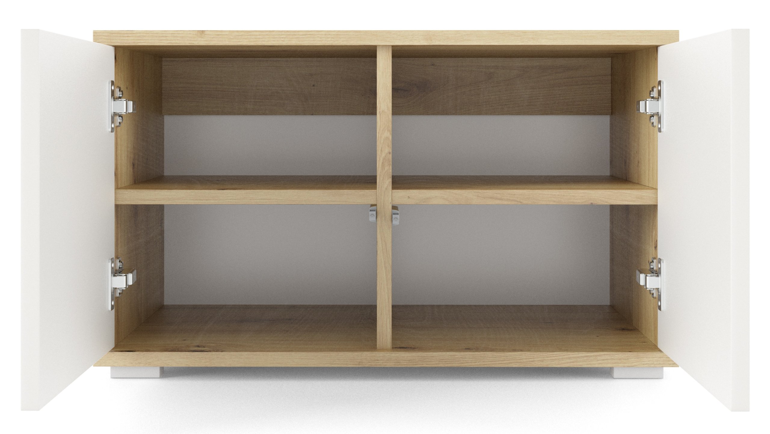 Korpus u boji hrasta artisan daje namještaju prirodan izgled, koji se lijepo slaže s bijelom bojom fronti. Taj kontrast donosi osjećaj svježine i reda, prikladan za svaki suvremeni ili klasični interijer. Površine su izrađene s mišlju na jednostavno održavanje – otporne su na svakodnevnu uporabu, a pritom zadržavaju estetski izgled i nakon duljeg vremena.