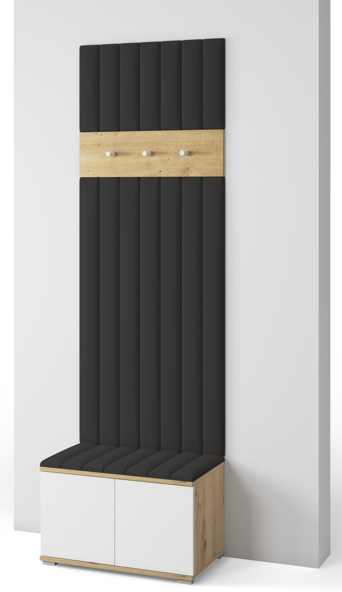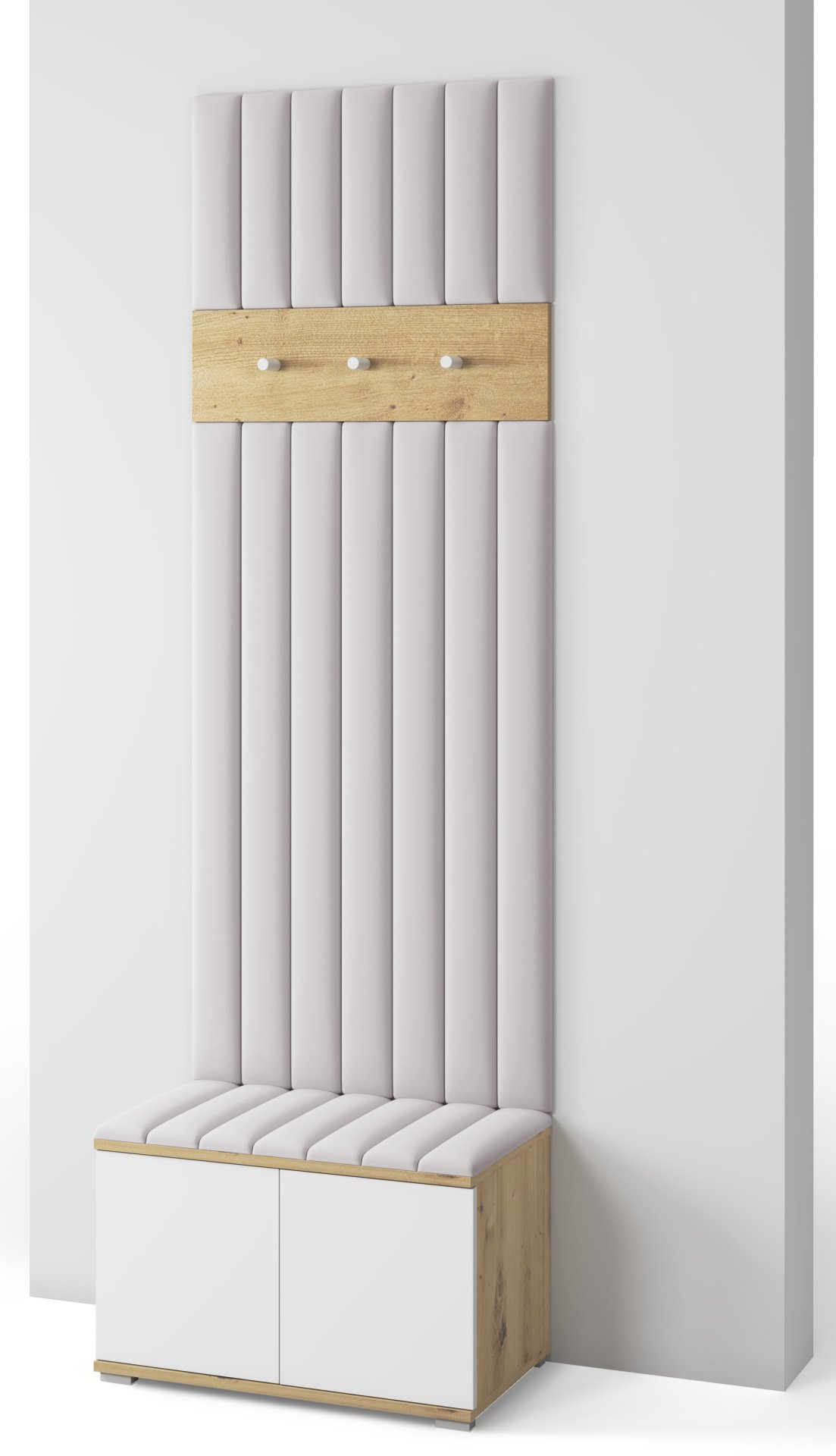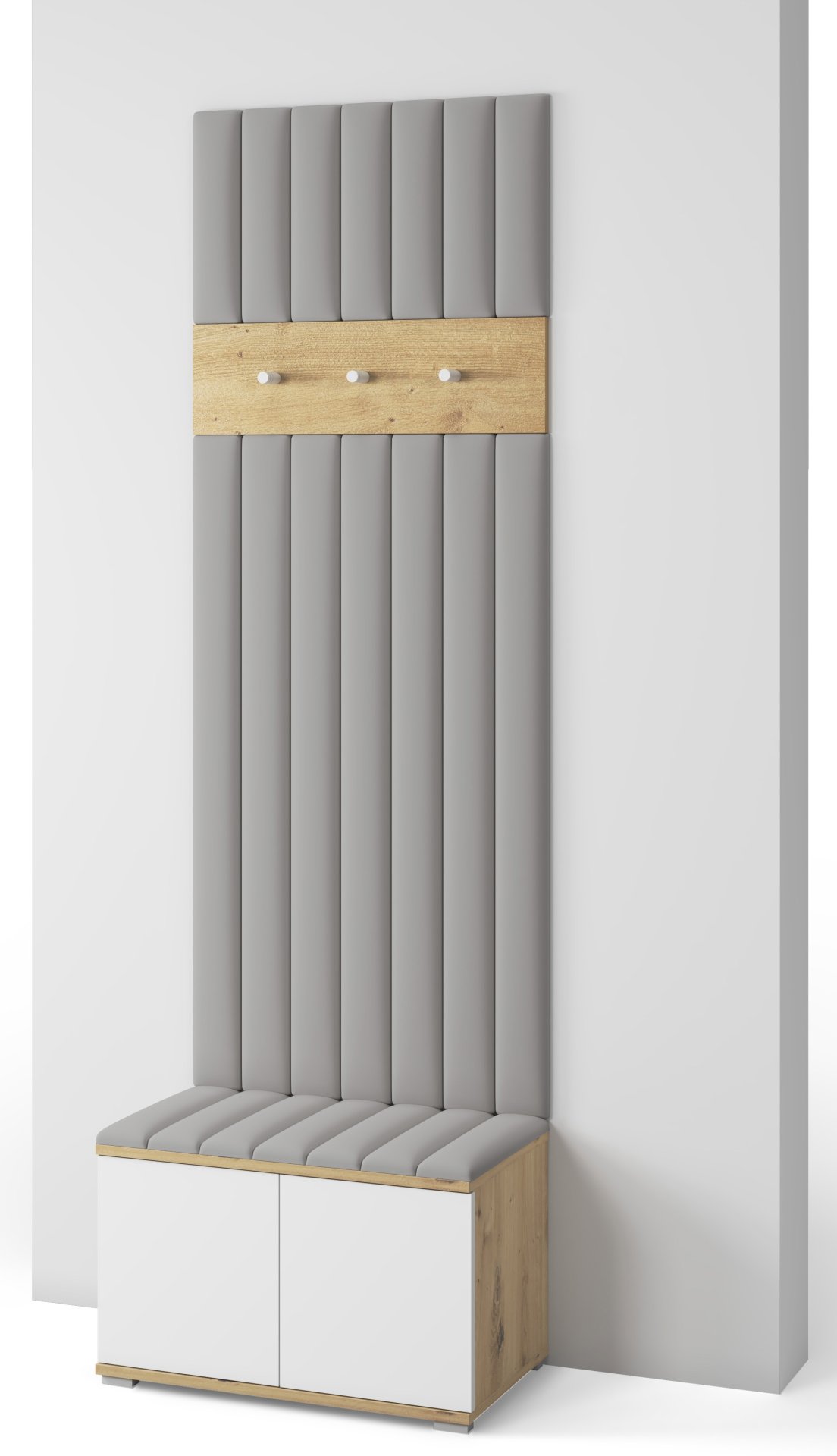 Komplet za hodnik Sevilla 12 spaja suvremeni dizajn, funkcionalan raspored i kvalitetnu izradu, karakterističnu za poljskog proizvođača PKMebel. Svojom kombinacijom topline hrasta artisan i čiste bjeline fronti stvara uravnotežen i elegantan izgled koji upotpunjuje kako klasično tako i suvremeno oblikovane interijere. Namijenjen je onima koji žele ulazni dio doma urediti estetski, a istodobno praktično, s dovoljno prostora za pohranu i udobnost pri svakodnevnoj uporabi.