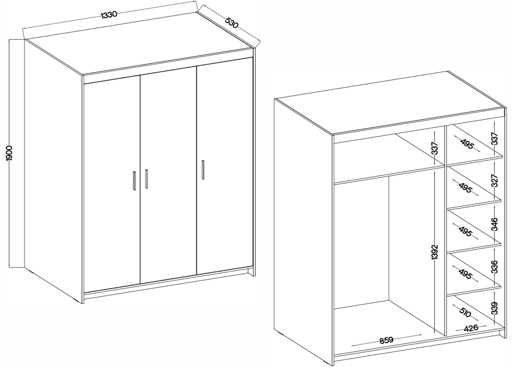 Uz širinu 133 cm, dubinu 53 cm i visinu 190 cm, garderobni ormar Elena BP03 nudi dovoljno prostora za vješanje duže odjeće, poput kaputa, haljina ili košulja, te za slaganje manjih komada garderobe. Unutarnji raspored omogućuje organizirano pohranjivanje, što pomaže održavati uredan izgled prostora. Takva visina također omogućuje iskorištavanje prostora ispod stropa, što je posebno pogodno za manje sobe, gdje je važan svaki centimetar korisne površine.