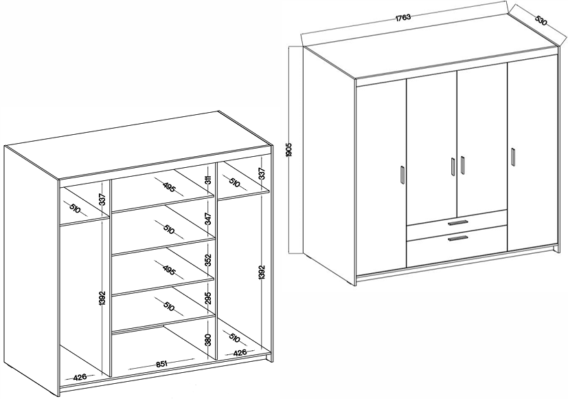 S mjerama 176,3×53×190,5 cm ormar nudi dovoljno prostora za pohranu odjeće, obuće i dodataka. Visina od gotovo dva metra omogućuje učinkovito iskorištavanje prostora do stropa, dok dubina od 53 cm osigurava udobno smještanje vješalica za kapute, košulje ili jakne. Zahvaljujući optimalnoj širini, ormar se lijepo uklapa u postojeći namještaj, a da pritom vizualno ne opterećuje prostor.