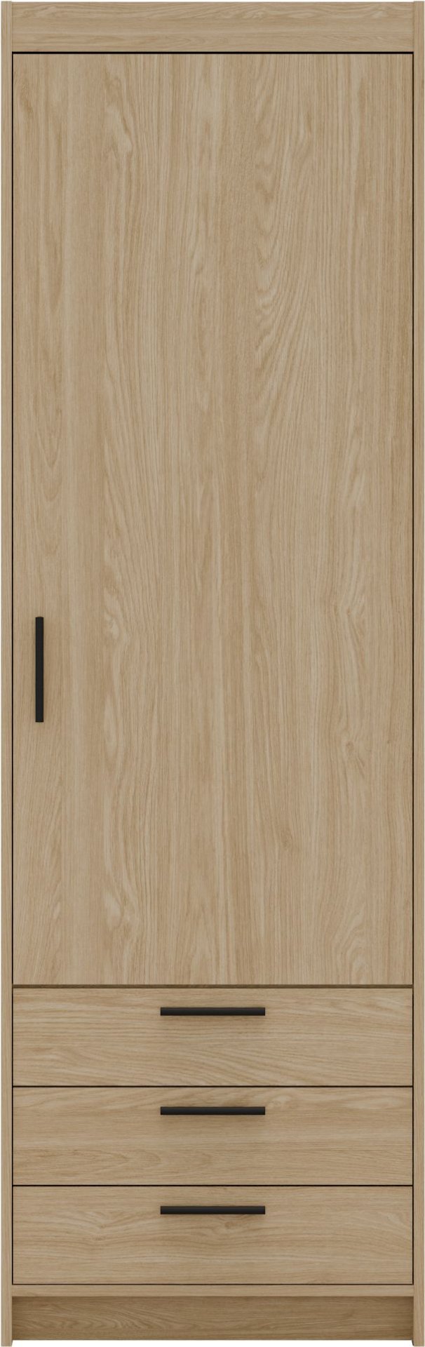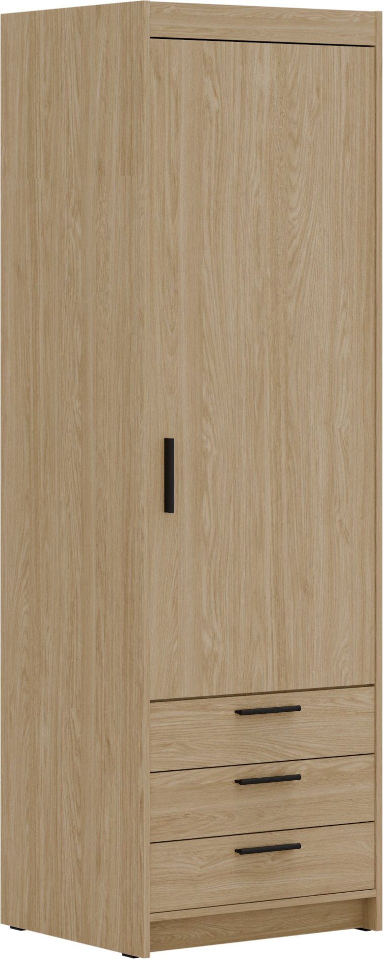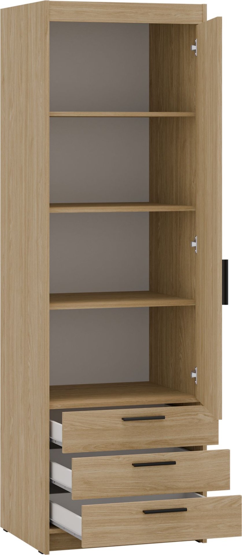 Ormar Elena BP01 3S osmišljen je s mišlju na pregledno pohranjivanje. Tri prostrane ladice omogućuju spremanje manjih odjevnih predmeta, dodataka ili dokumenata, dok gornji dio s vratima nudi prostor za veće komade garderobe ili kućanski tekstil. Zahvaljujući svojoj visini od 190,5 cm omogućuje optimalno iskorištavanje prostora do stropa, što je posebno korisno u stanovima gdje je svaka polica dragocjena.
