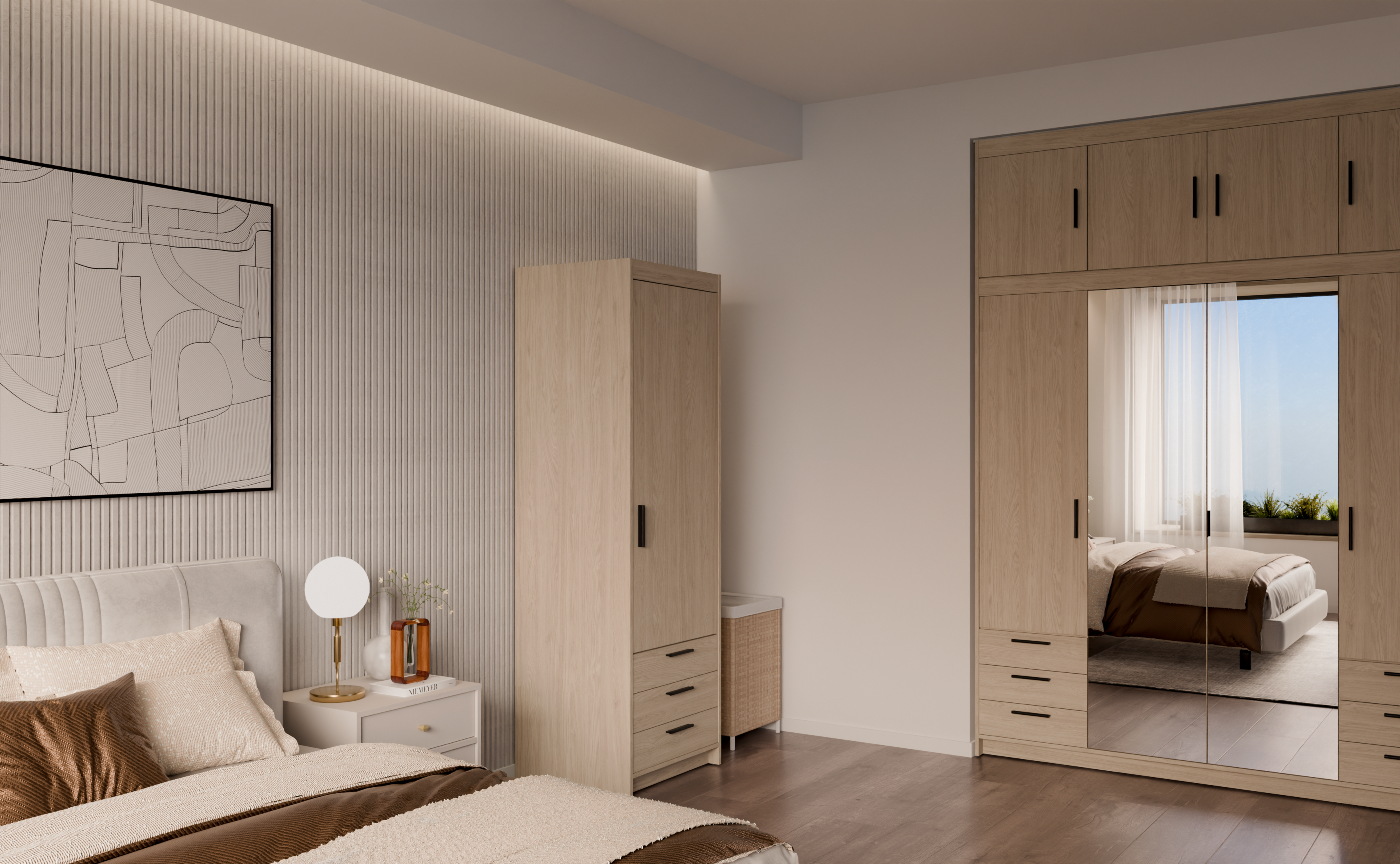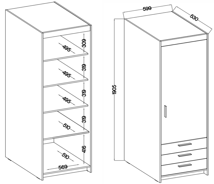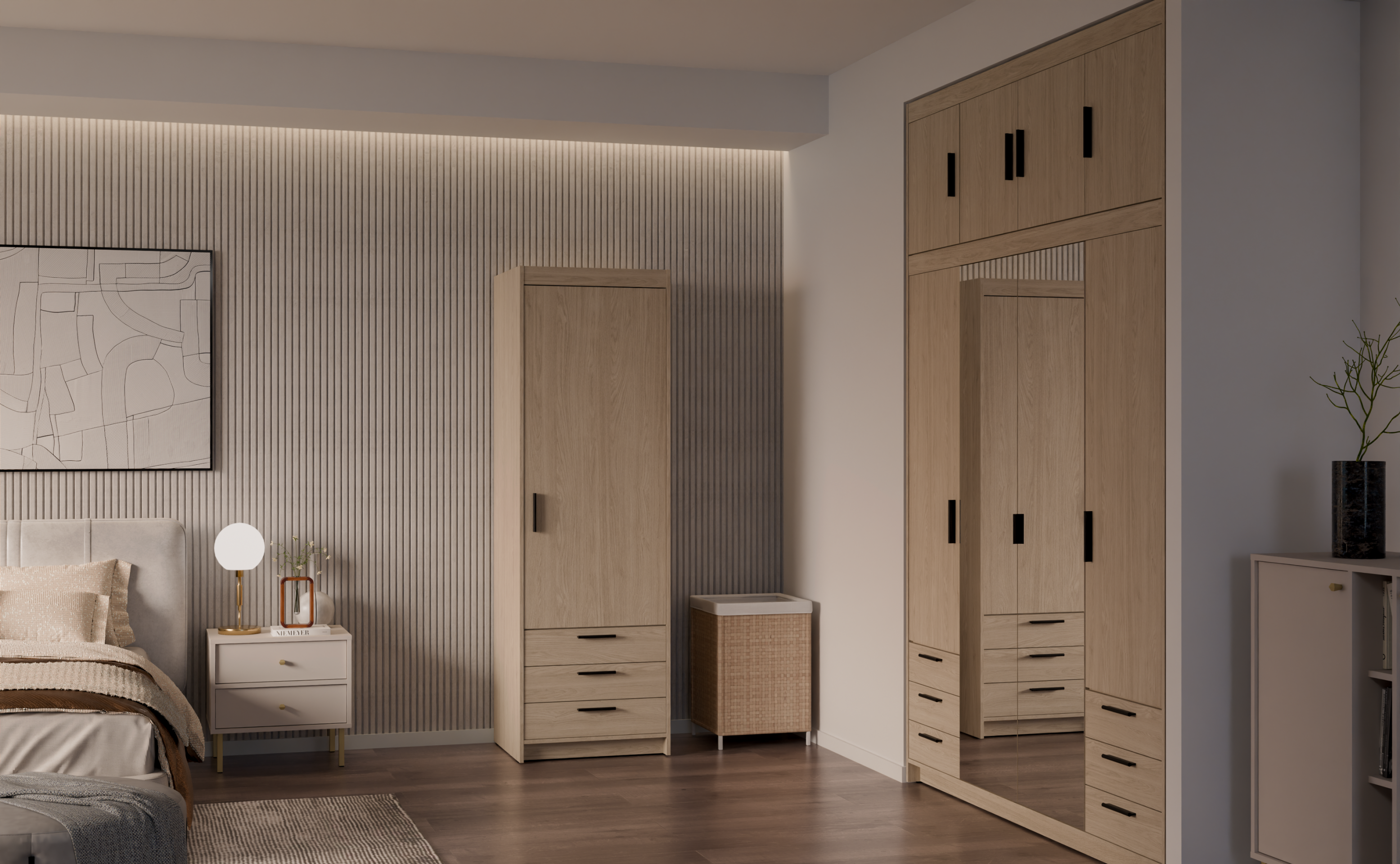 Ormar Elena BP01 3S osmišljen je s mišlju na pregledno pohranjivanje. Tri prostrane ladice omogućuju spremanje manjih odjevnih predmeta, dodataka ili dokumenata, dok gornji dio s vratima nudi prostor za veće komade garderobe ili kućanski tekstil. Zahvaljujući svojoj visini od 190,5 cm omogućuje optimalno iskorištavanje prostora do stropa, što je posebno korisno u stanovima gdje je svaka polica dragocjena.