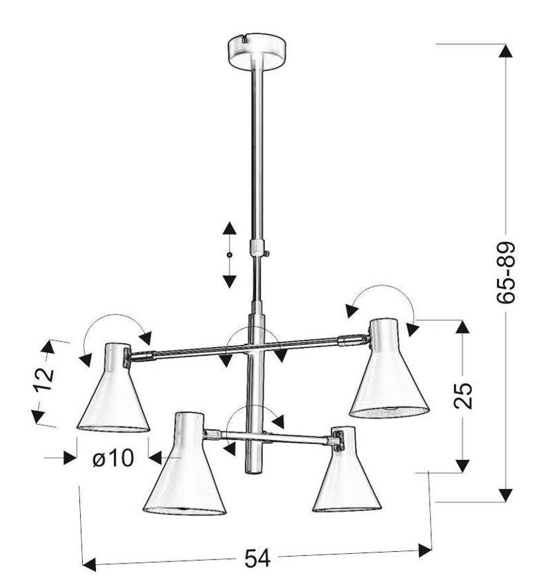 Funkcionalnost viseće svjetiljke dodatno pojačava podešavanje smjera svjetla - sjenila možete naginjati prema gore i dolje te mijenjati kut vodoravnih krakova.