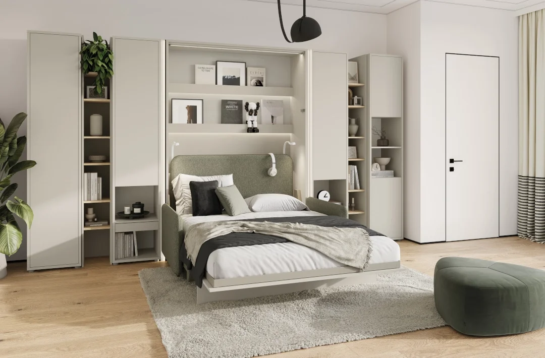 Tapecirano uzglavlje BC-16 pažljivo je oblikovan dodatak, namijenjen krevetu u ormaru modela BC-01 marke Bed Concept. Njegova glavna zadaća je osigurati udobnu i stabilnu potporu tijekom čitanja, gledanja televizije ili opuštanja u krevetu, a istovremeno prostoru dodaje estetski naglasak. Mekana tkanina Lukka 38 u ugodnoj zelenoj nijansi stvara osjećaj topline i svježine, pa se uzglavlje lijepo uklapa u različite unutarnje stilove – od suvremenih minimalističkih do klasičnih drvenih ambijenata.