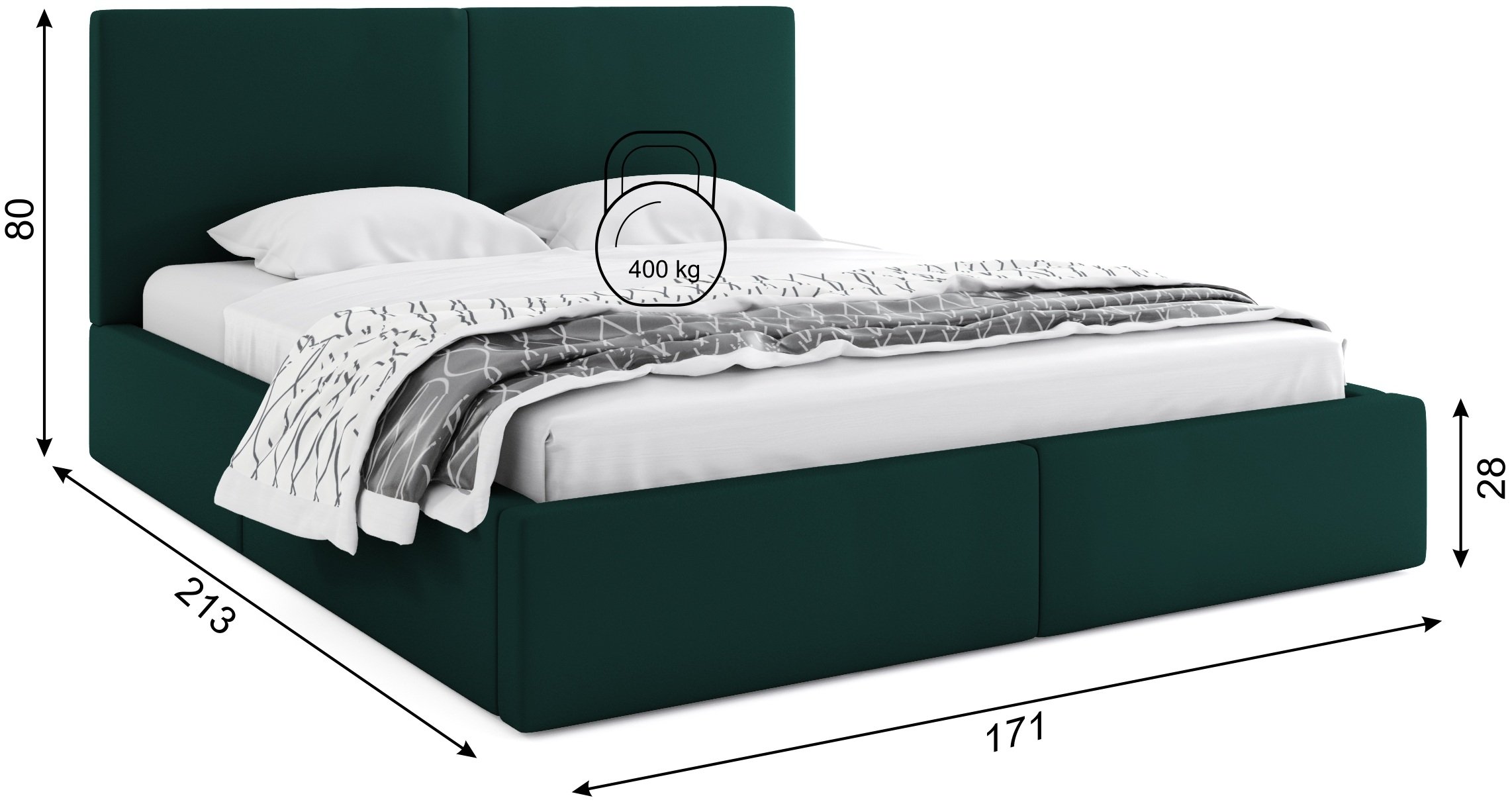 Krevet Hilton - 160x200 cm - zelena