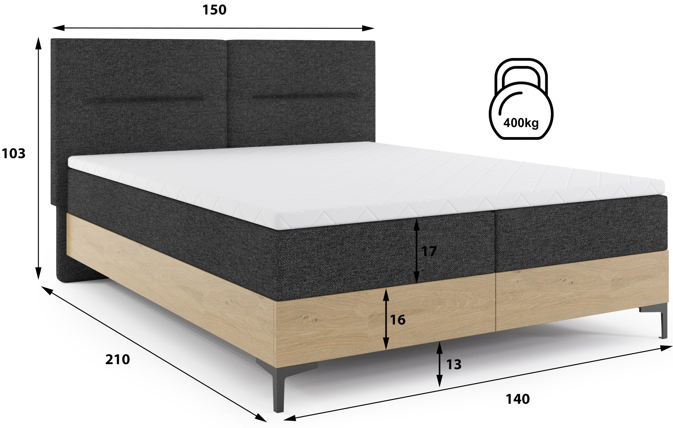 Stvorite pravu oazu opuštanja i udobnosti u svojoj spavaćoj sobi. Elegantni i funkcionalni boxspring krevet Imperial savršen je izbor za sve koji cijene kvalitetu, bezvremenski dizajn i vrhunsku udobnost spavanja. Svojom kombinacijom topline drva i suvremene tkanine u boji hrasta i grafita, krevet će postati središnji komad vaše spavaće sobe, ispunjavajući je stilom i toplinom doma.