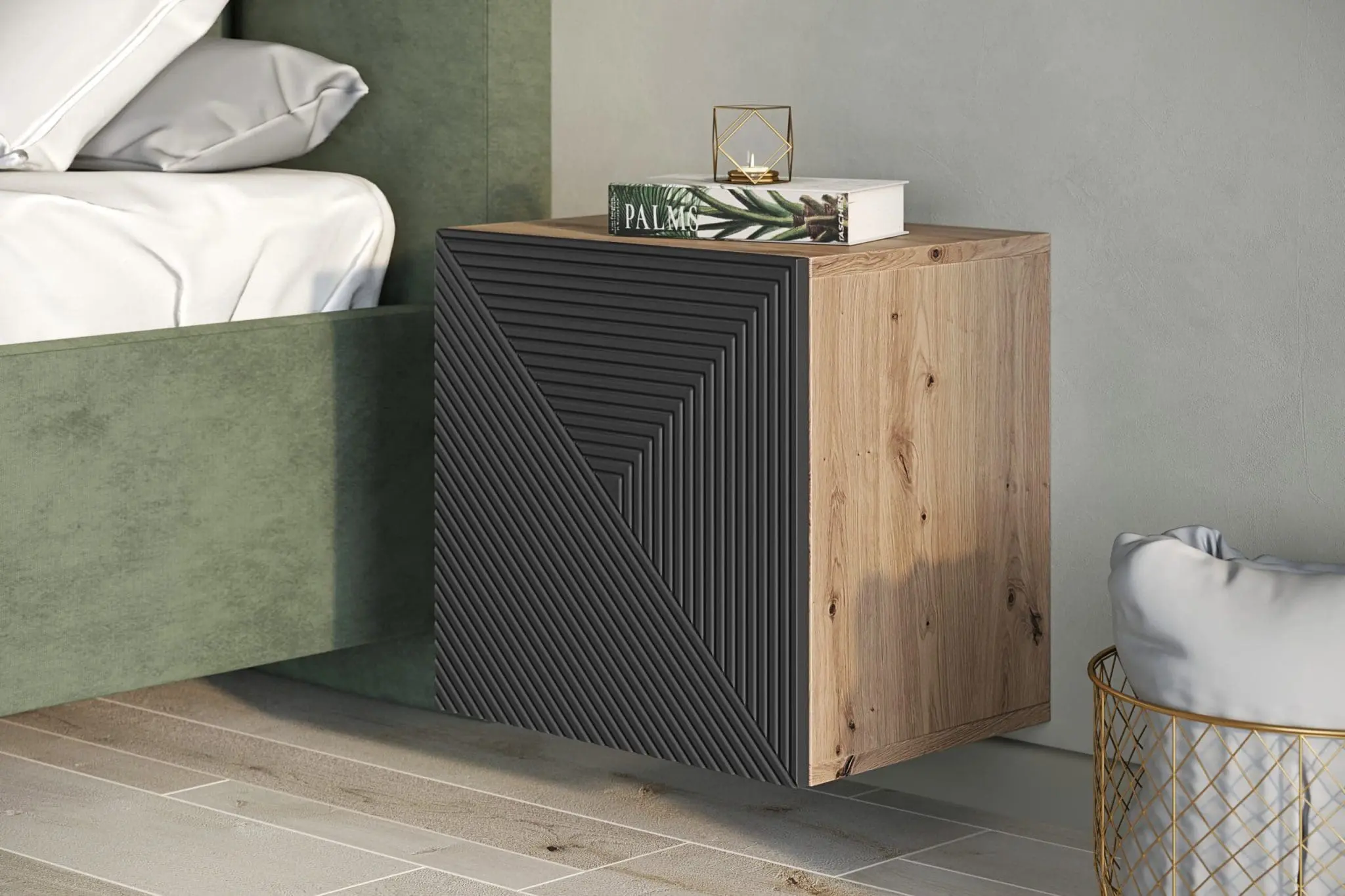 Predstavljamo vam zidnu noćnu komodicu Asha 40 1D – savršen djelić profinjenosti koji će vašoj spavaćoj sobi dodati dašak elegancije. Sa svojom jedinstvenom kombinacijom boja river stone i hrast artisan, ova komodica donosi moderan i prirodan izgled koji se besprijekorno uklapa u različite stilove unutarnjeg dizajna.