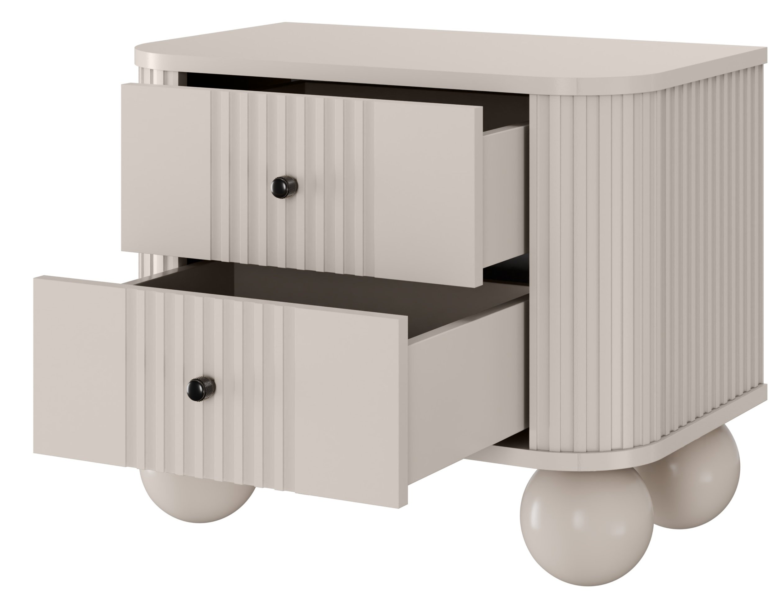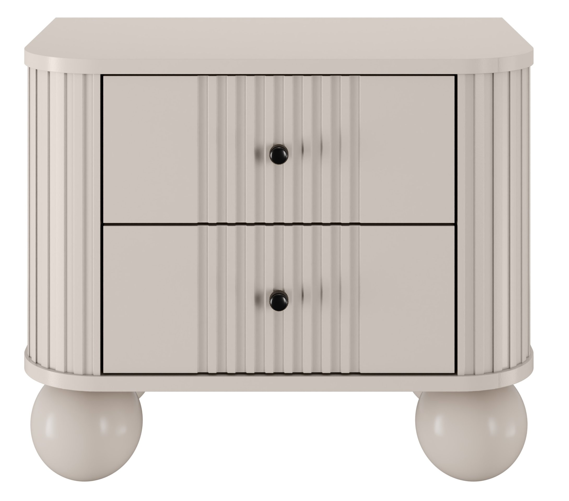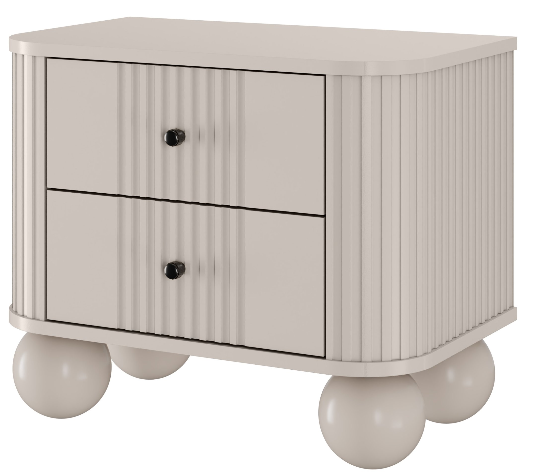 Elegantan dizajn: kašmir boja korpusa i nogica s crnim ručkama stvara profinjenu paletu boja, koja se lijepo uklapa s različitim shemama boja spavaćih soba. Okrugle drvene nogice, visoke 12 cm, dodaju dašak vintage šarma, a istovremeno omogućuju jednostavno čišćenje poda.